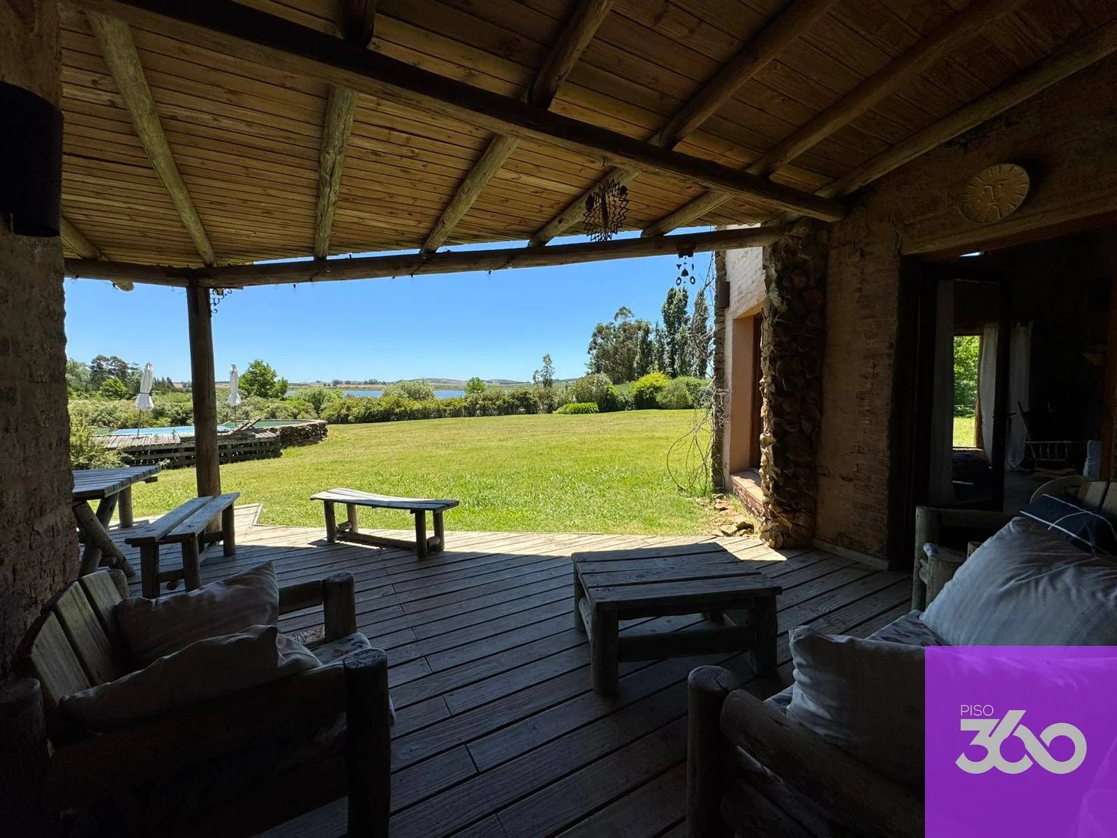Ubicada a tan solo 20 minutos de Punta del Este, se encuentra esta impresionante propiedad en venta por U$D 680.000 que se extiende sobre un terreno de más de 10 hectáreas, ofreciendo un estilo de vida exclusivo junto a la laguna. La casa principal, que cuenta con una superficie construida de 405 m² más 45 m² de piscina, alberga cinco amplios dormitorios en suite con aire acondicionado, un elegante escritorio con calefacción, y un baño social. El luminoso living, equipado con estufa a leña, se conecta con un comedor que tiene capacidad para 12 a 16 personas, ideal para recibir a familiares y amigos. La cocina, con su cocina a leña, se complementa con un lavadero y una gran despensa, asegurando funcionalidad y comodidad. La piscina de 10x5 m, con profundidades de 1.80 y 1.40 m, se convierte en el lugar perfecto para disfrutar de días soleados.
