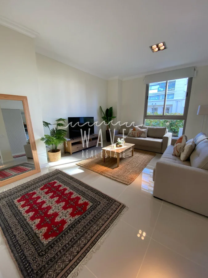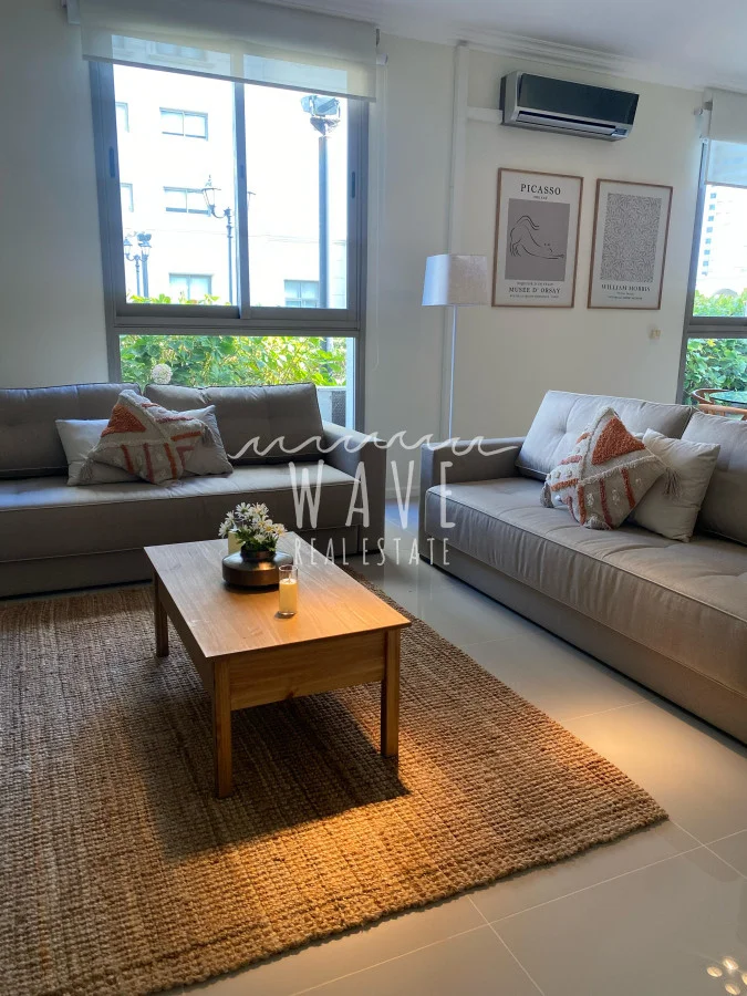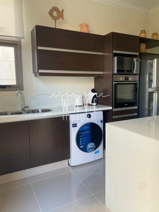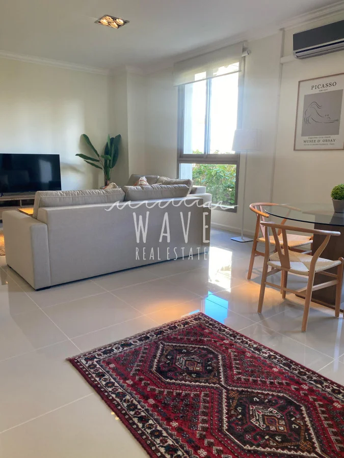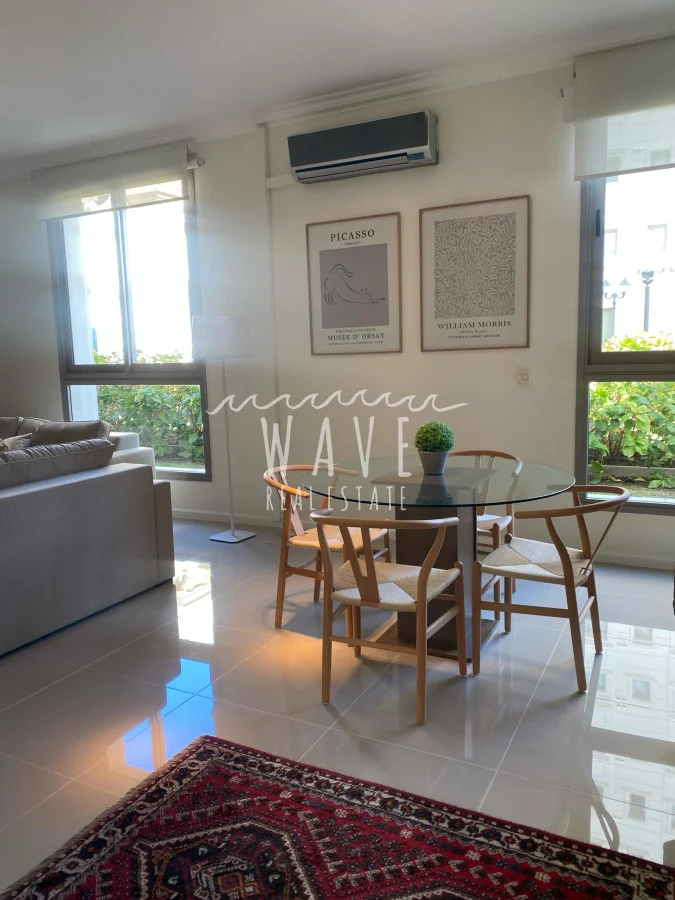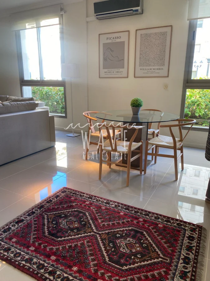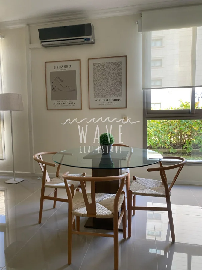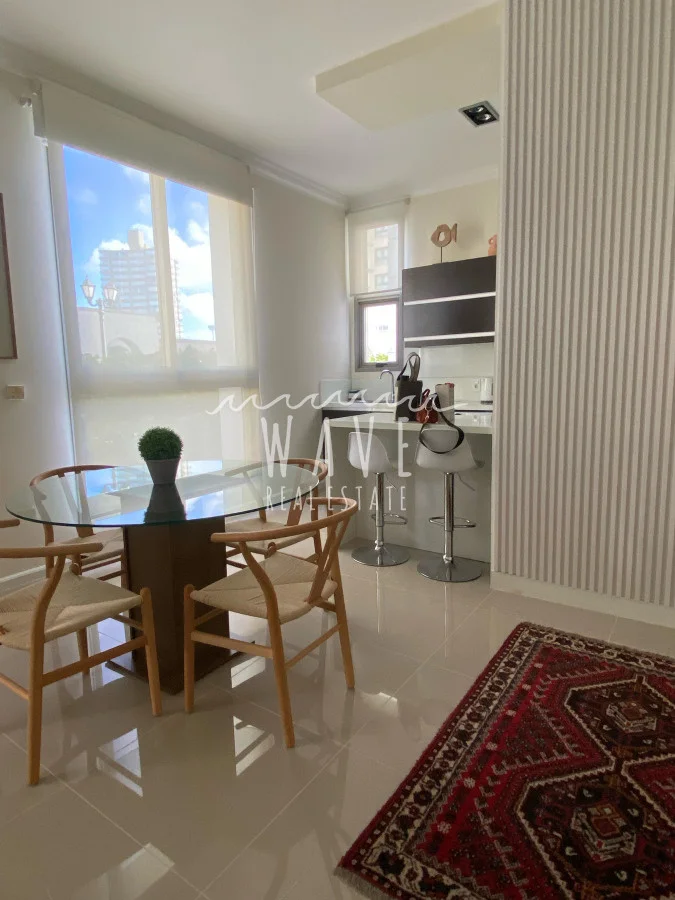 El apartamento cuenta con un diseño funcional con un luminoso living comedor, cocina integrada con buen almacenamiento. Un dormitorio en suite y 2 baños en total ( uno en suite y un toillete ). Totalmente amoblado.