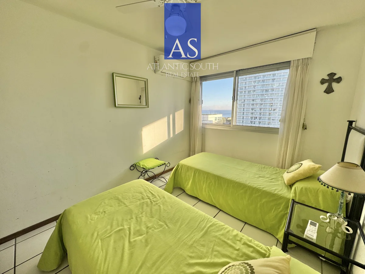 Unidad en venta en piso alto con linda orientación solar para vivir todo el año. Amplio apartamento cuenta con living comedor con salida al balcón con vista al mar y hacia la Península. Dos dormitorios , dos baños , principal en suite. Garaje en subsuelo.
