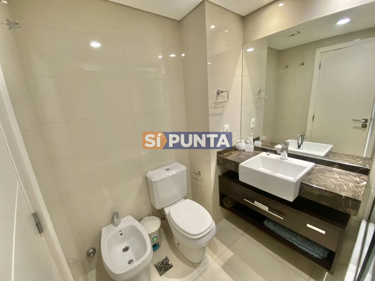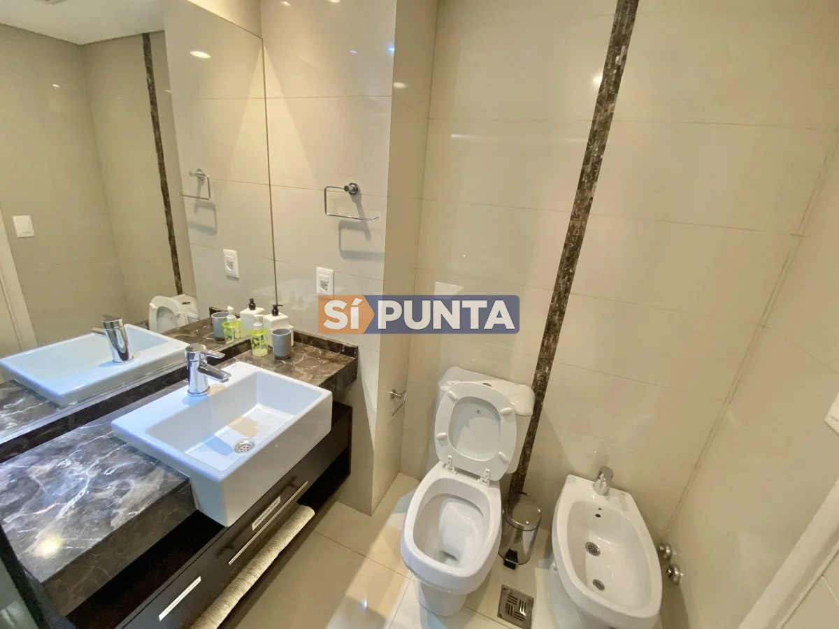 Muy linda unidad finamente decorada en Edificio Cruceros ubicada al frente. Living comedor muy luminoso , con salida a terraza con parrillero propio , cocina definida , lavadero , toilette , 2 dormitorios en suite. Aire Acondicionado y losa radiante. Garaje en Sub-suelo.
