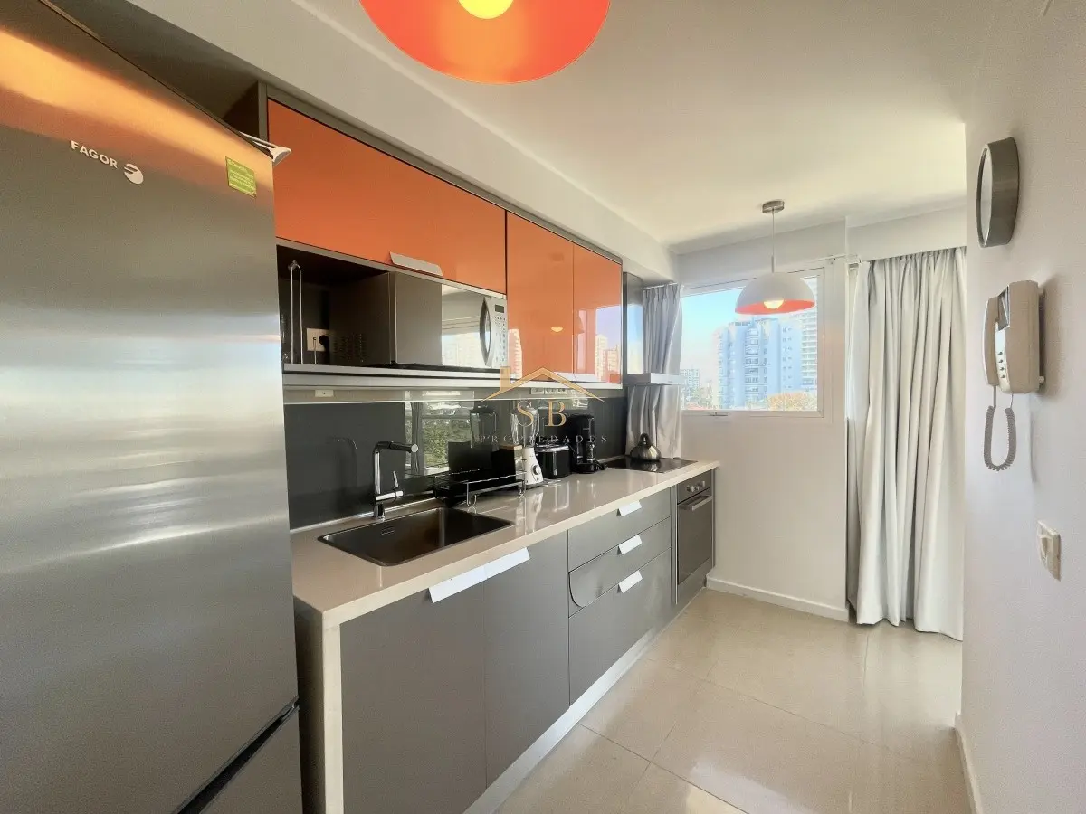 El departamento cuenta amplio living comedor con cocina integrada y palie amplio de entrada, un dormitorio con vestidor y baño en suite, balcón y cochera.