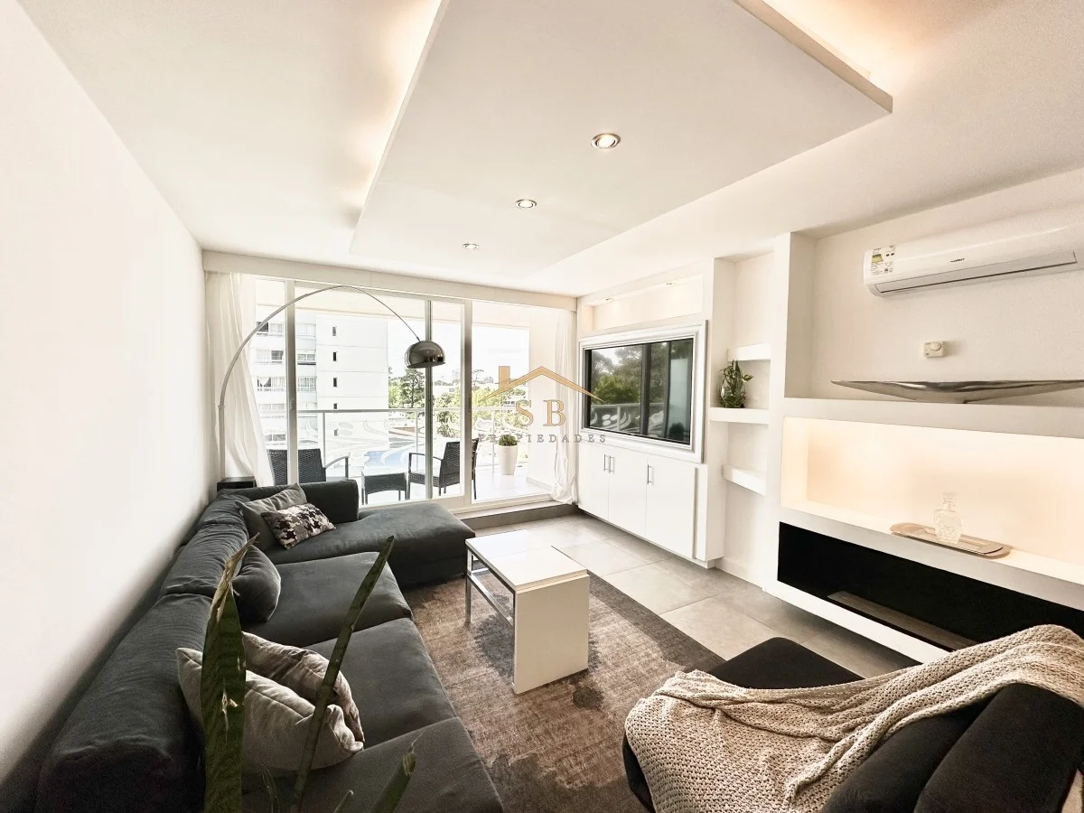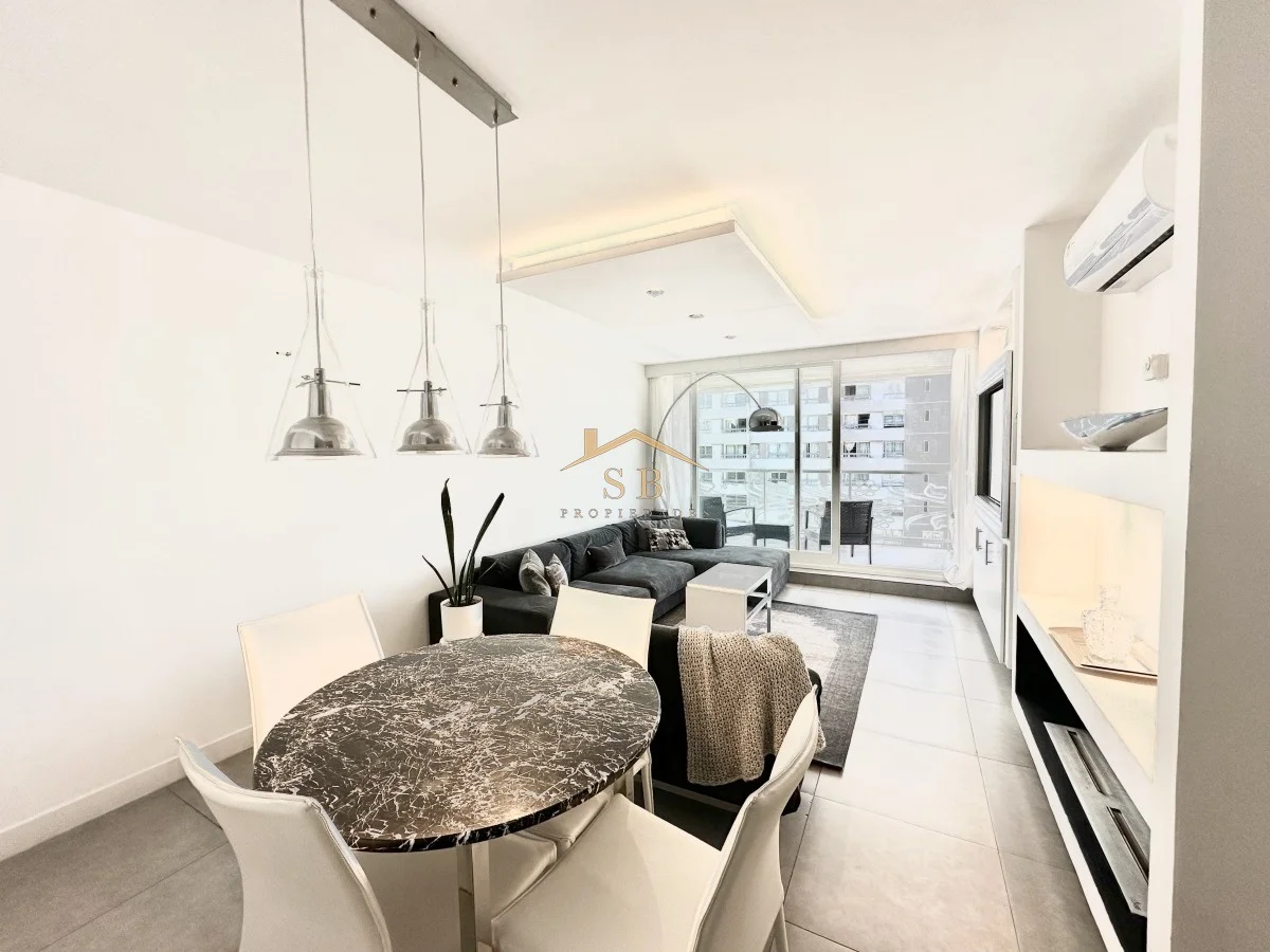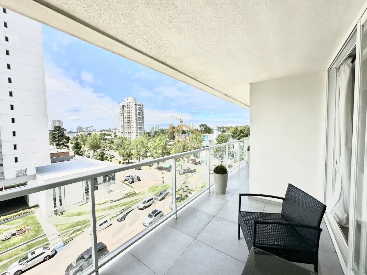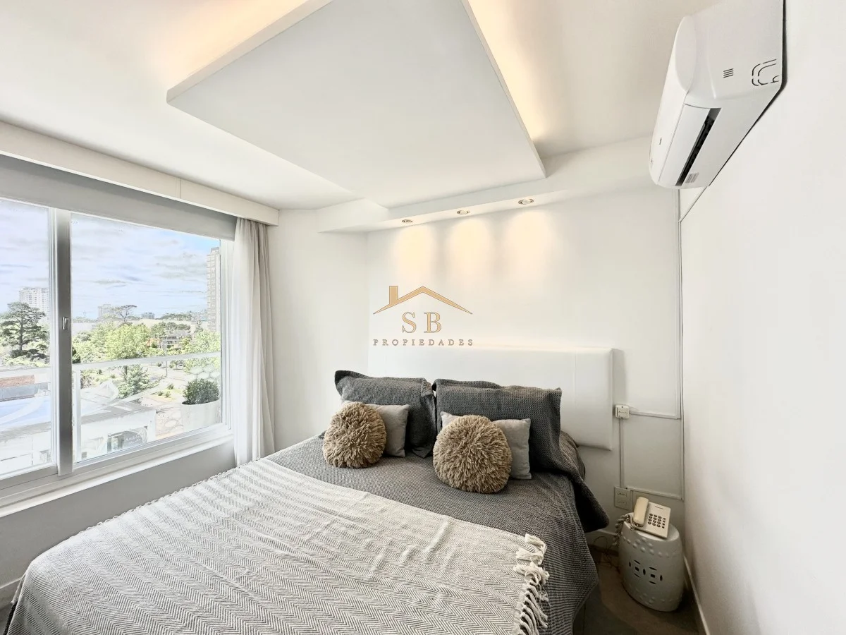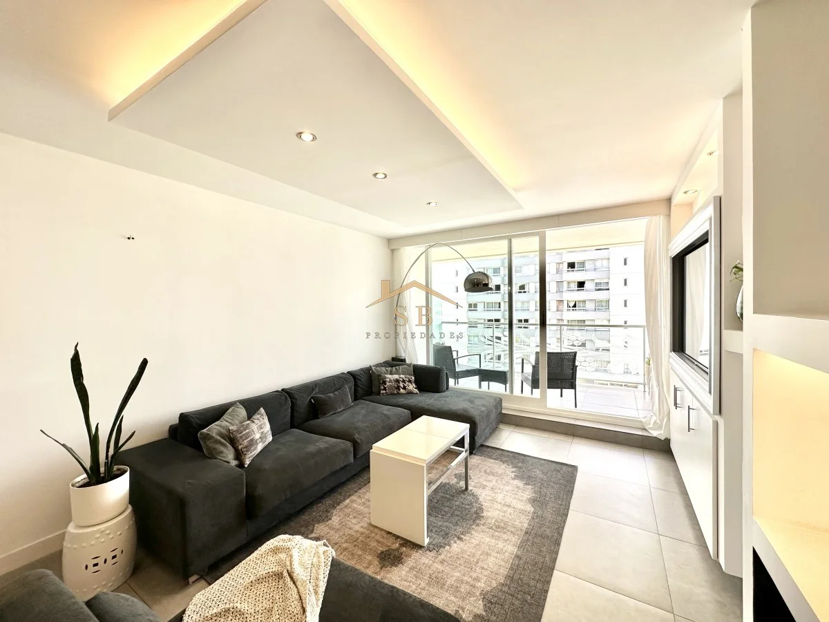 Hermoso Departamento de un dormitorio en suite y medio dormitorio, dos baños, living con balcón y cocina integrada, aire acondicionado.