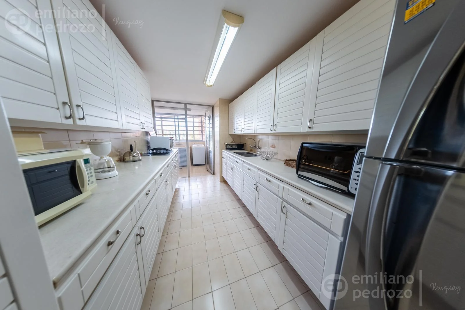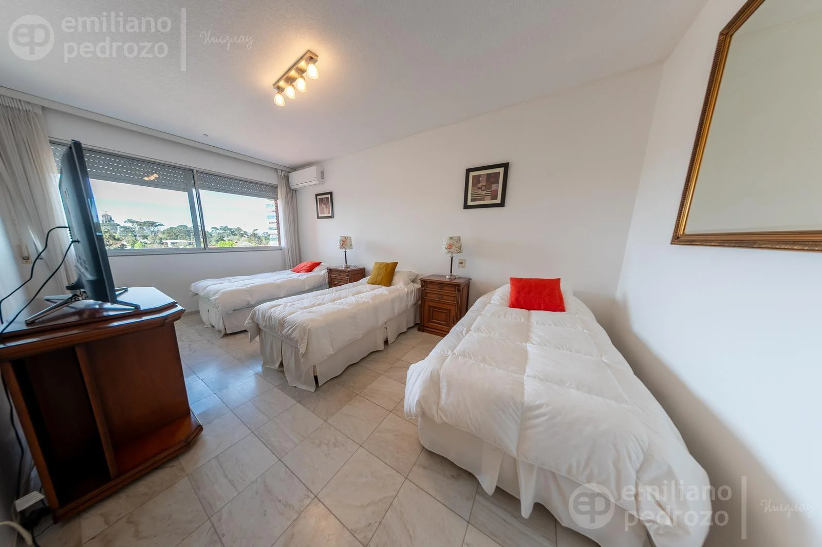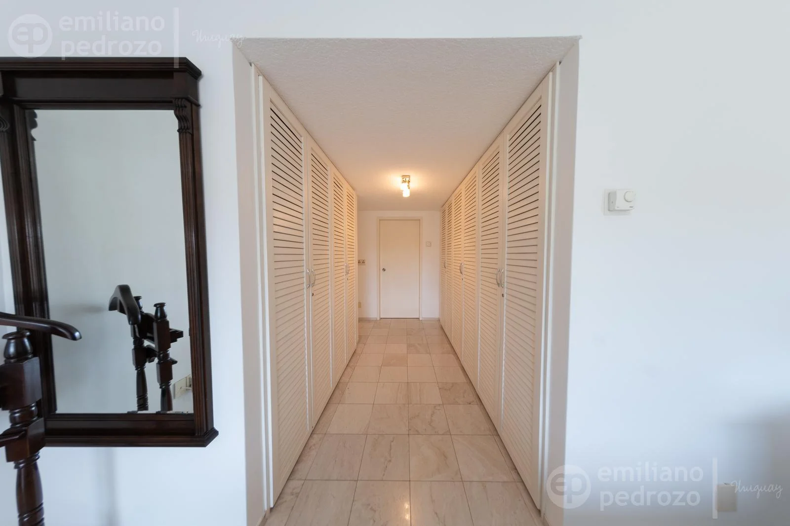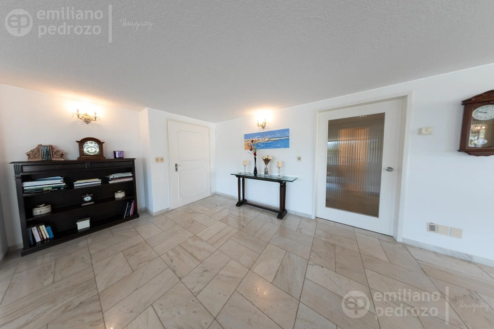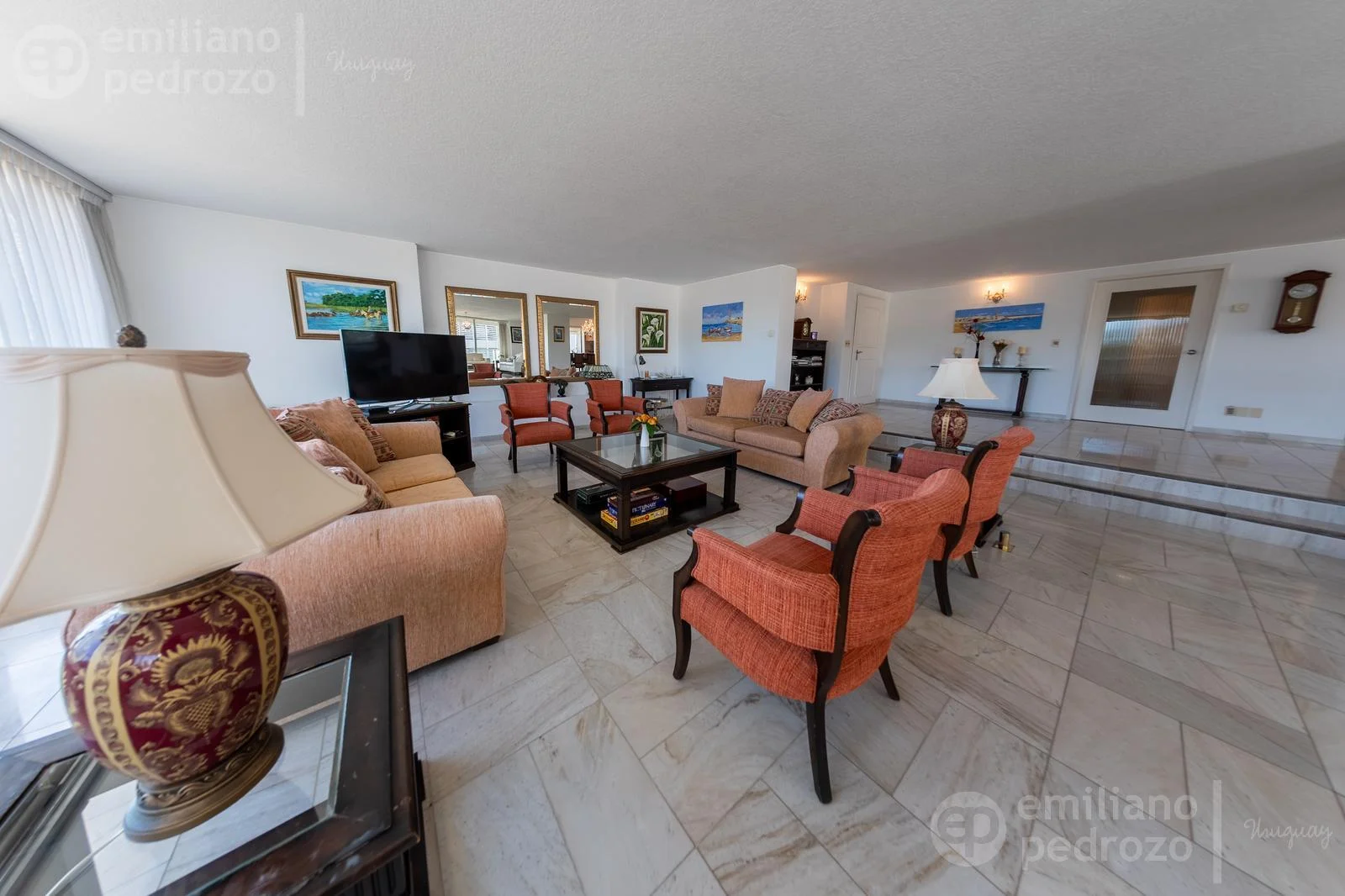 Un cómodo living, comedor principal y secundario, balcón terraza con vista franca al mar, parrillero cerrado tambien con vista al mar, cocina muy comoda con comedor diario y terraza lavadero, toilette, dormitorio principal con vestidor y baño en suite, 2do y 3er dormitorio también con baños en suite y dependencias de servicio.