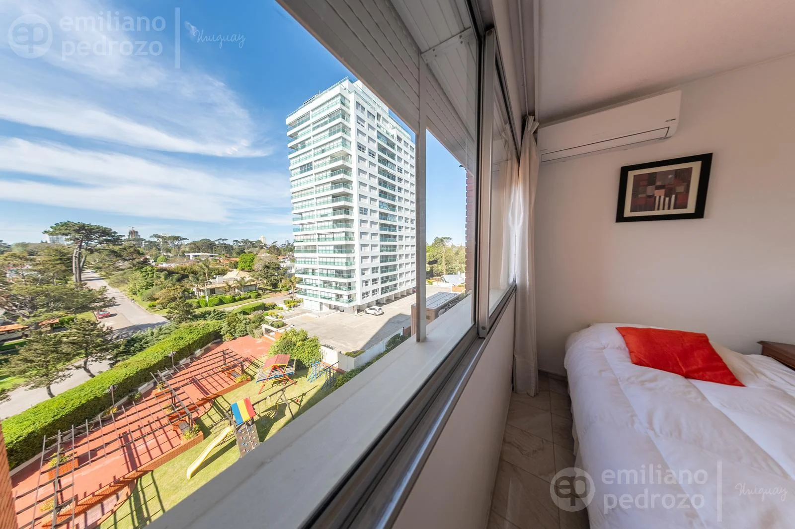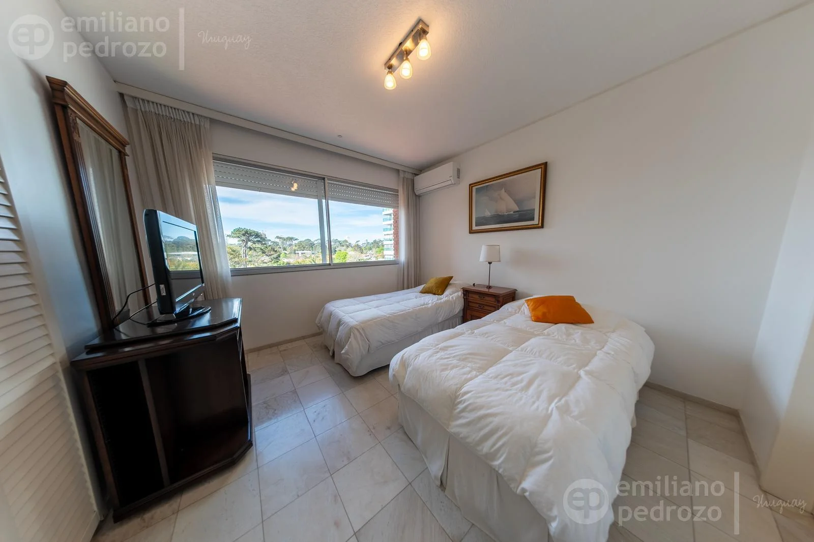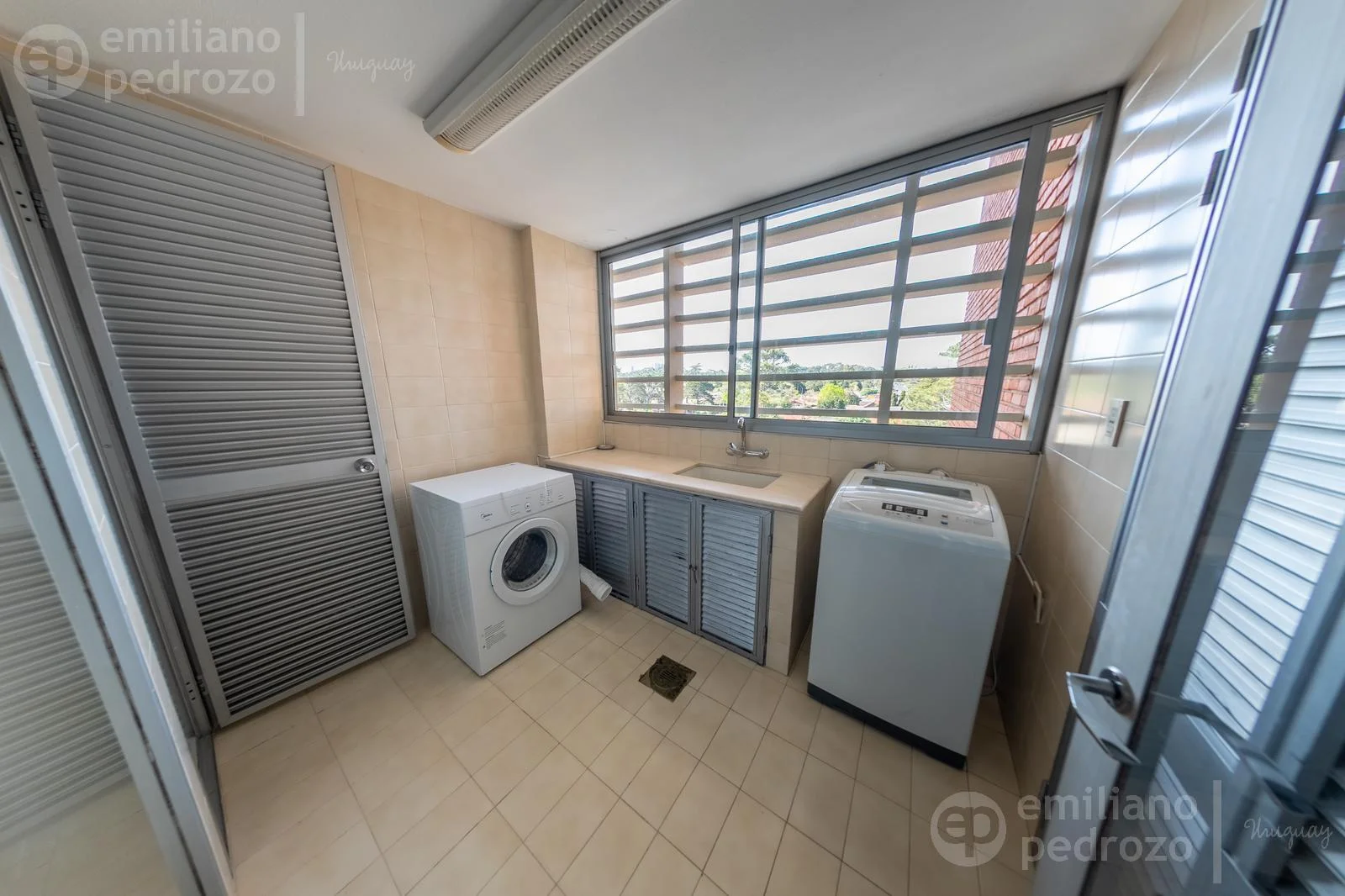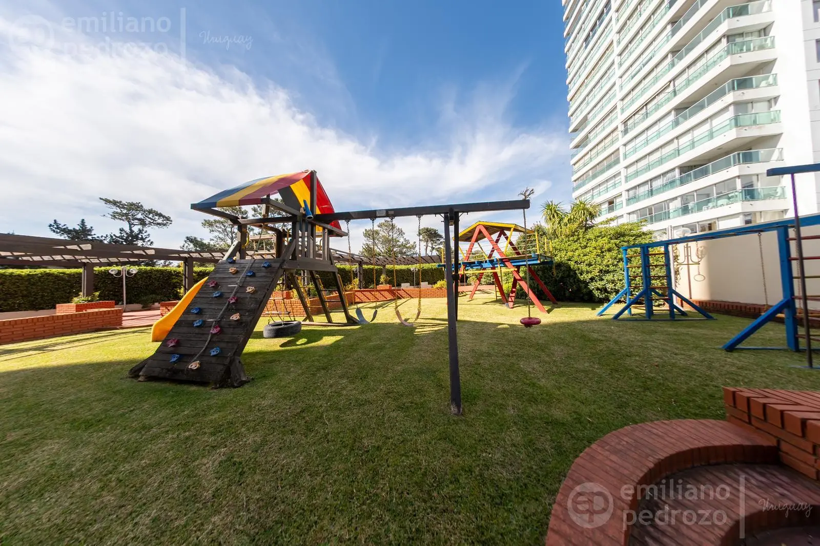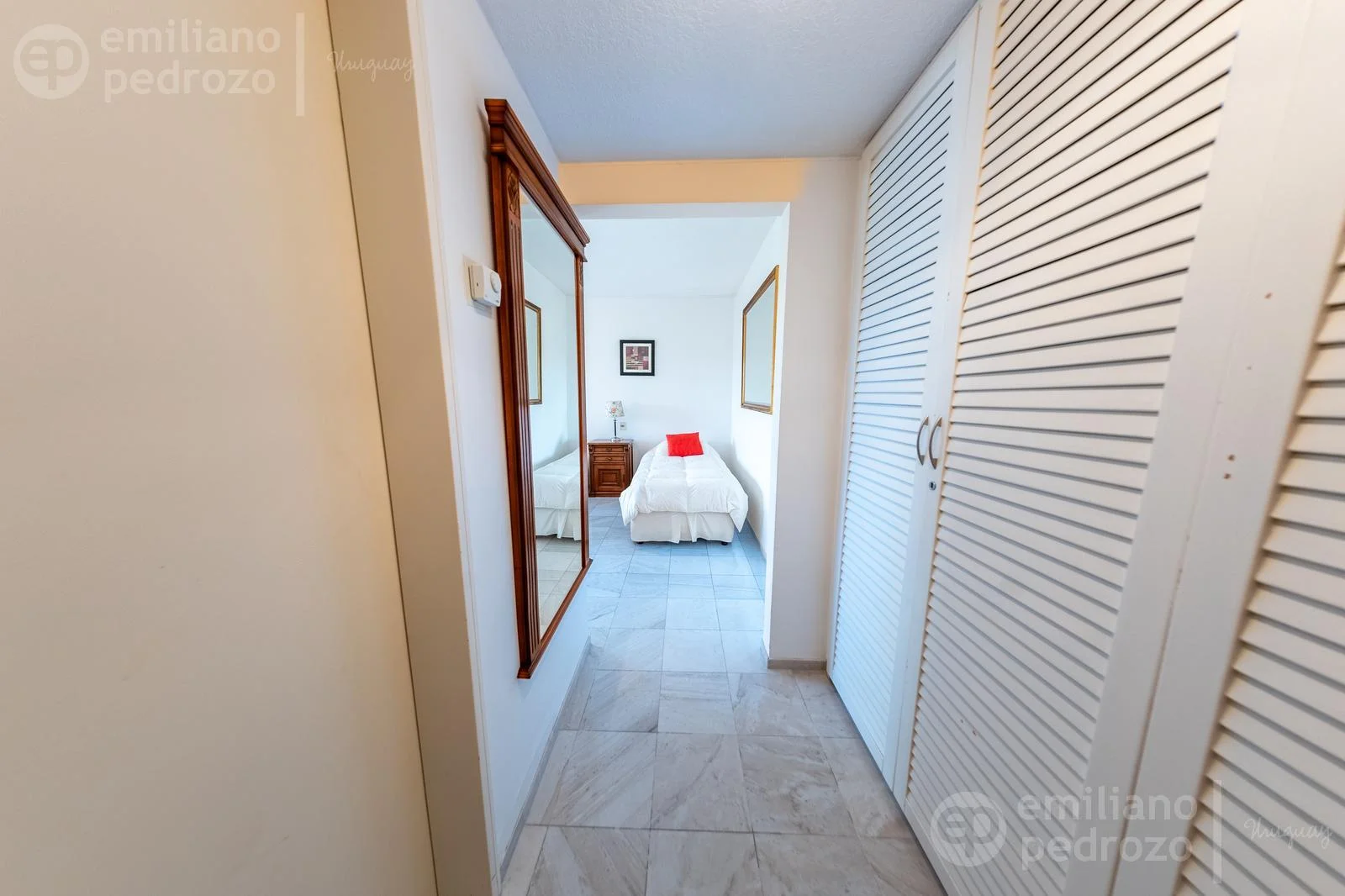 Un cómodo living, comedor principal y secundario, balcón terraza con vista franca al mar, parrillero cerrado tambien con vista al mar, cocina muy comoda con comedor diario y terraza lavadero, toilette, dormitorio principal con vestidor y baño en suite, 2do y 3er dormitorio también con baños en suite y dependencias de servicio.
