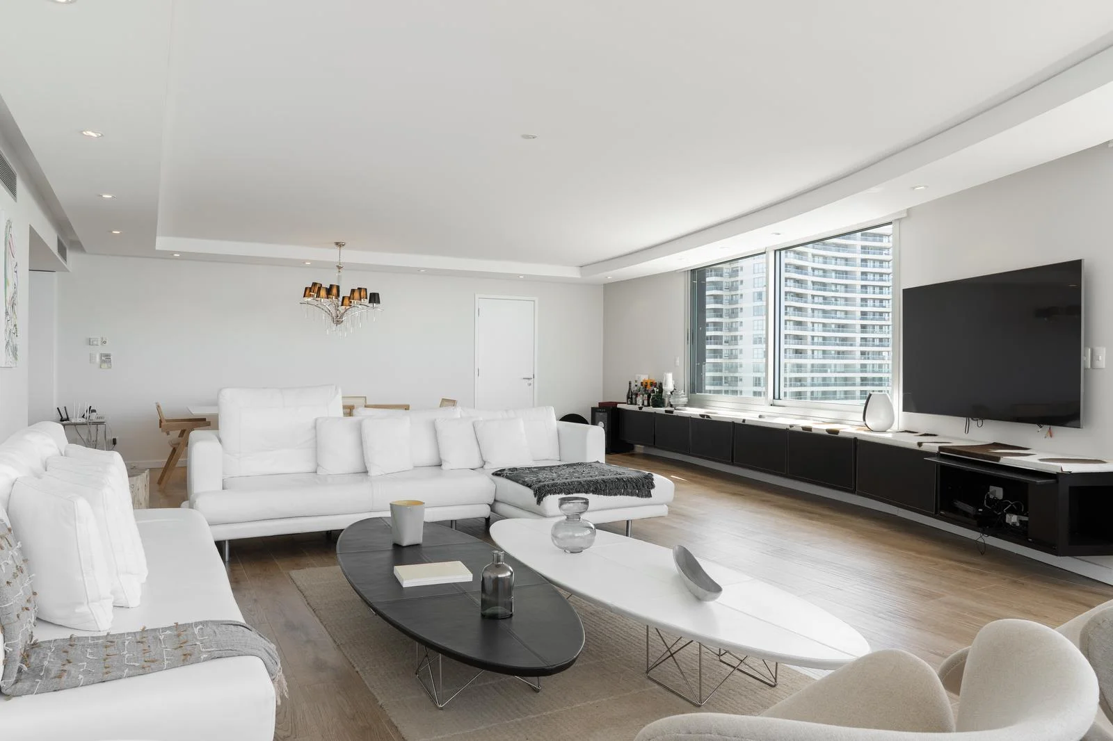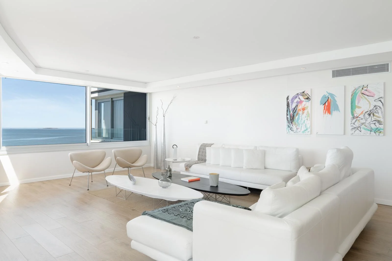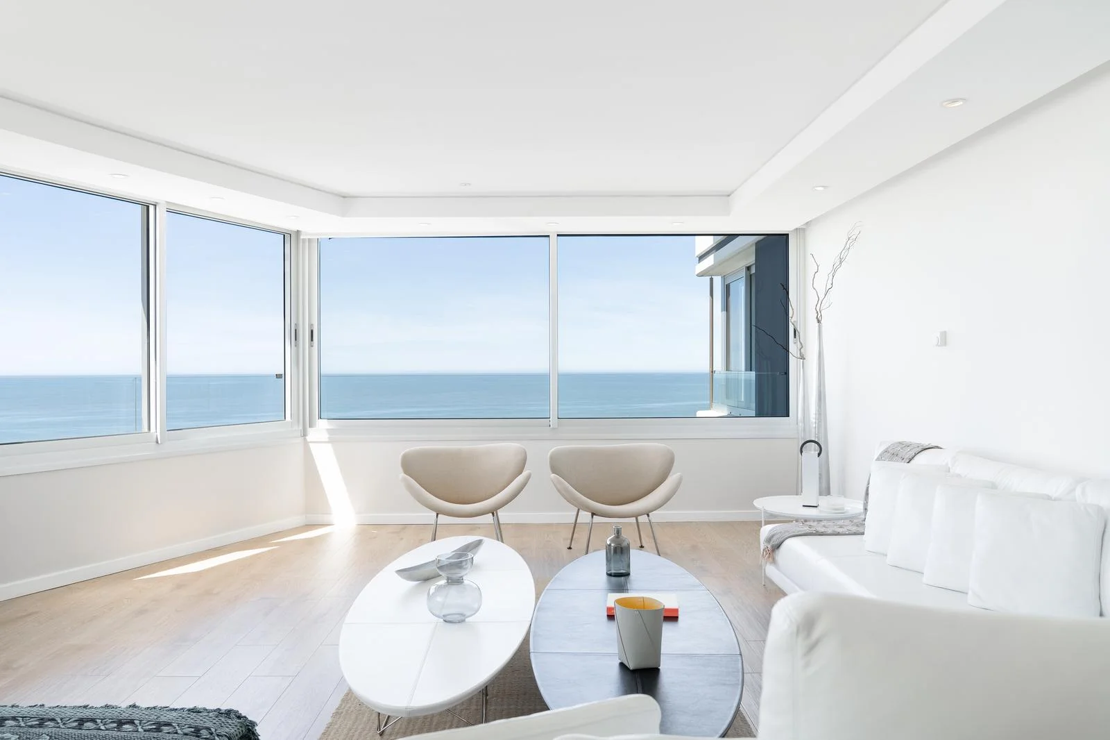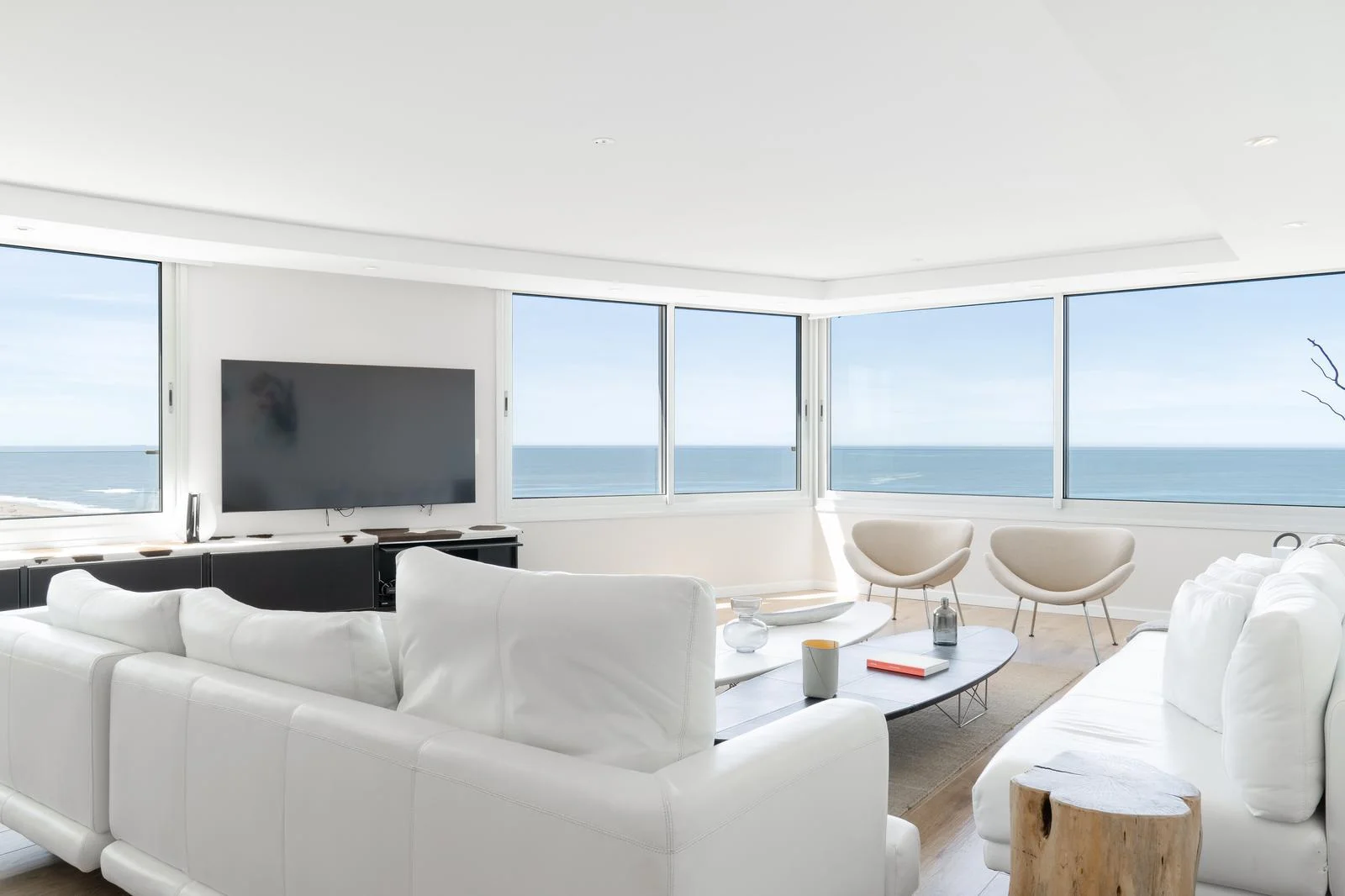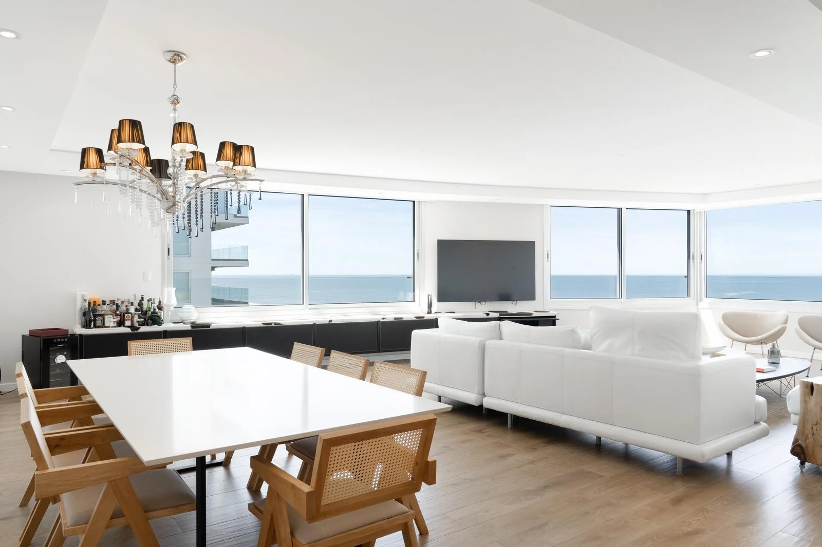 Living comedor amplio con vista al mar, ventanas con doble vidrio. Losa sectorizada.