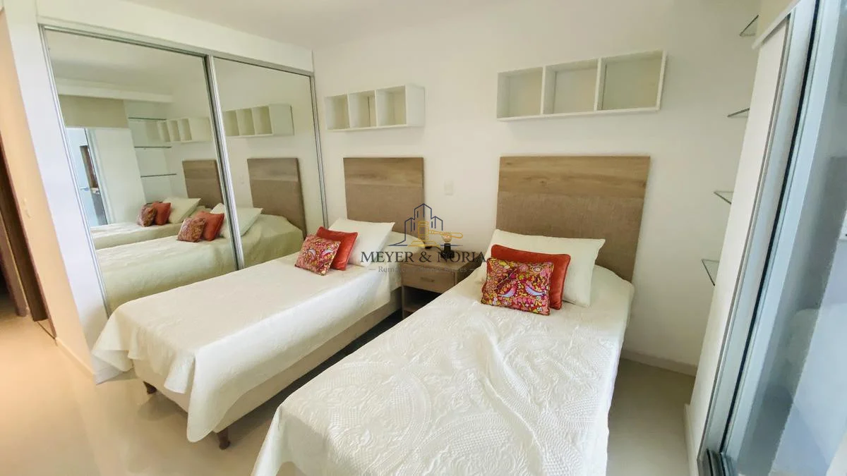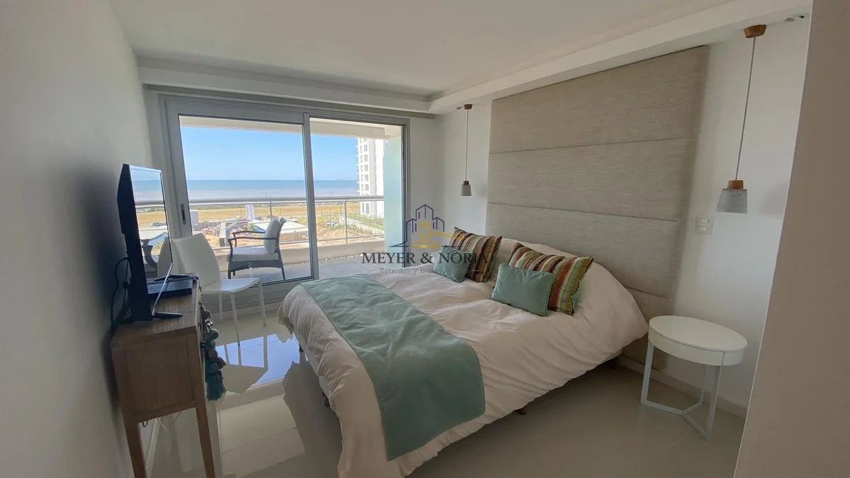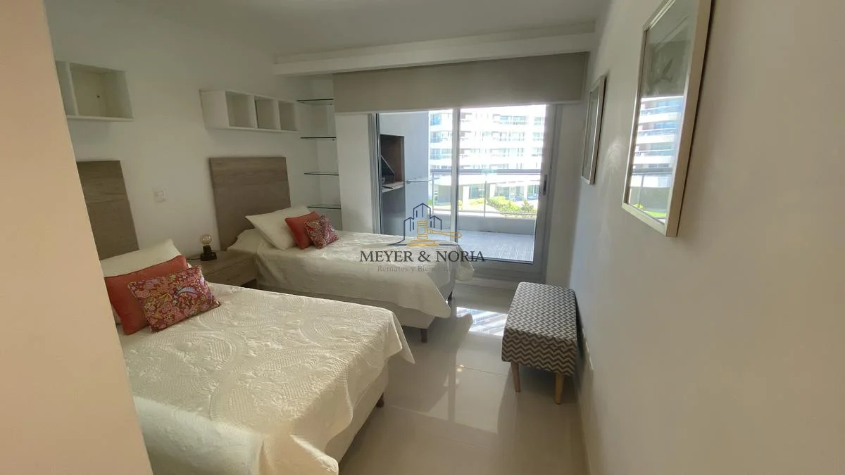 Apto en playa Brava!Terraza con parrillero propio, Living comedor, toilette, 2 dormitorios en suite, 2 baños, cocina, garage.Tv cable, wifi prepago.El edificio ofrece: recepcion las 24hrs, piscina abierta y cerrada, microcine, playroom, gimnasio, saunas, canchas, 3 barbacoas de uso comun, servicio de playa.