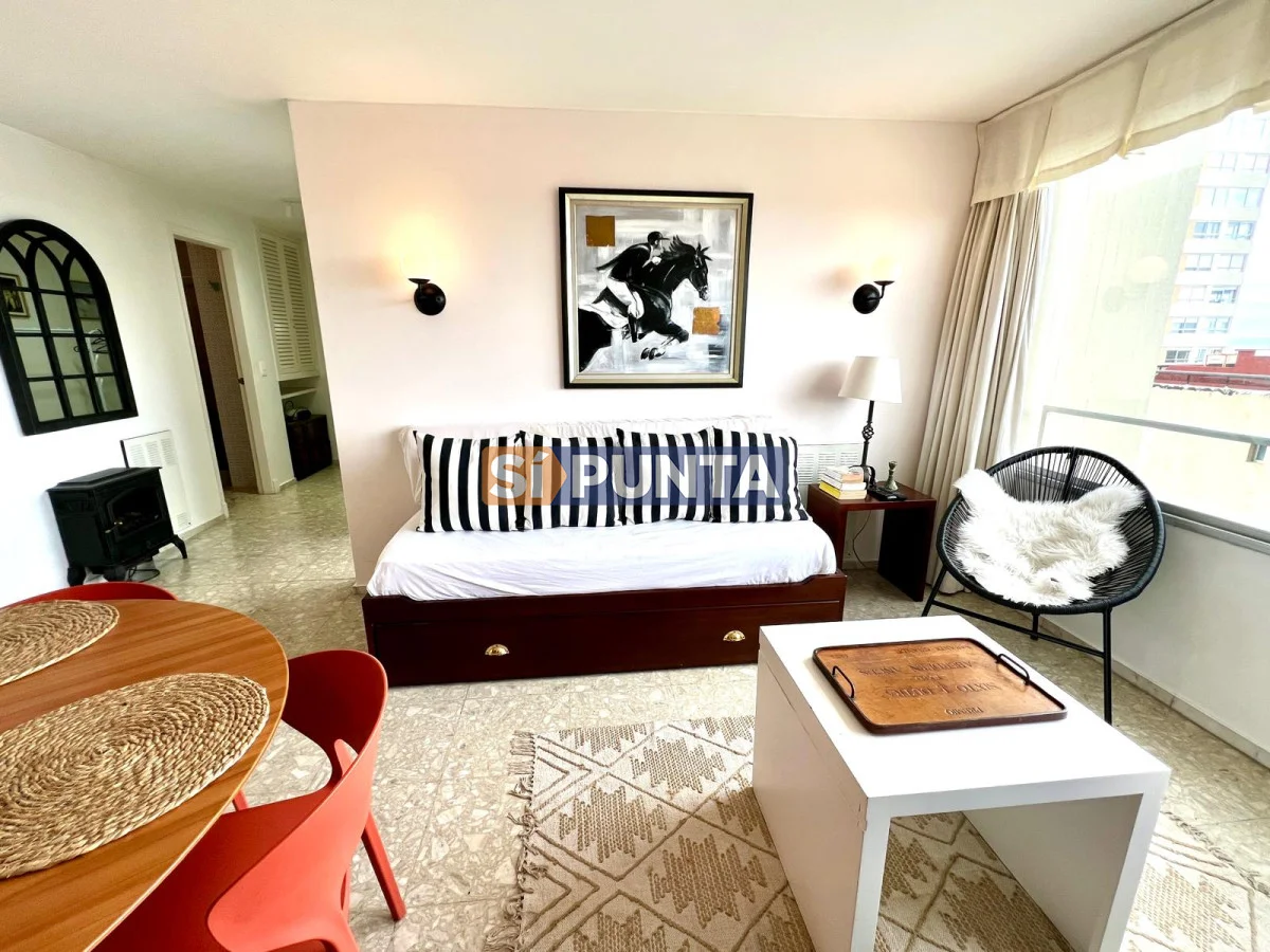 Impecable apartamento en edificio clásico en Península, de 1 dormitorio y medio, 1 baño, cómodo living comedor con vista y cocina. Cuenta con garaje en subsuelo, portería y vigilancia por cámaras; servicio de mucama. Excelente ubicación. Consulte por venta.