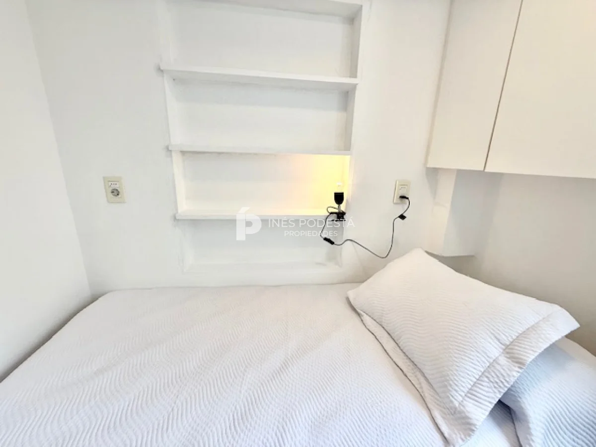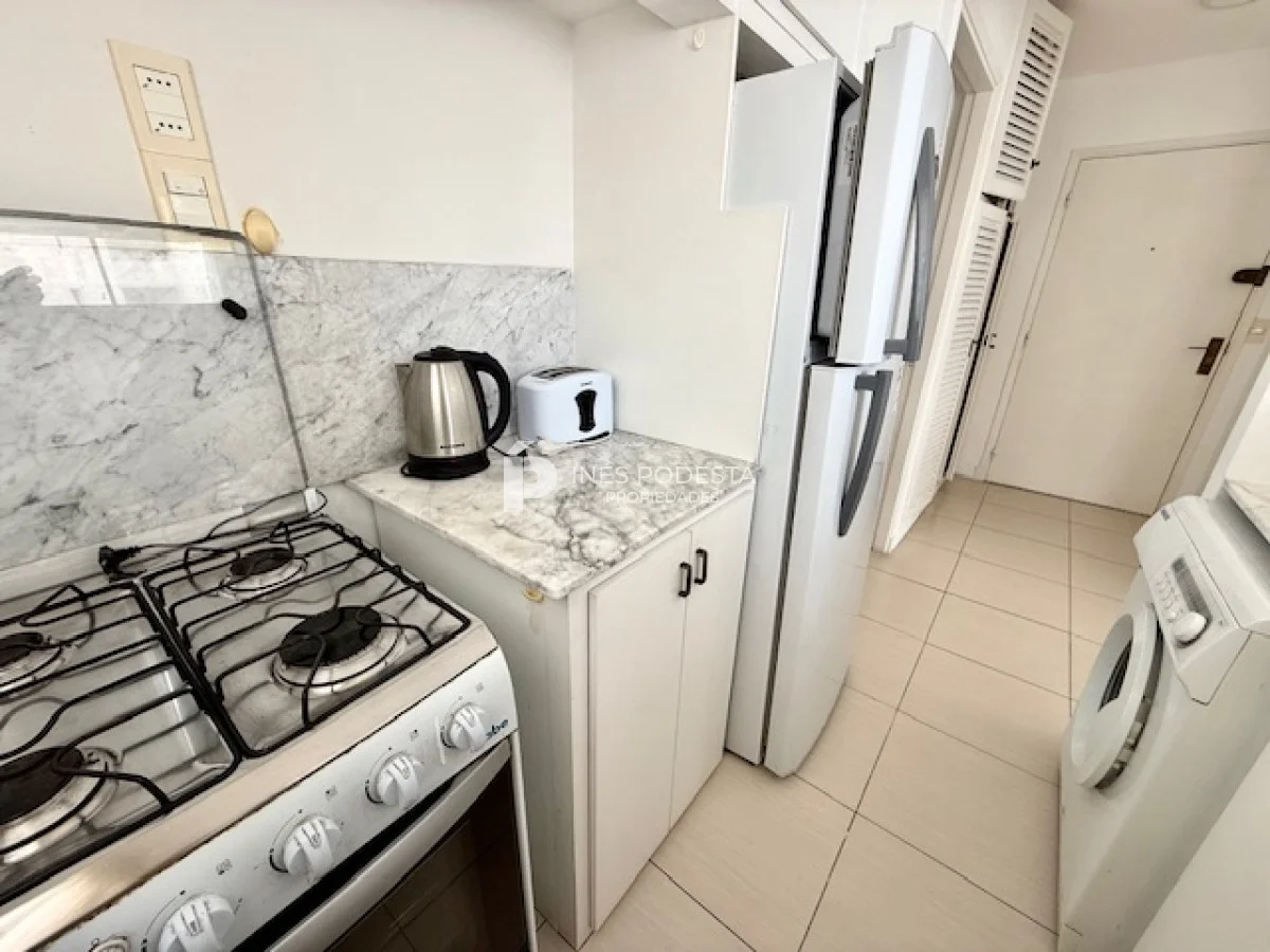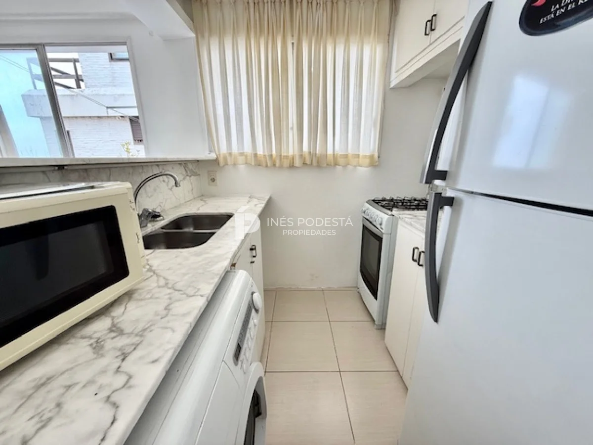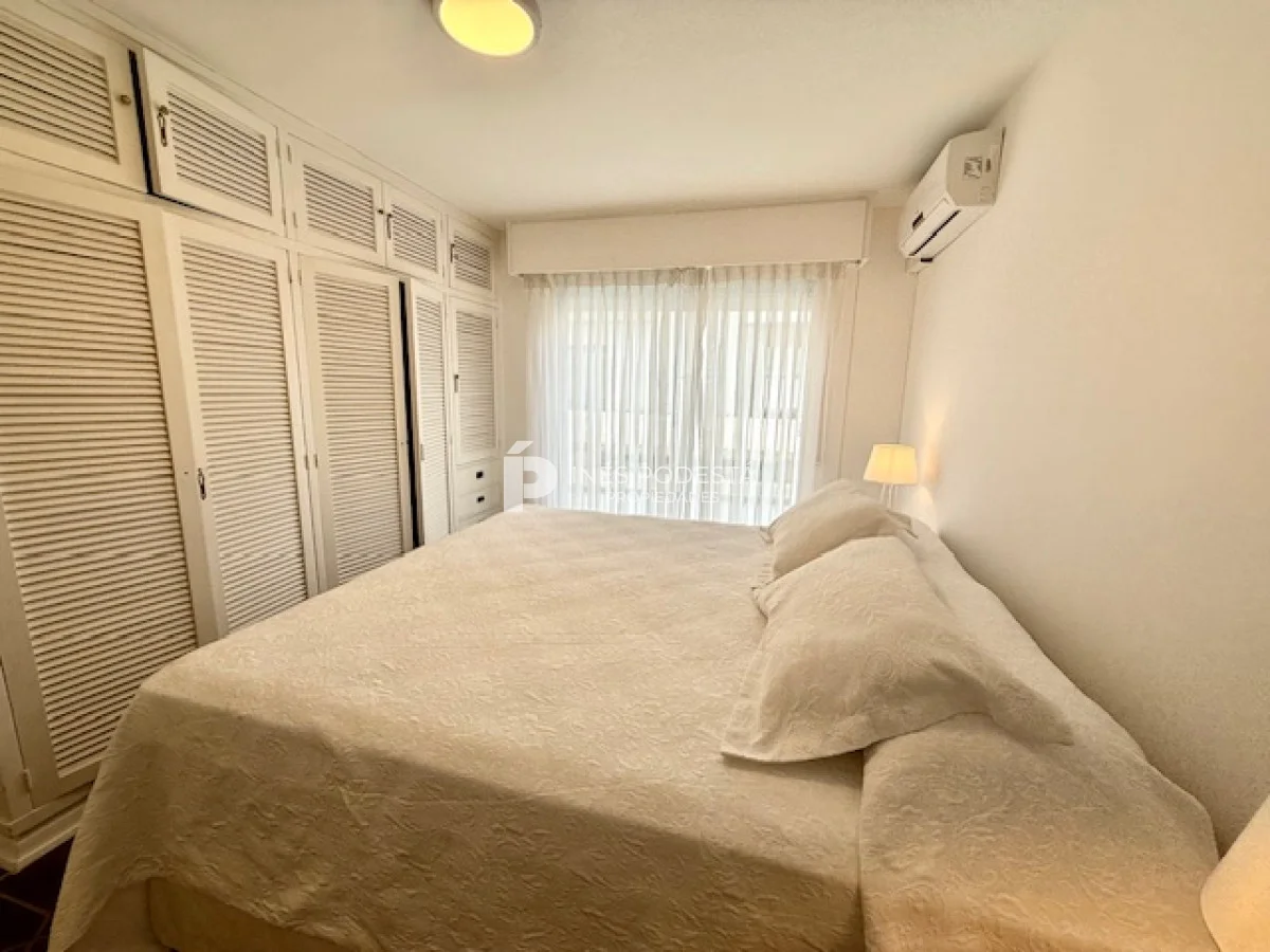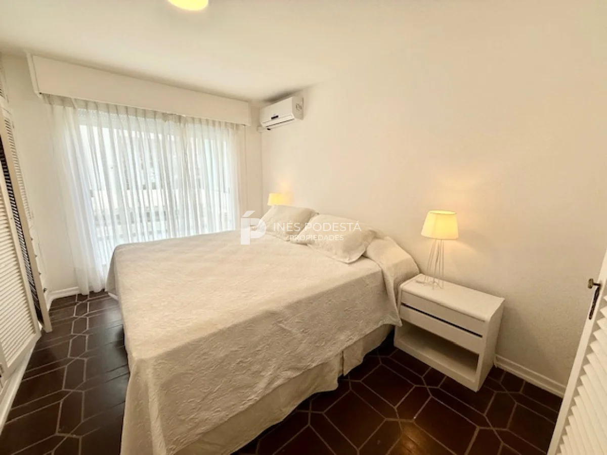 Muy lindo departamento a pasos del Puerto de Punta del Este, 65 m2 propios más 30 m2 de terraza, living comedor, gran terraza con parrillero, cocina americana, 3 dormitorios, 2 baños (principal en suite), garage, portería y servicio de mucama 6 veces a la semana.