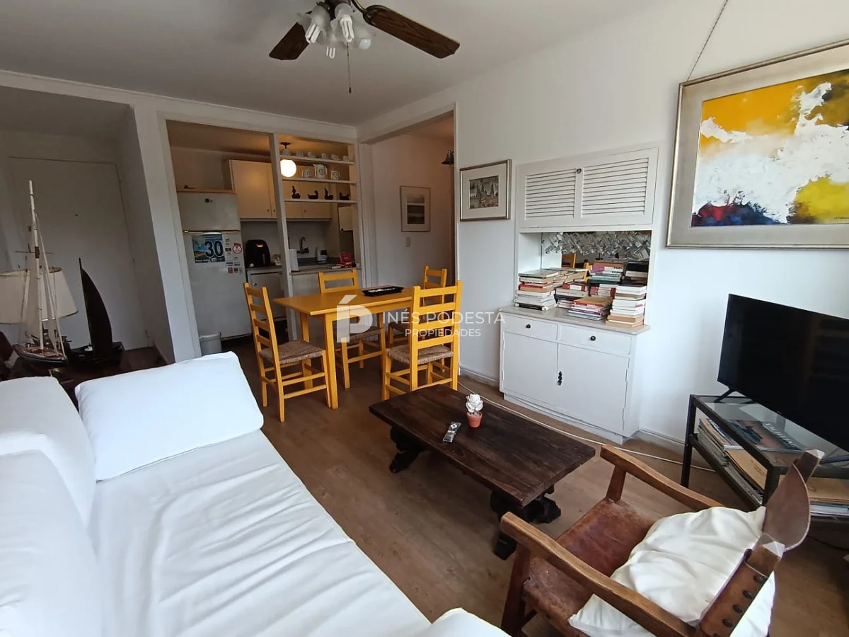 Muy agradable apto primera linea de la masa , 1 dormitorio y medio , living comedor ,cocina , baño , reciclado , cochera techada y baulera- Comodidades para 4 personas , wifi , ropa blanca , lavarropas , tv smart , ventilador de techo - Inés Podestá Propiedades Inmobiliaria Punta del Este Referencia Interna : Tera-41843