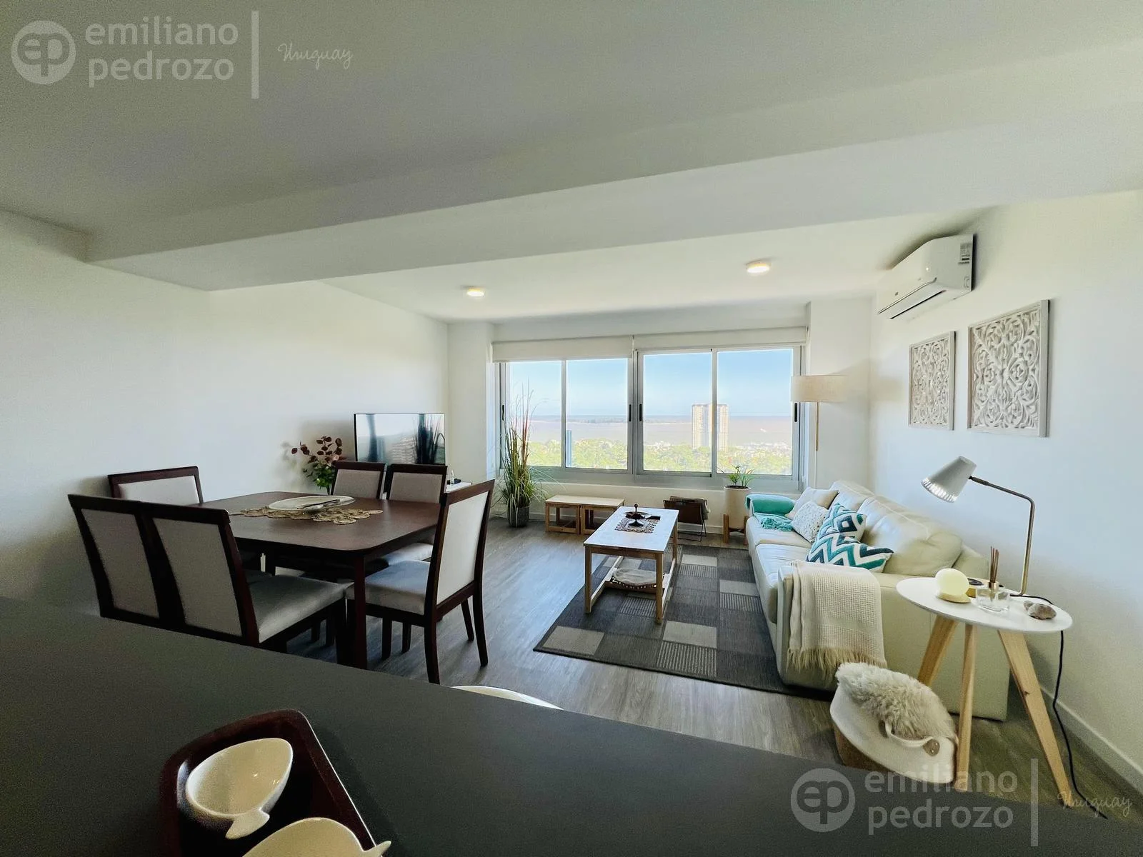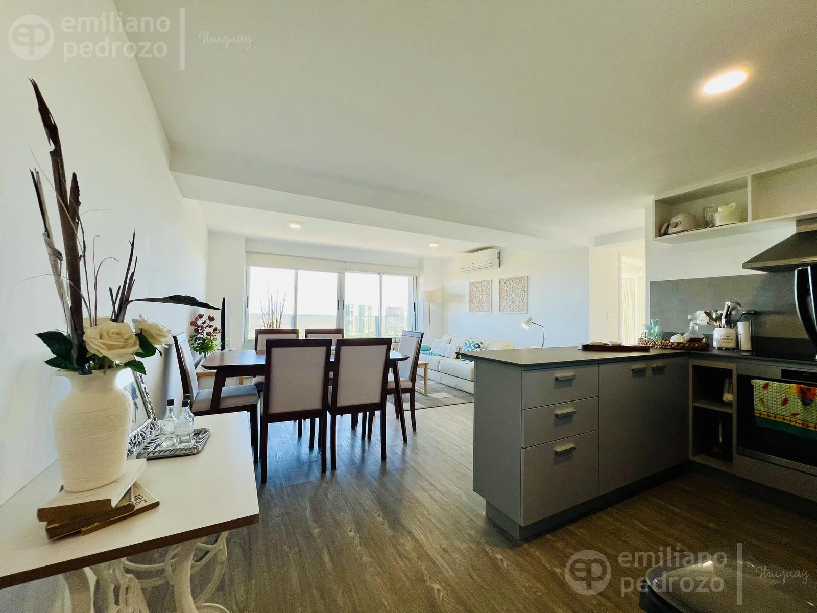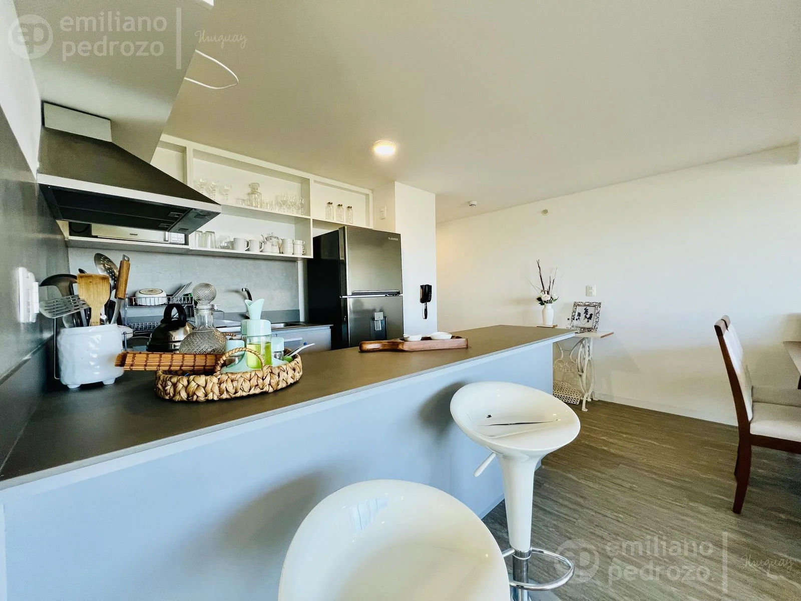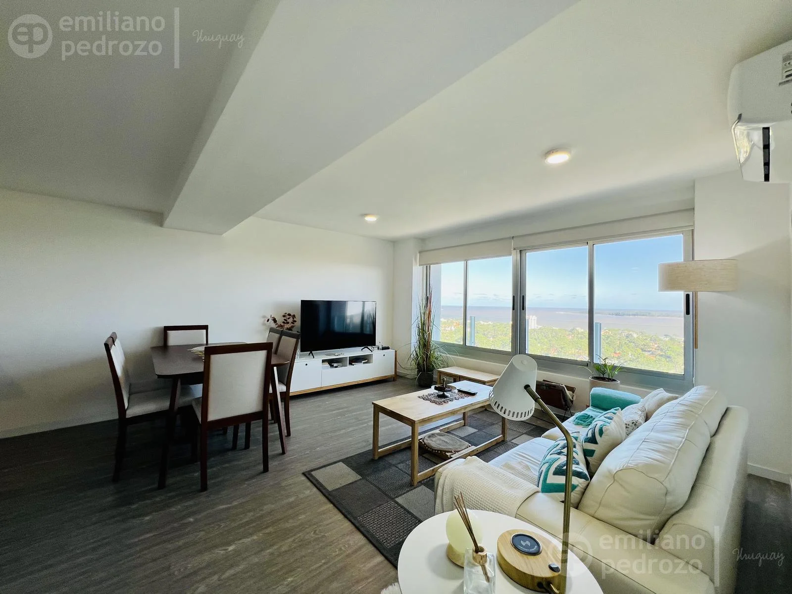 Apartamento en alquiler con vista al mar! en Torre nueva con servicios, ubicado sobre Av Roosevelt. Cuenta con living comedor con cocina integrada, 2 dormitorios, 1 baño. Muy lindo equipado, con aire acondicionado en todos los ambientes. Tv cable, wifi.