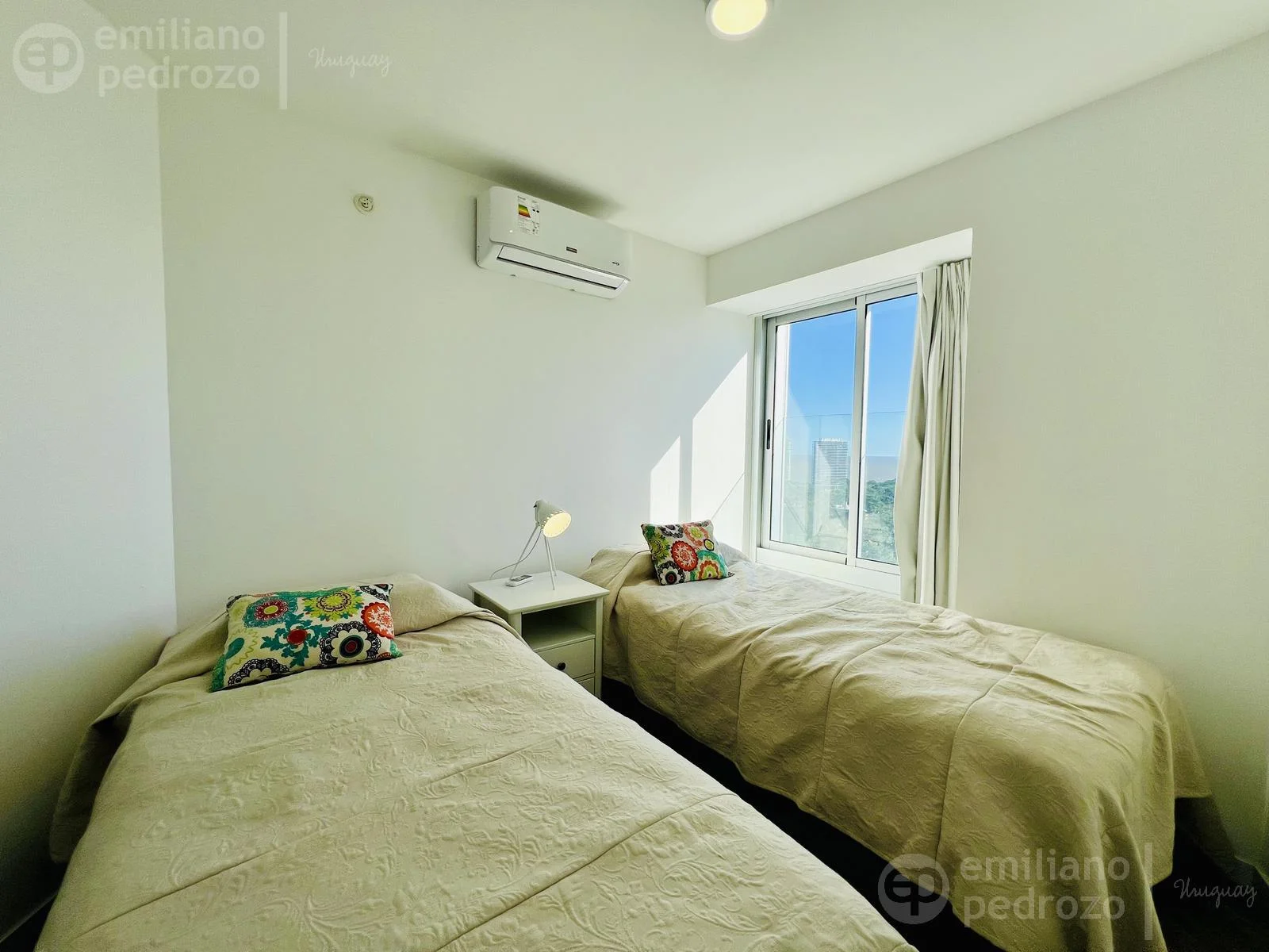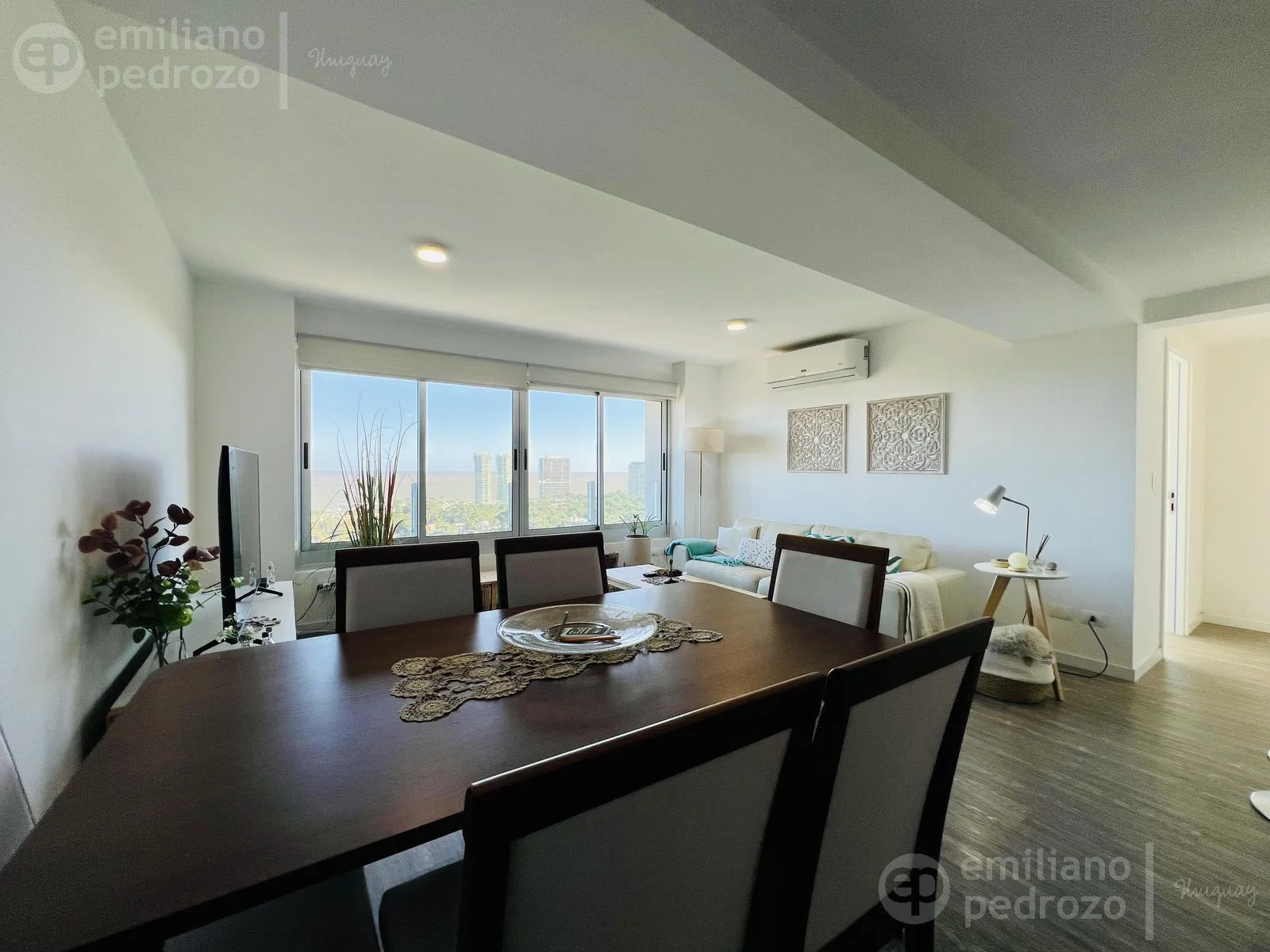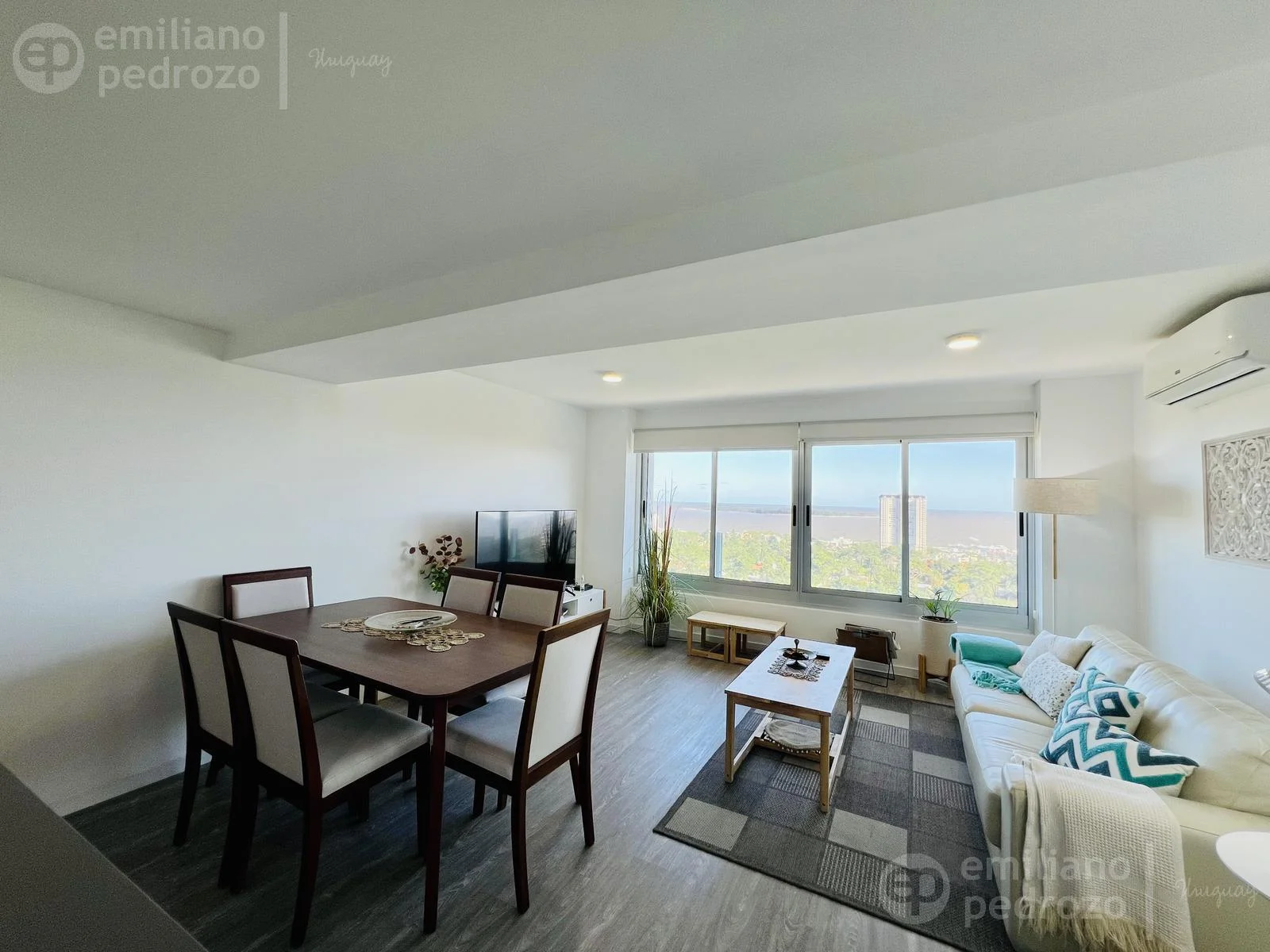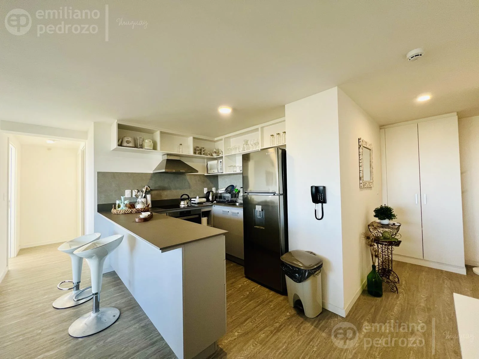 Apartamento en alquiler con vista al mar! en Torre nueva con servicios, ubicado sobre Av Roosevelt. Cuenta con living comedor con cocina integrada, 2 dormitorios, 1 baño. Muy lindo equipado, con aire acondicionado en todos los ambientes. Tv cable, wifi.