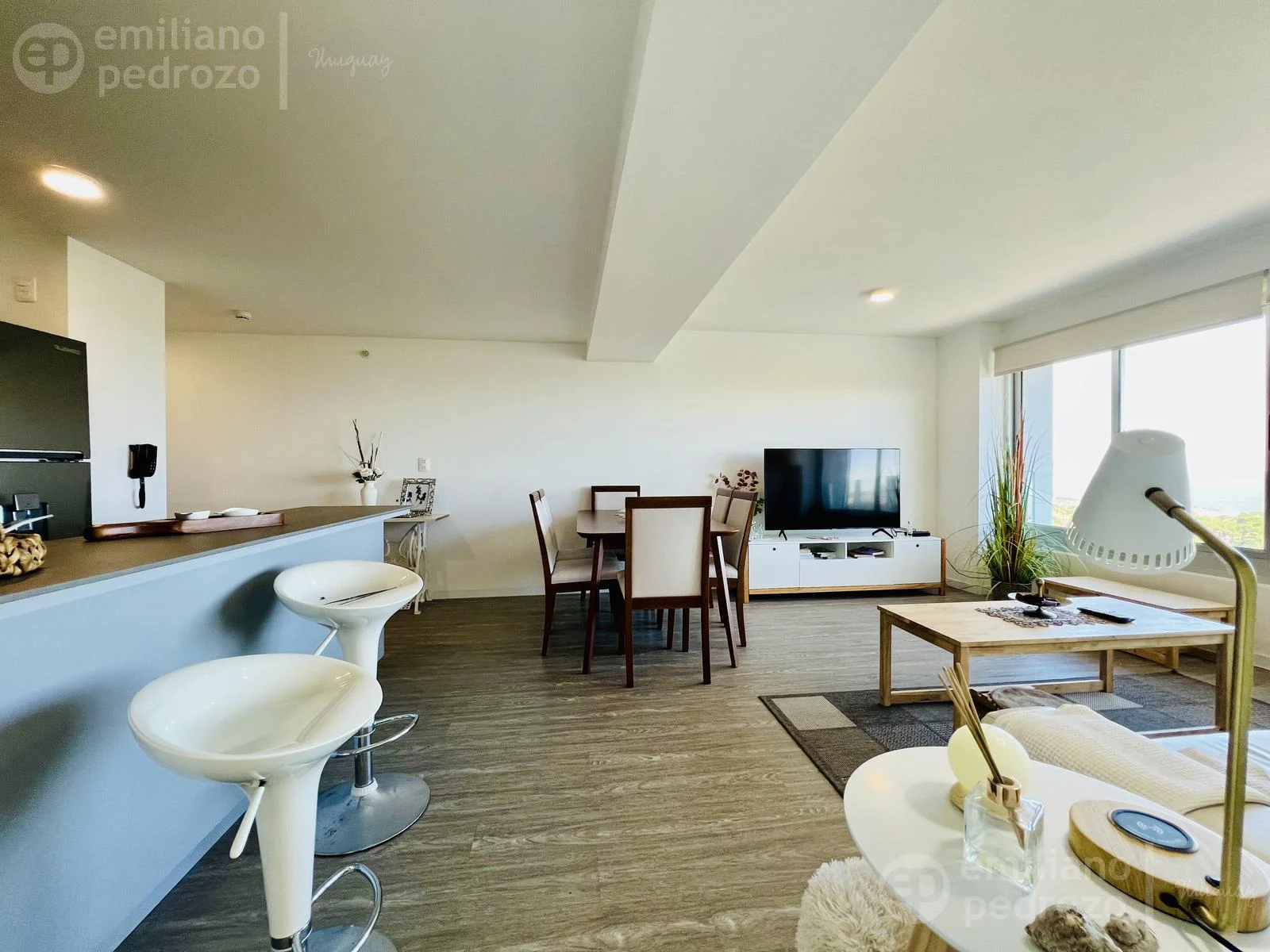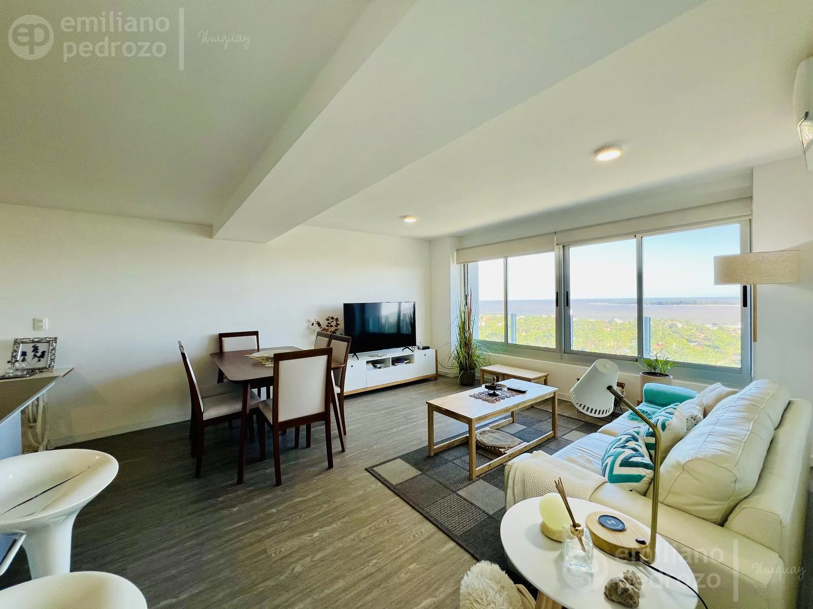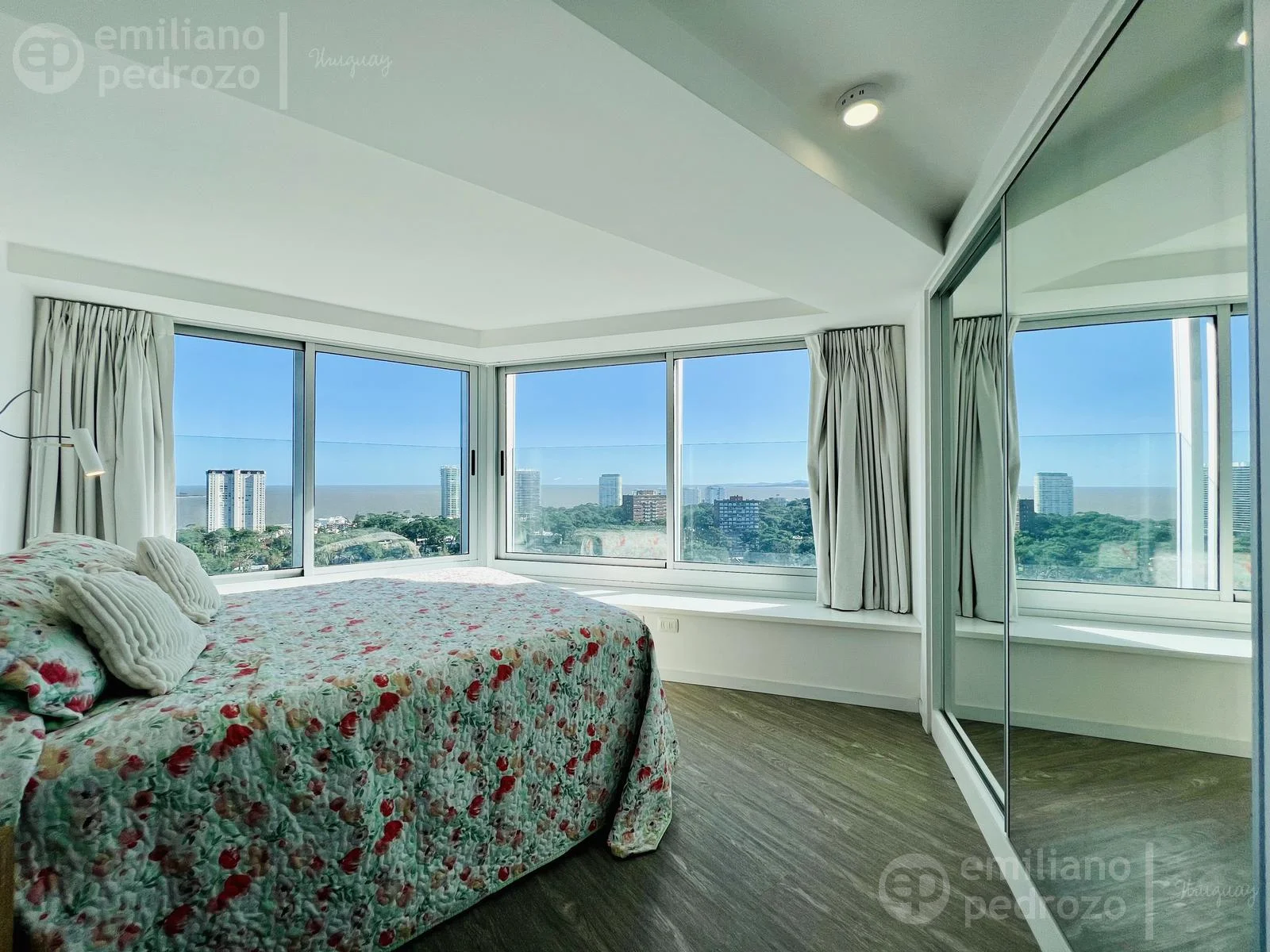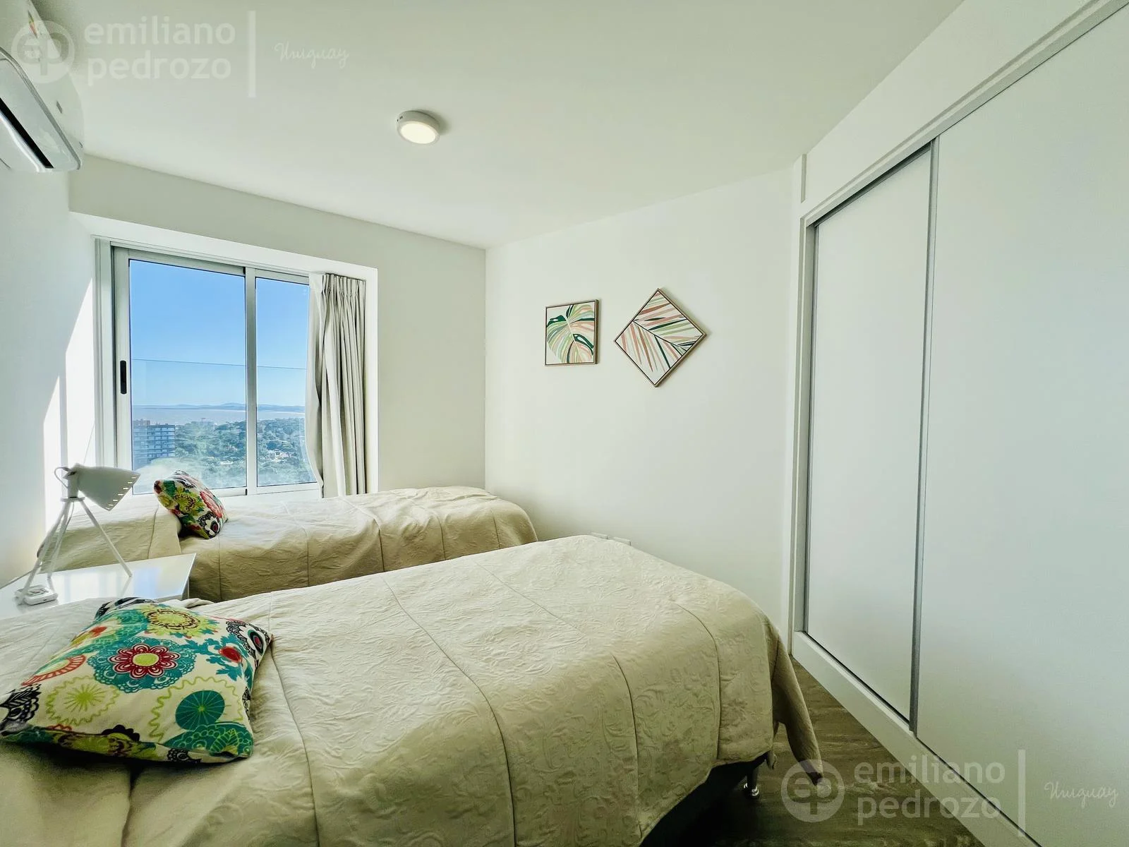 Apartamento en alquiler con vista al mar! en Torre nueva con servicios, ubicado sobre Av Roosevelt. Cuenta con living comedor con cocina integrada, 2 dormitorios, 1 baño. Muy lindo equipado, con aire acondicionado en todos los ambientes. Tv cable, wifi.