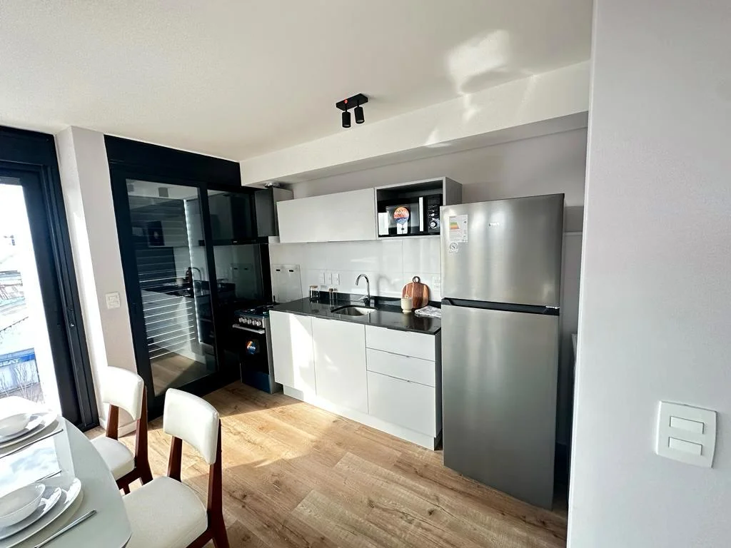 Cocina semi-integrada con buena capacidad de muebles aéreos y bajo mesada, y terraza lavadero, conexión para lavarropas