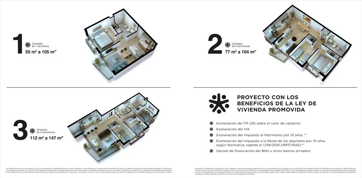 Las unidades se destacan por su amplitud, sus amplios ventanales, su luminosidad, vistas despejadas, amplias terrazas