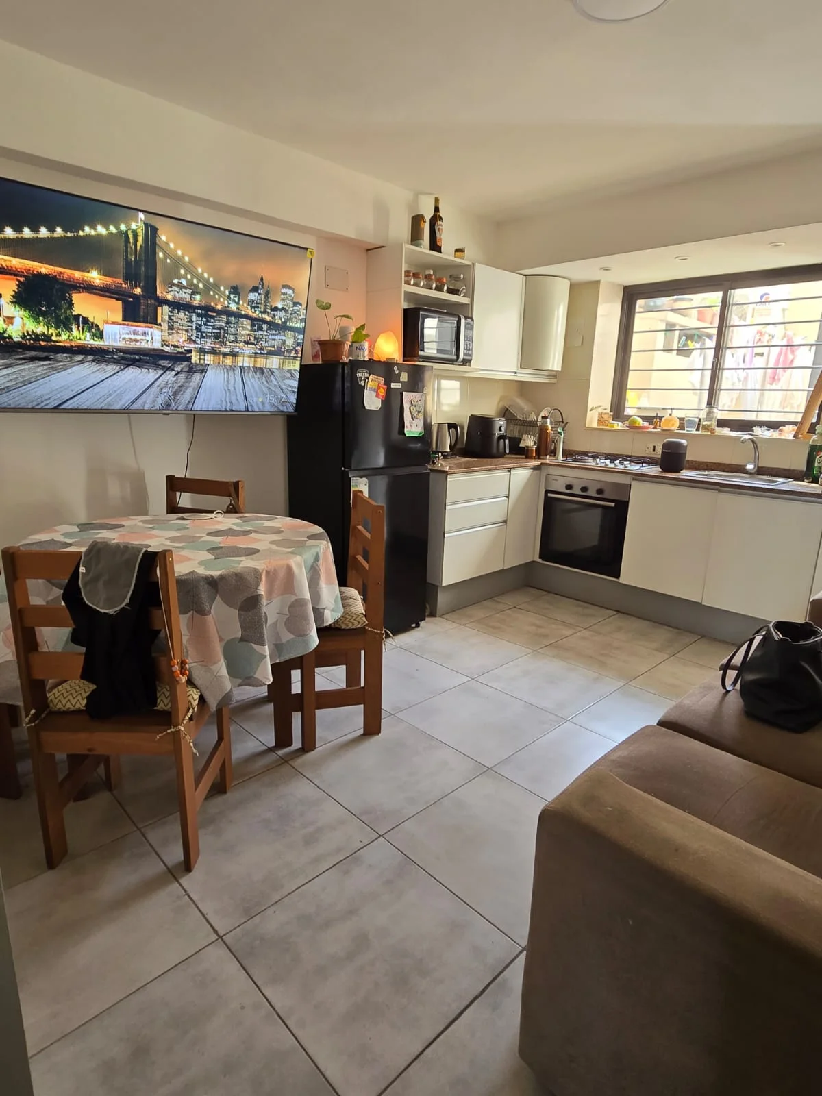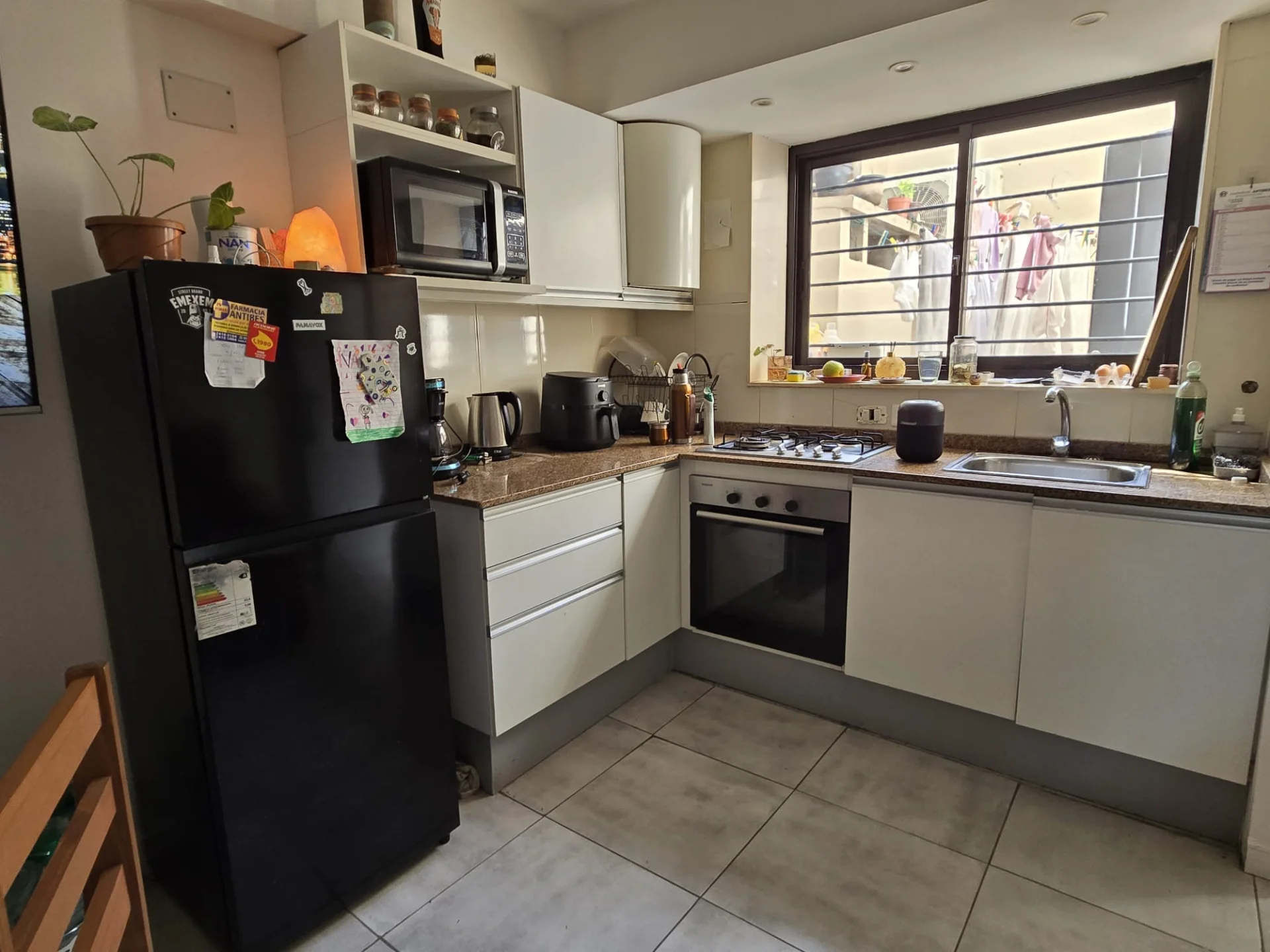 Living comedor, con comoda cocina con placares bajo y sobre mesada, la cocina da con una comoda ventana al patio del apto.