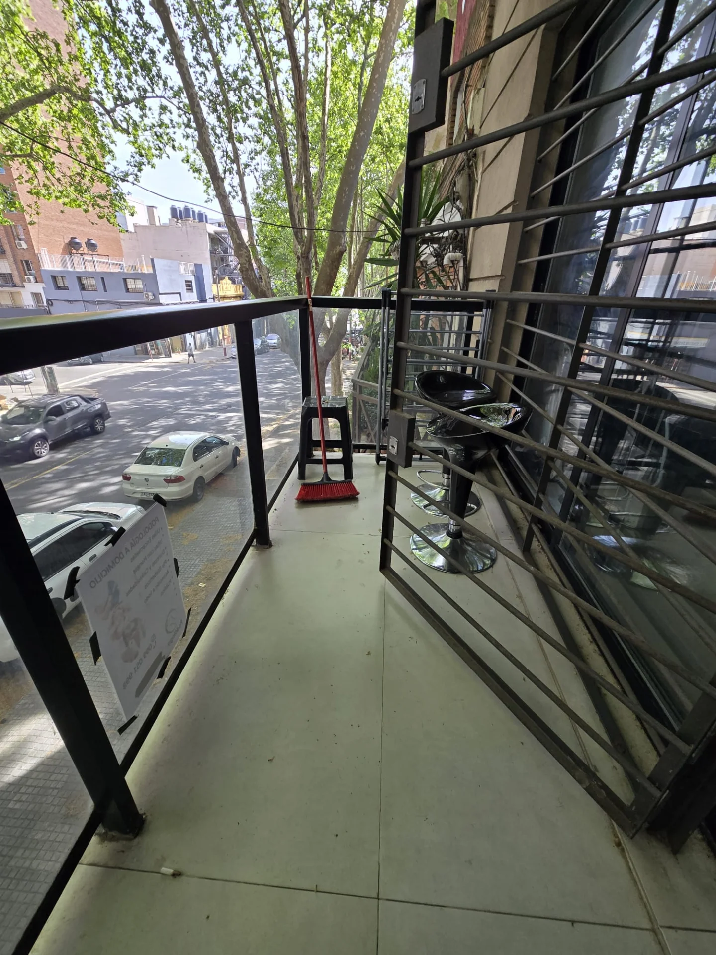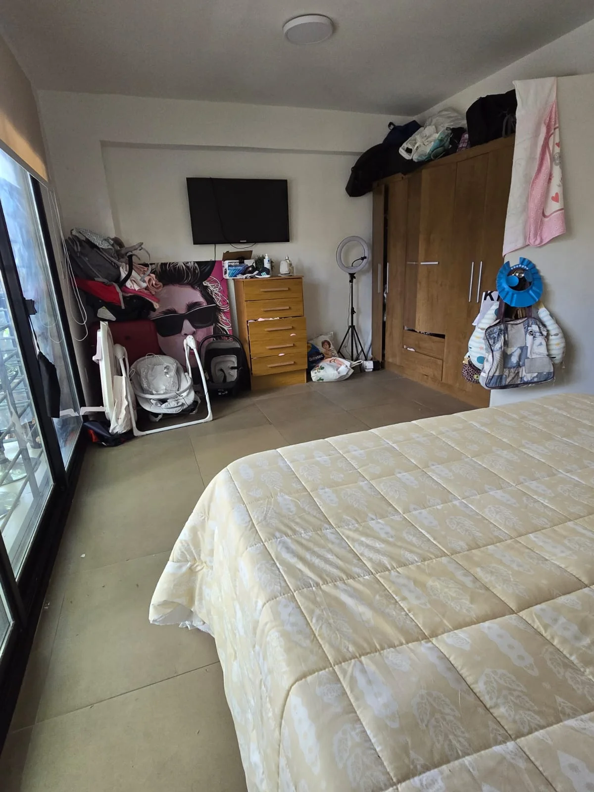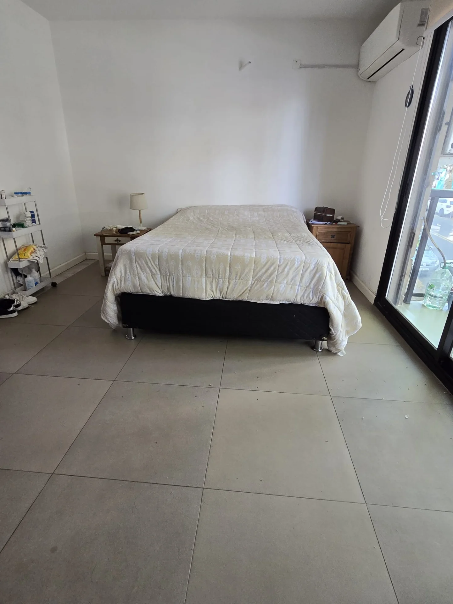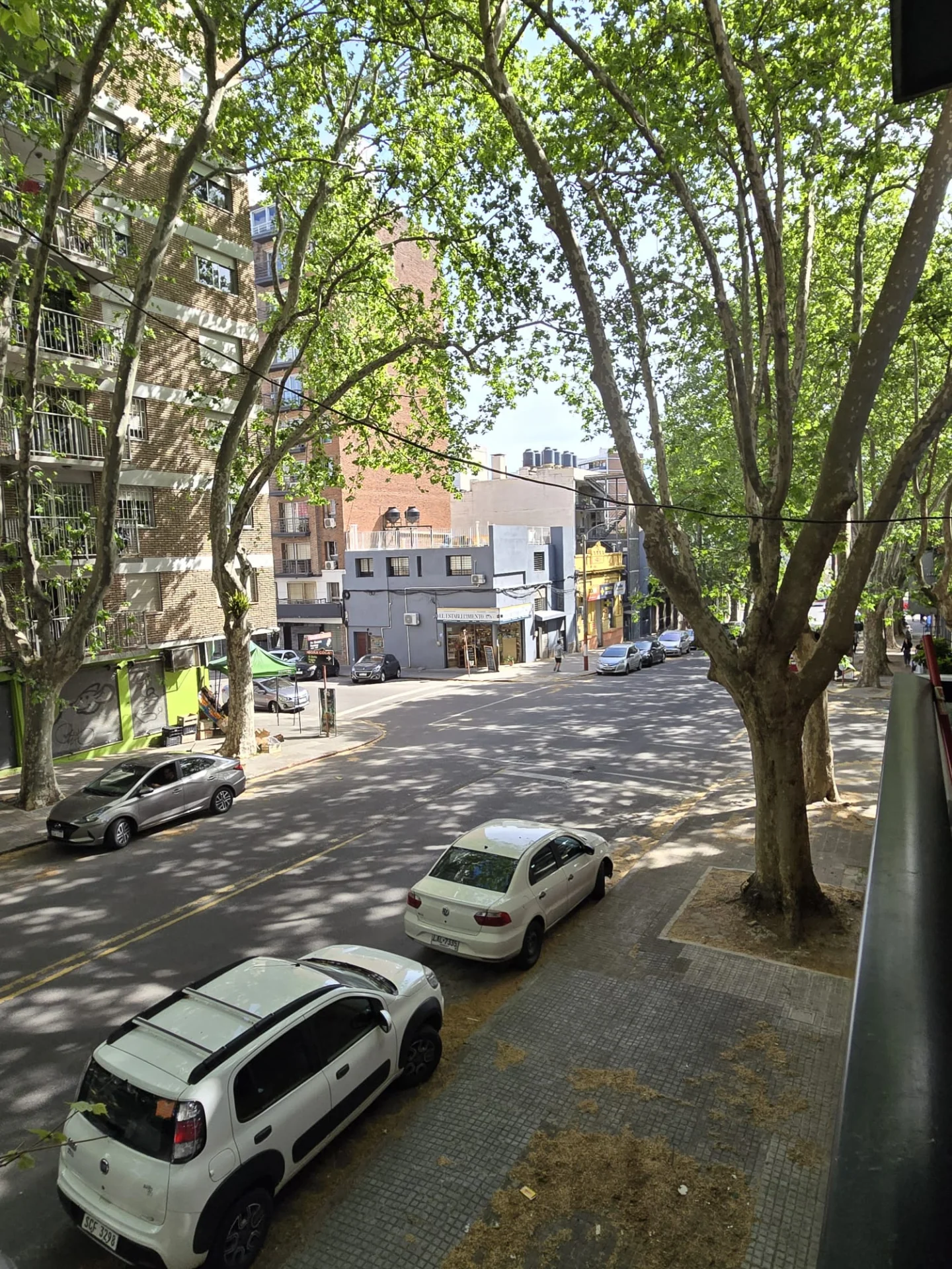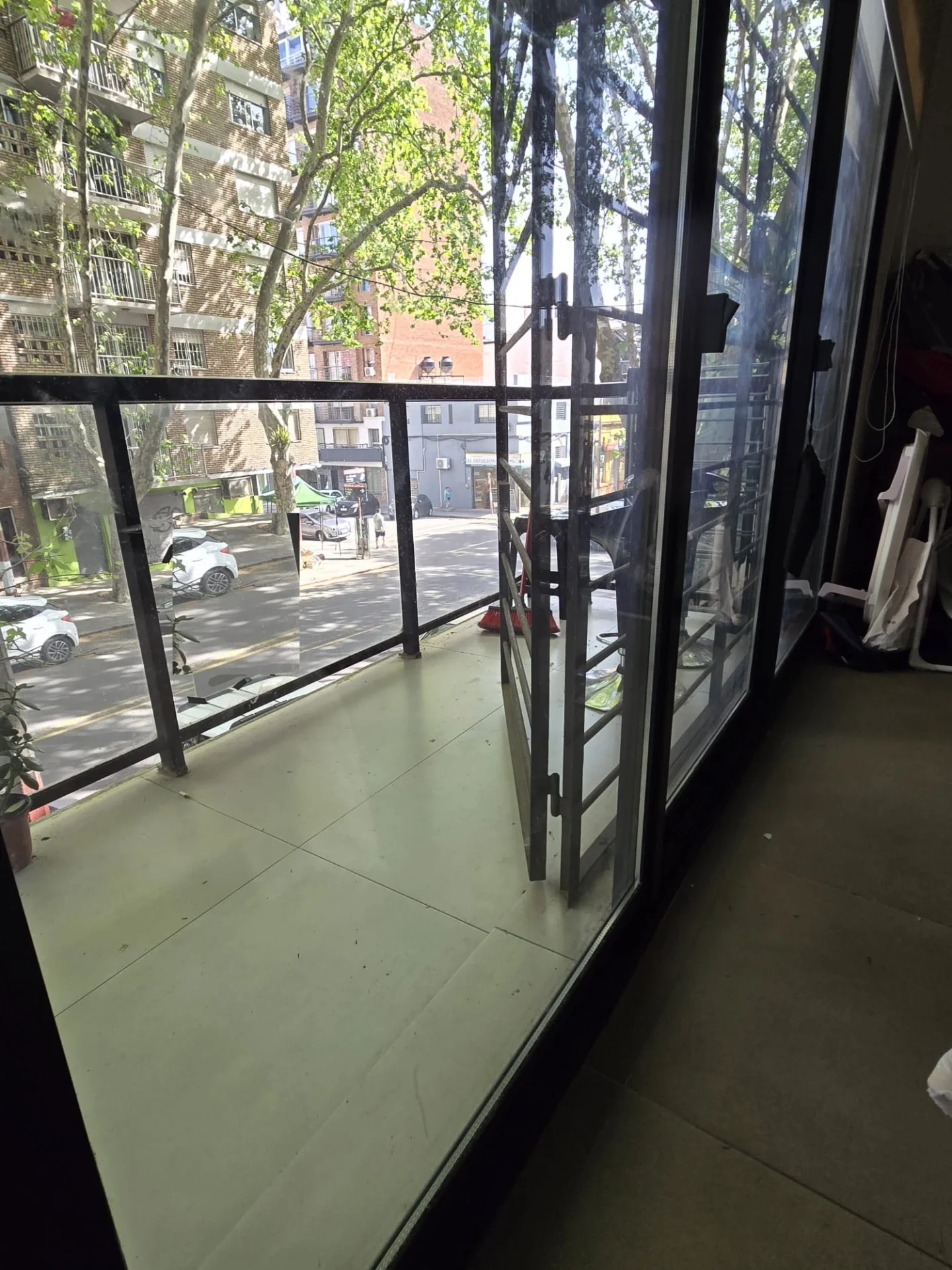 A la calle amplio dormitorio , muy amplio, no tiene placard. Amplios ventanales con doble vidrio por lo que se aisla muy bien el ruido. Rejas en puerta ventana.