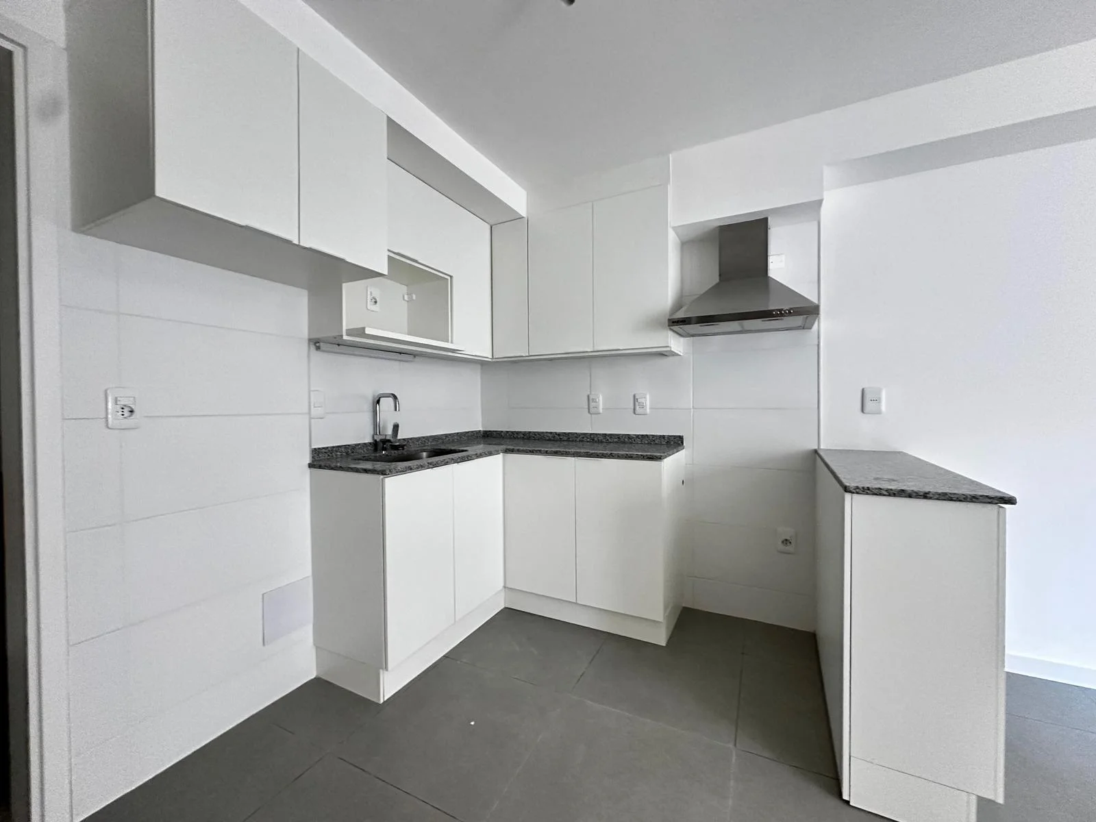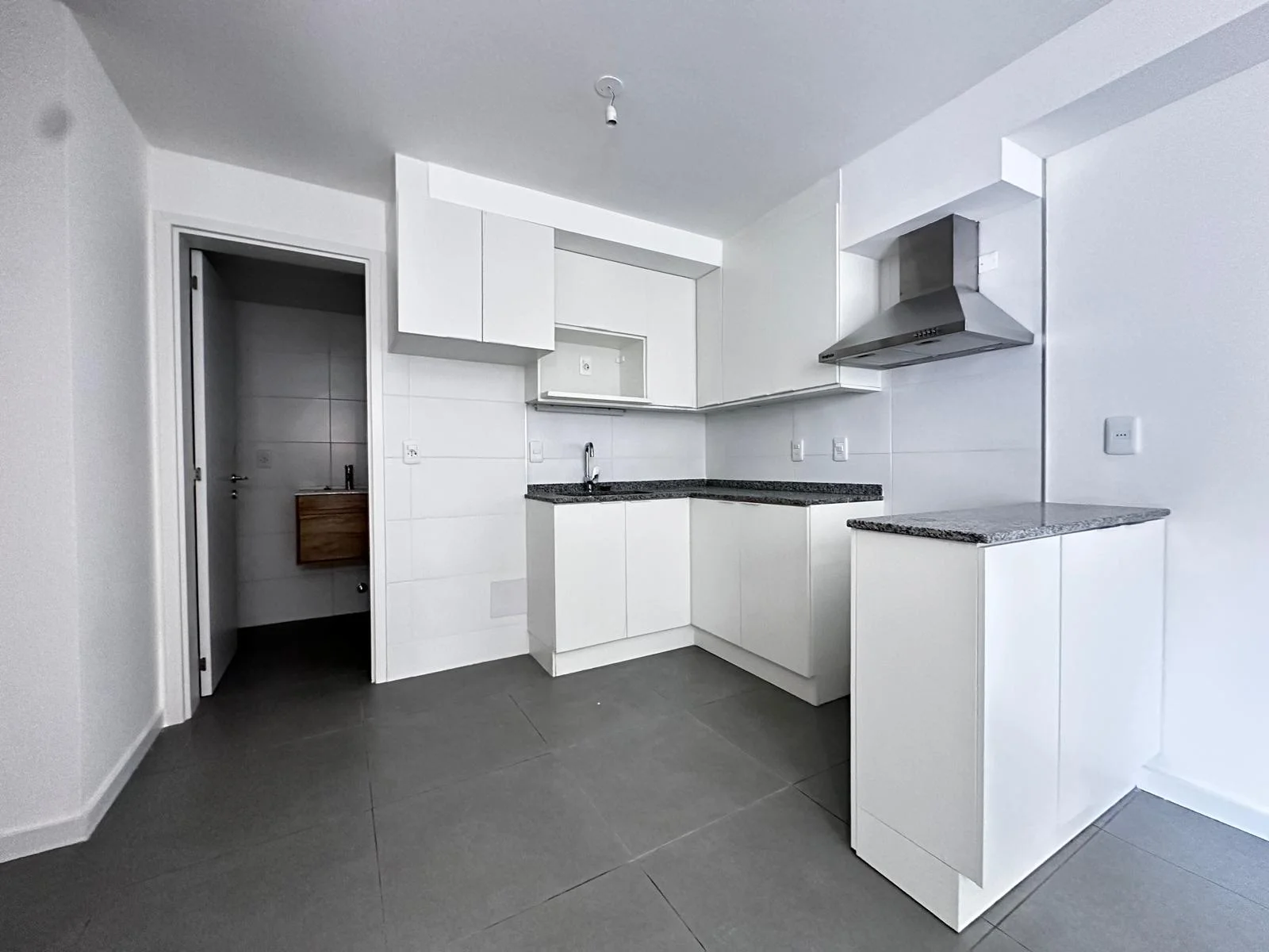 Cocina integrada con campana de extracción y placares aéreos y bajo mesada.