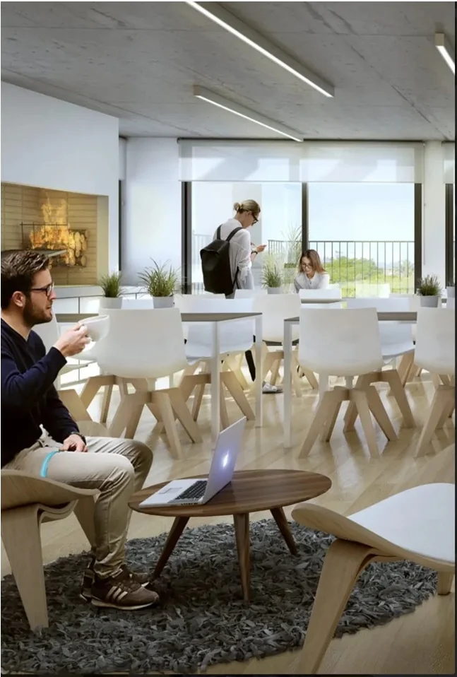 Edificio cuenta con Portero eléctrico, Portería virtual 24hs, Salón de uso común y Parrillero, Solarium, salas de Co-work, Lavandería y Gimnasio