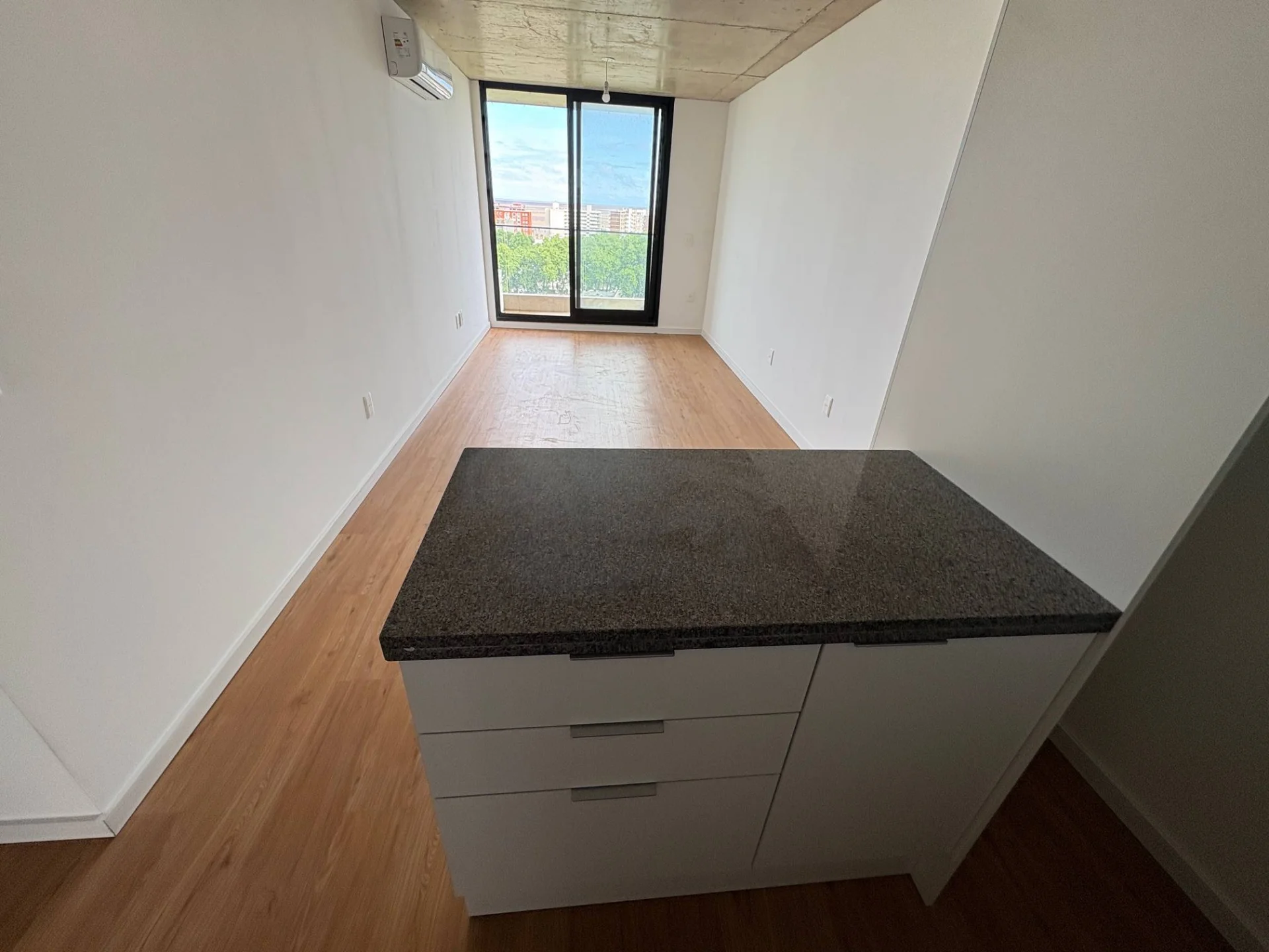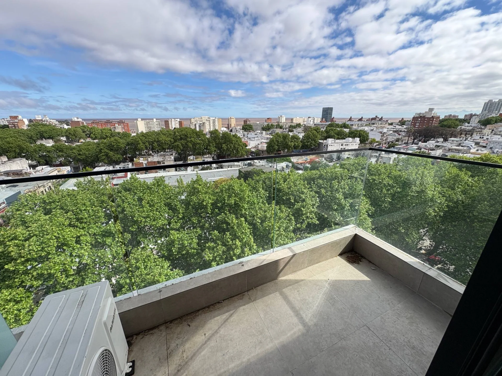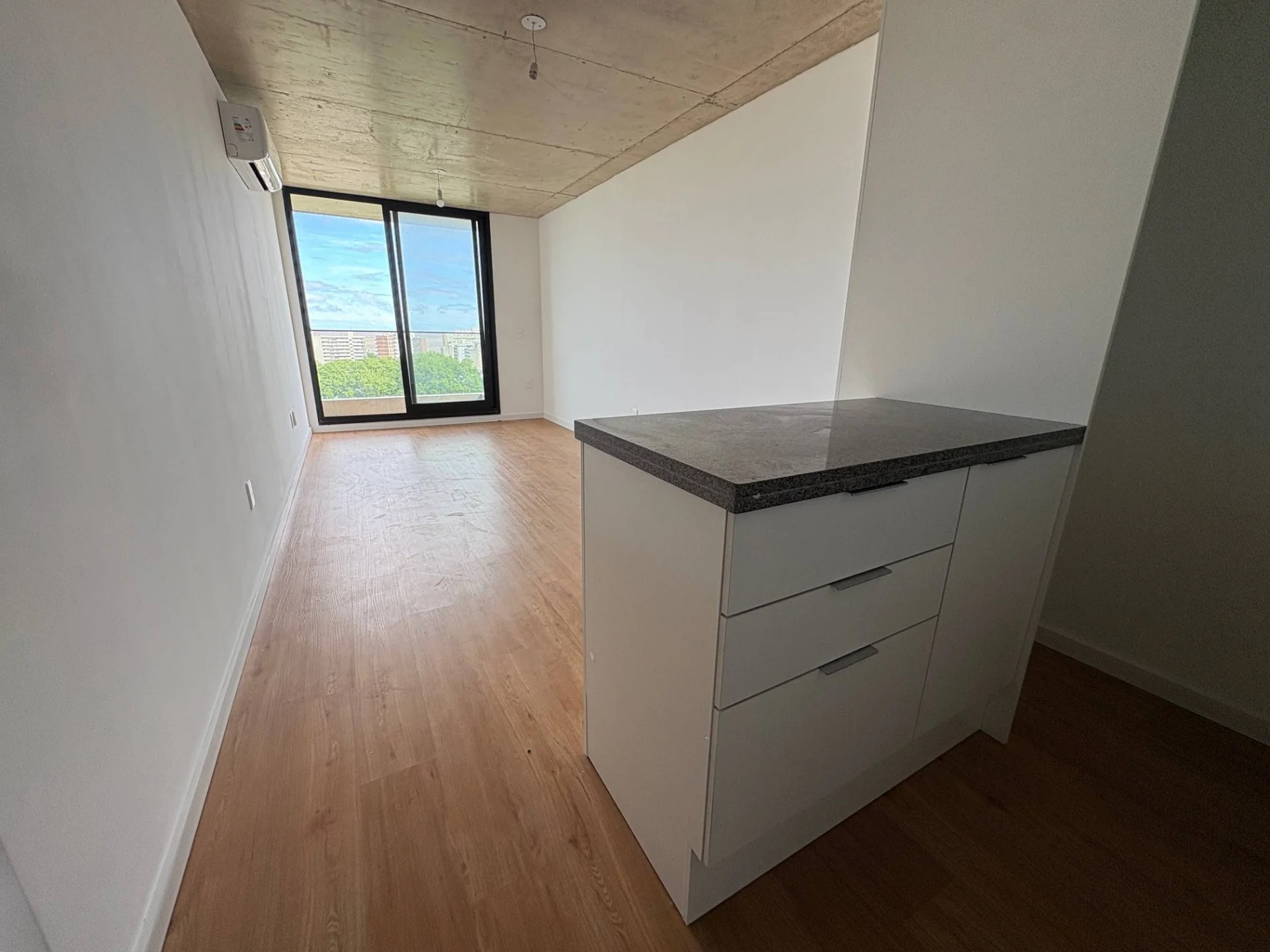 Living comedor amplio al frente con salida a terraza, vista despejada. Cuenta con aire acondicionado
