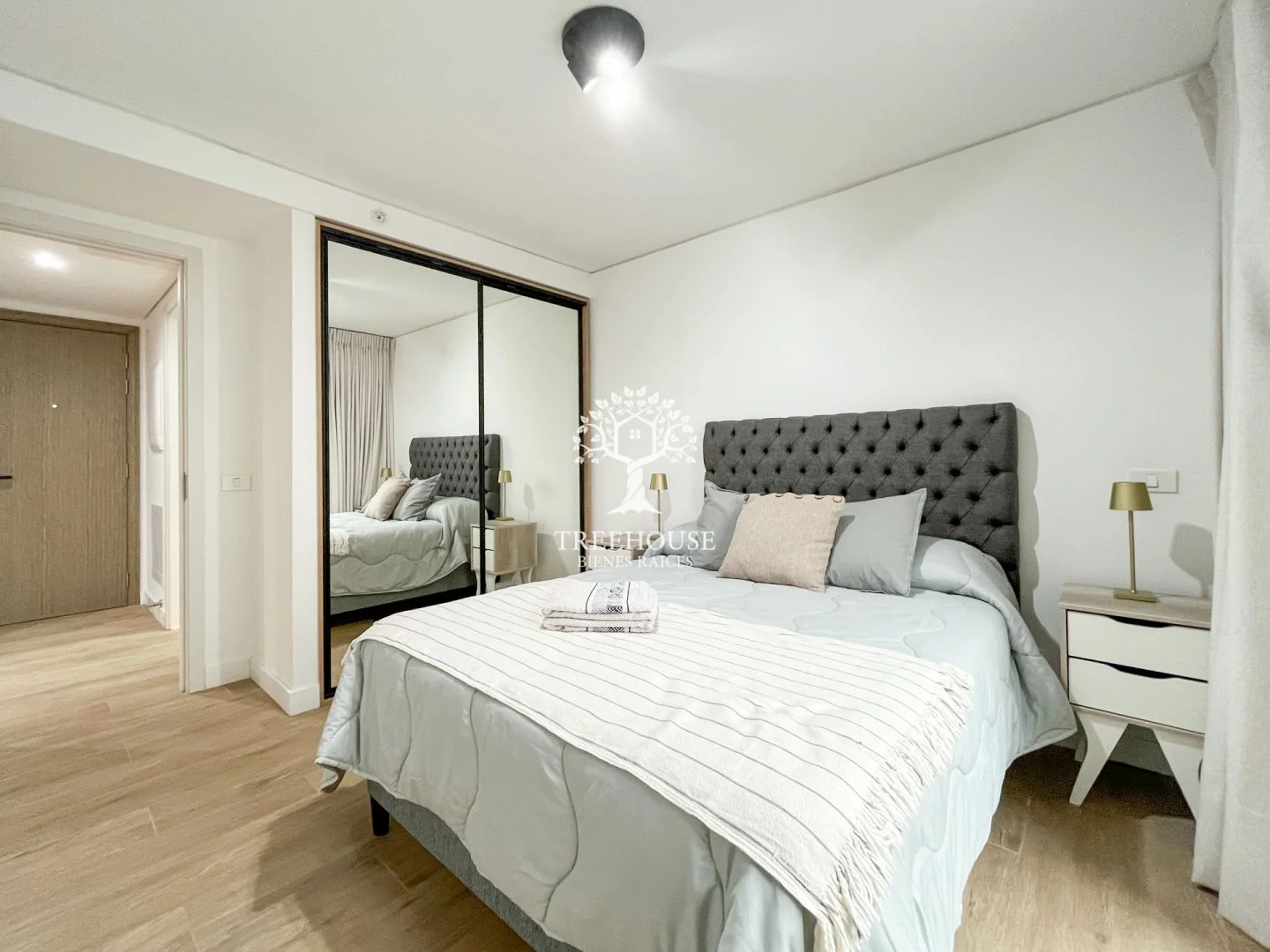 Completamente amoblado, con mobiliario de primera línea, electrodomésticos, aires acondicionados, vajilla, etc.