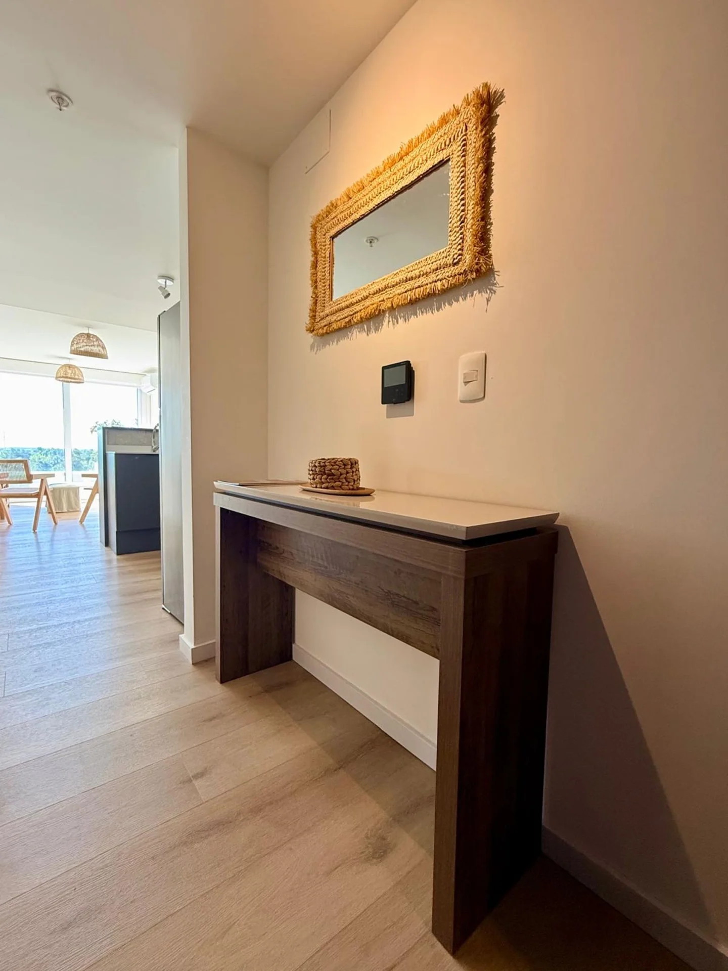 Living comedor y dormitorio con salida al mismo balcón. Losa radiante eléctrica individual por ambiente en todo el apartamento.