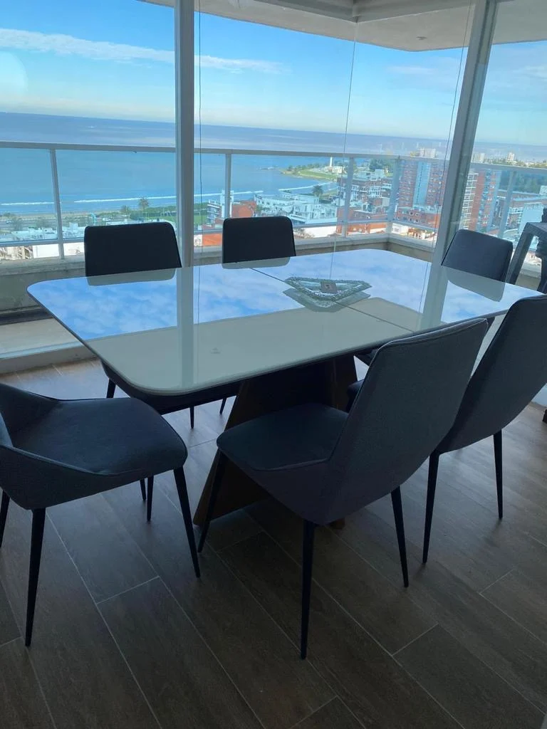 Living comedor muy amplio con terraza grande al frente y con parrillero al mar, 3 dormitorios con placares (el principal en suite y con vestidor),2baños completos, baño social, cocina amplia muy linda, con placares y salida a terraza lavadero,y garaje con lugar fijo.