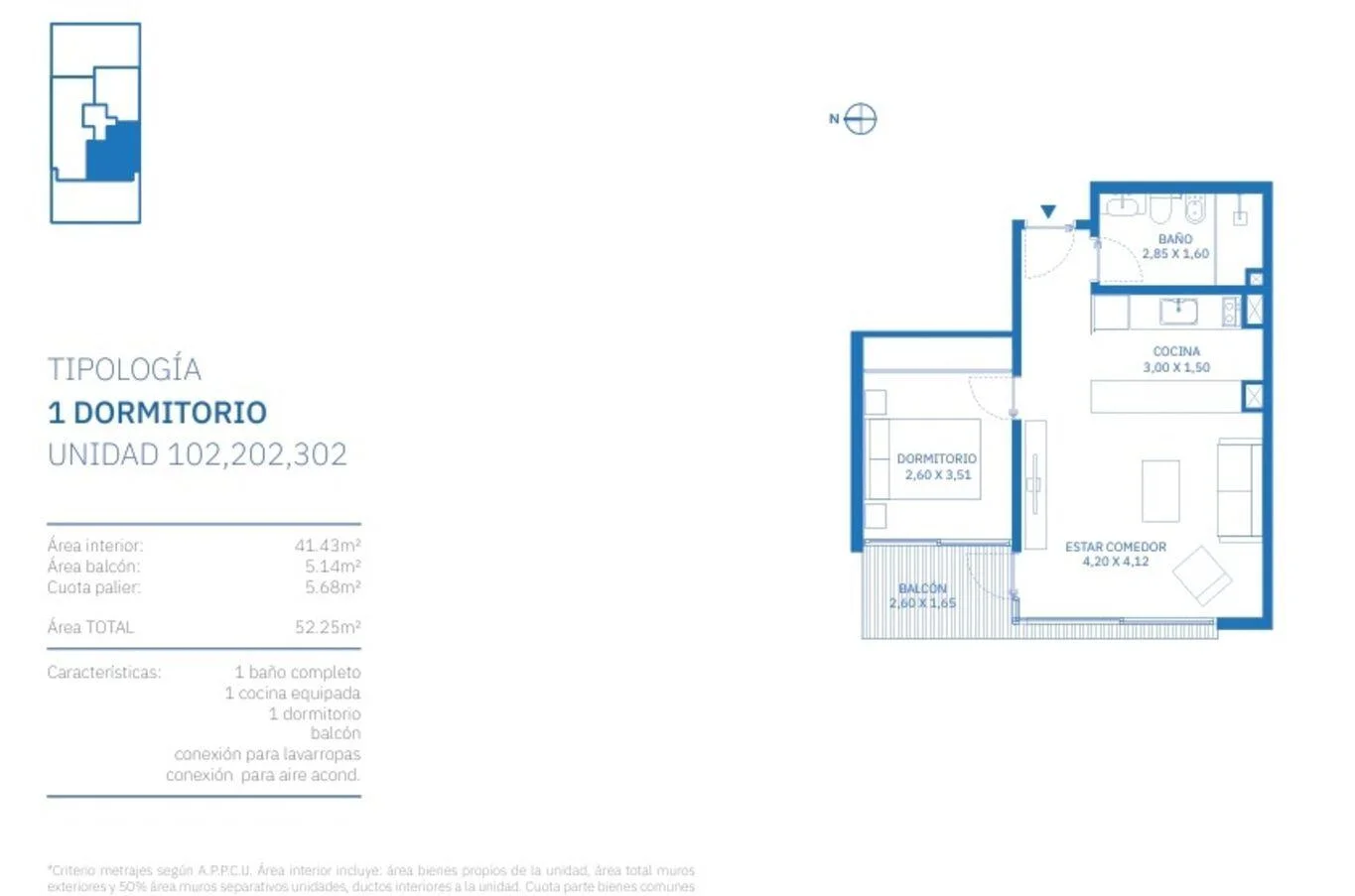 Apartamento de 1 dormitorio.