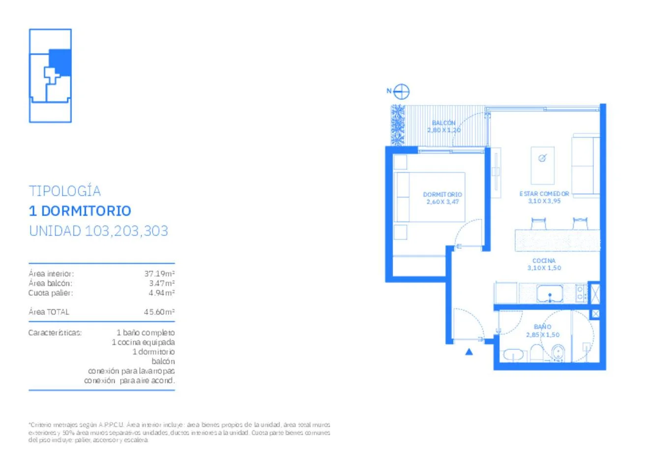 El apartamento se entrega con placard en dormitorio, horno empotrado, anafe, campana extractora en cocina, aire acondicionado instalado en el living comedor y dormitorio.
