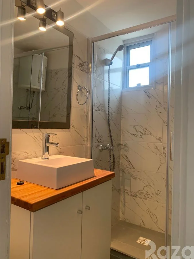 - Amplio baño a estrenar, completo con doble mampara de vidrio, mueble bajo mesada con bacha. Calefón incluído.
