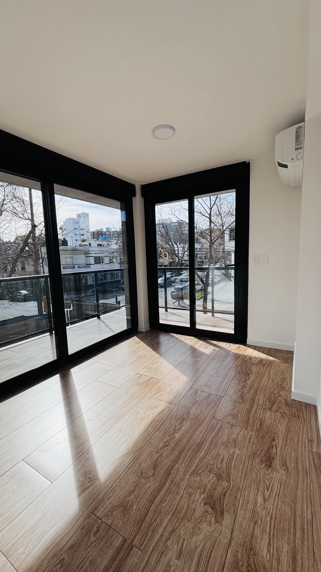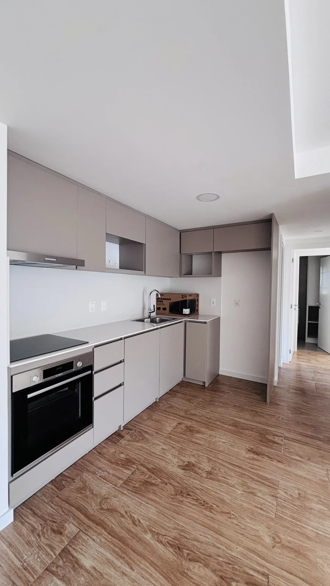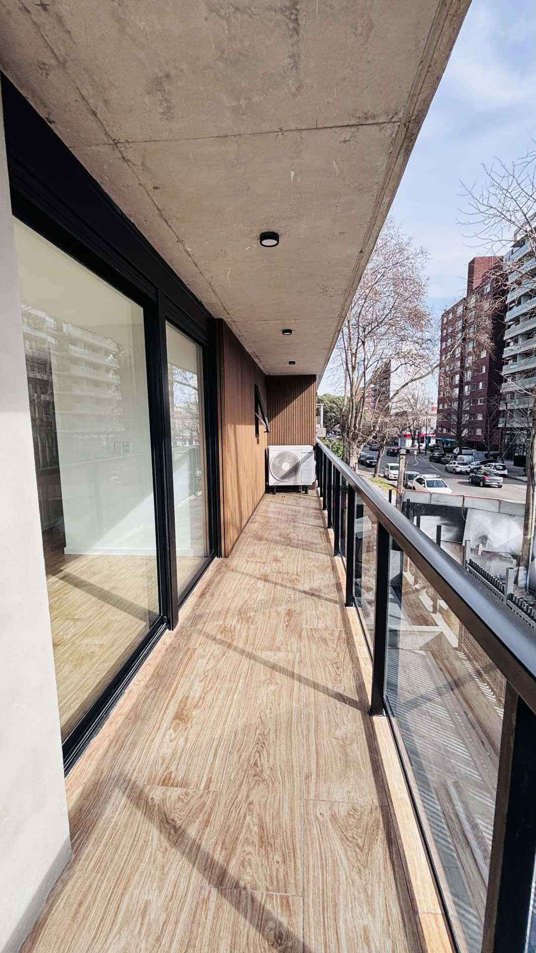 Living comedor con salida a terraza. Cocina integrada con placares sobre y bajo mesada. Equipada con anafe, horno, microondas , campana extractora y termotanque.