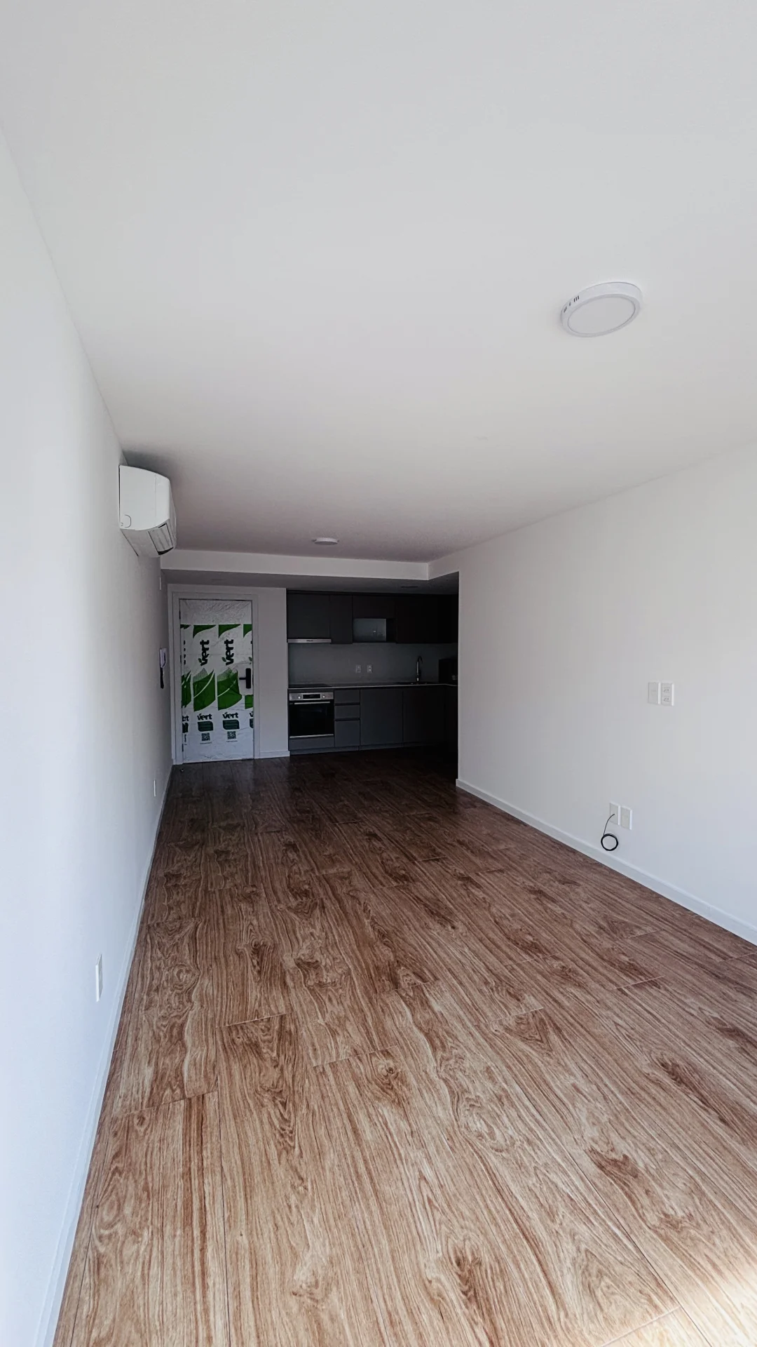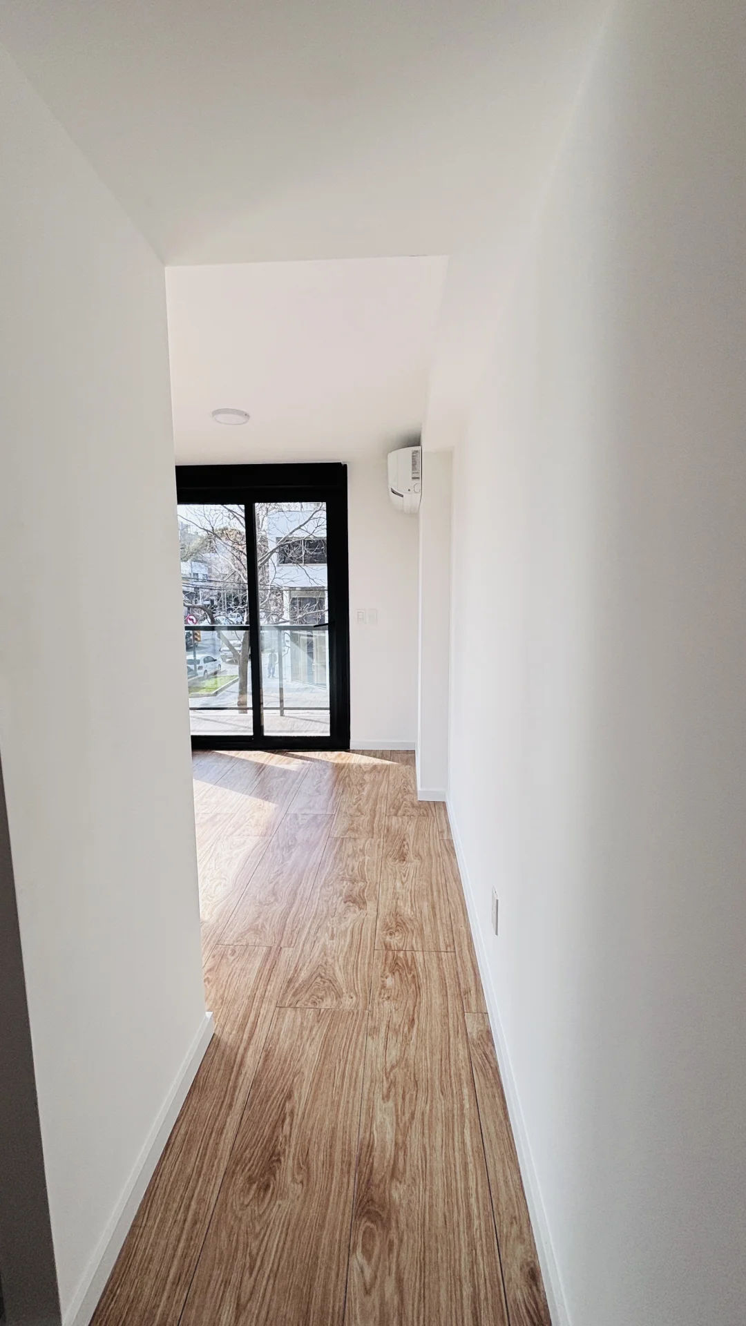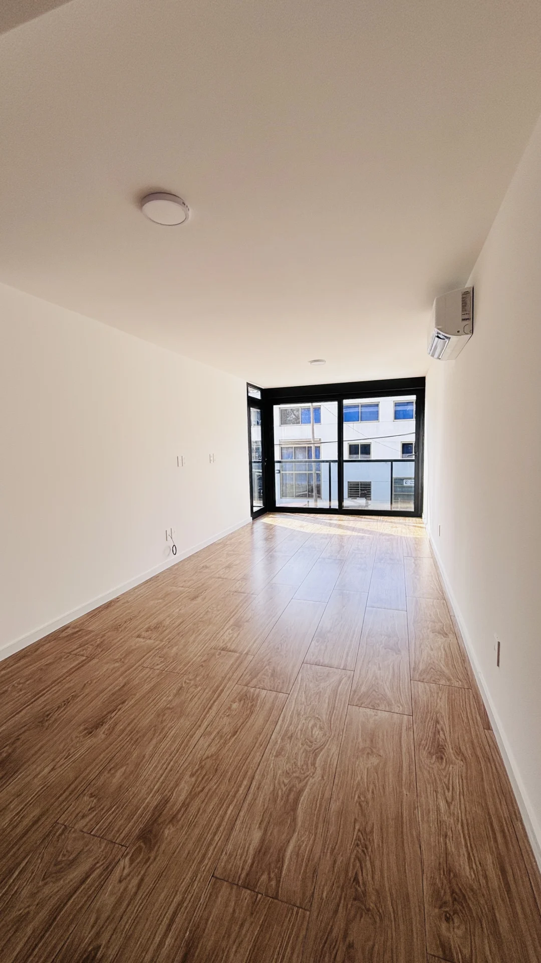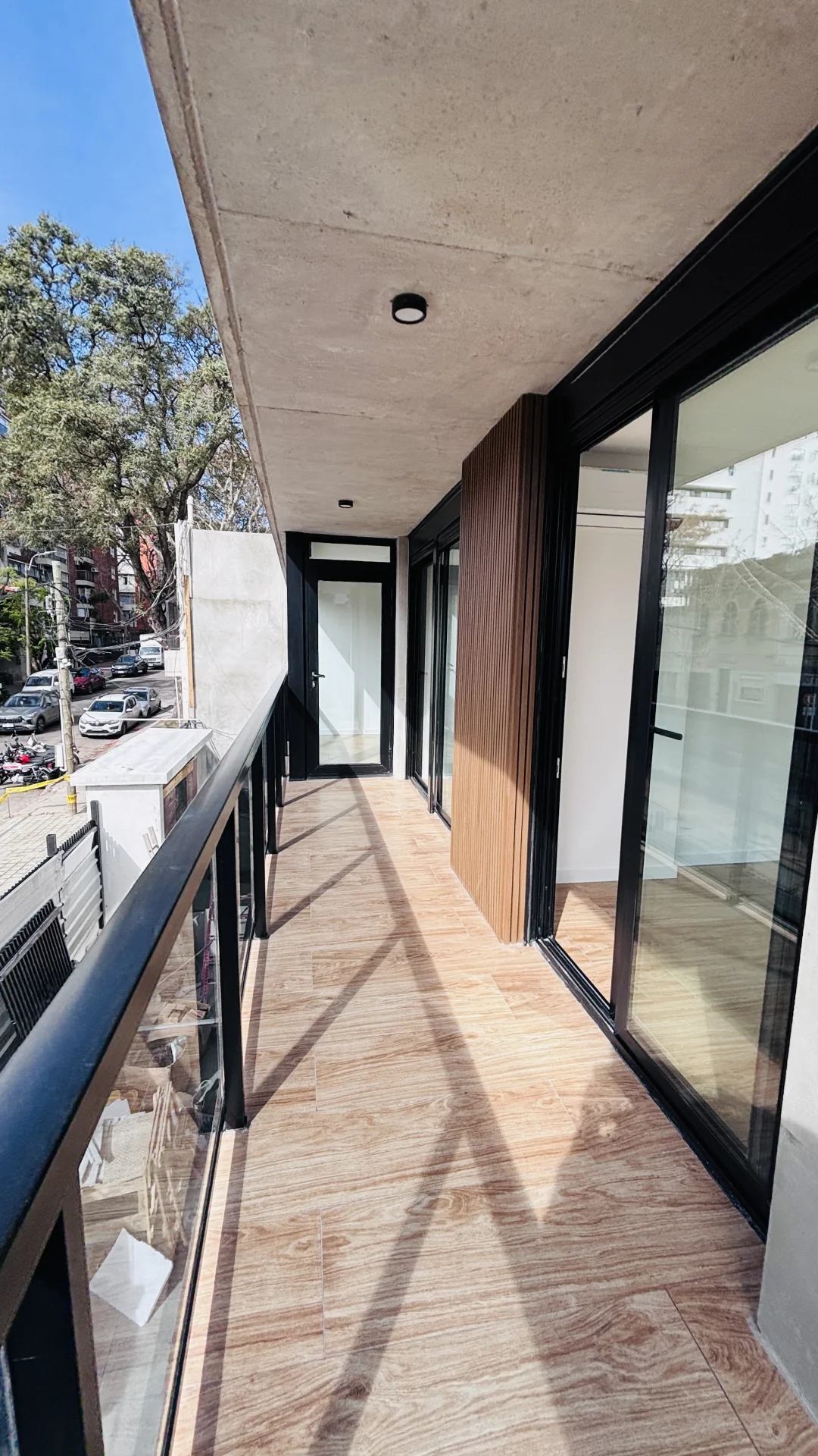 Living comedor con salida a terraza. Cocina integrada con placares sobre y bajo mesada. Equipada con anafe, horno, microondas , campana extractora y termotanque.