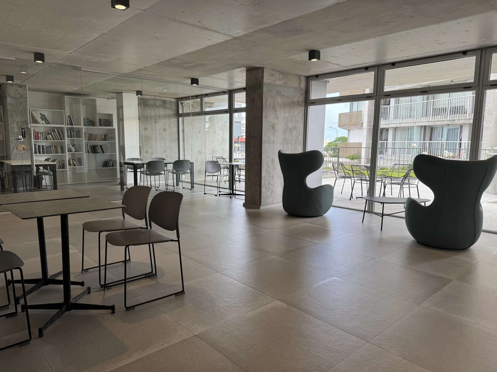 El edificio cuenta con laundry, co-work, barbacoa, servicio de dispensador de agua, vigilancia 24 hs