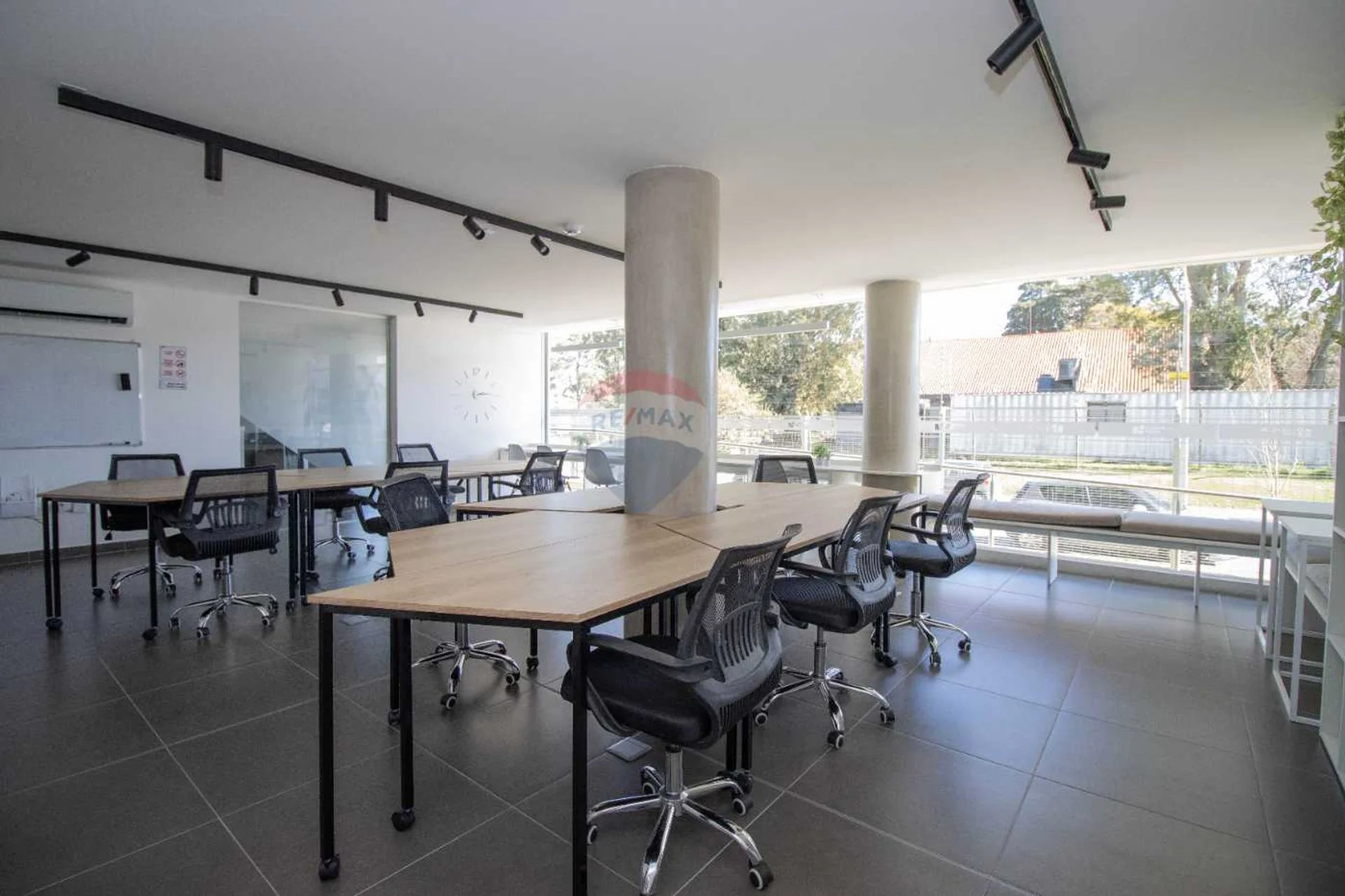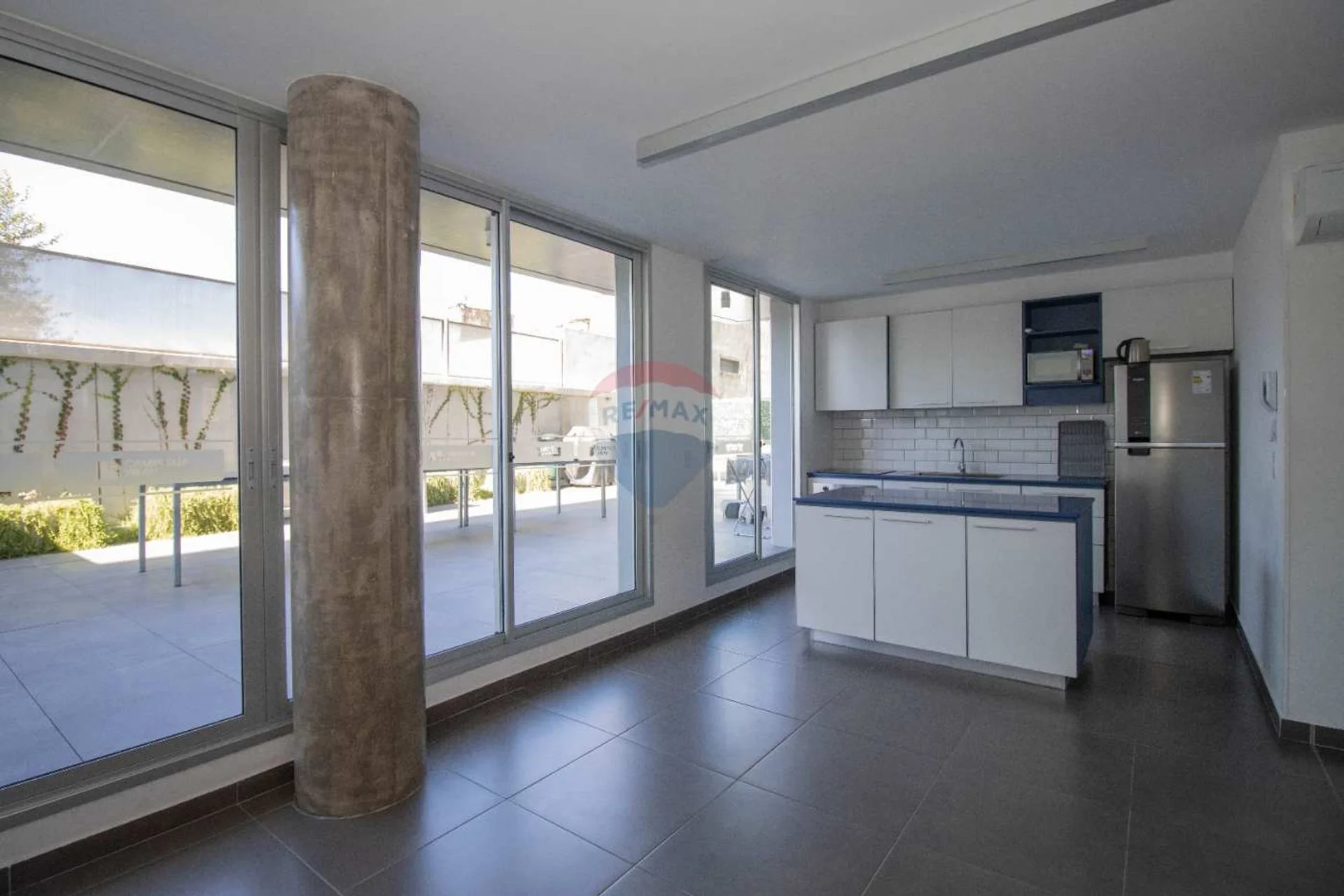 En planta baja, sala de coworking y barbacoa cerrada con amplia terraza.