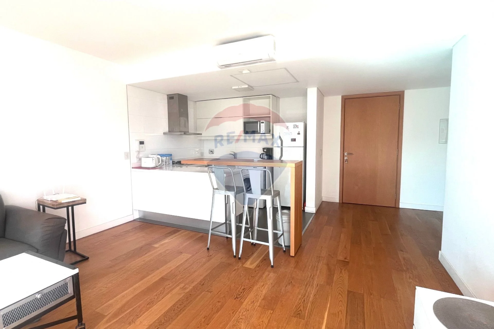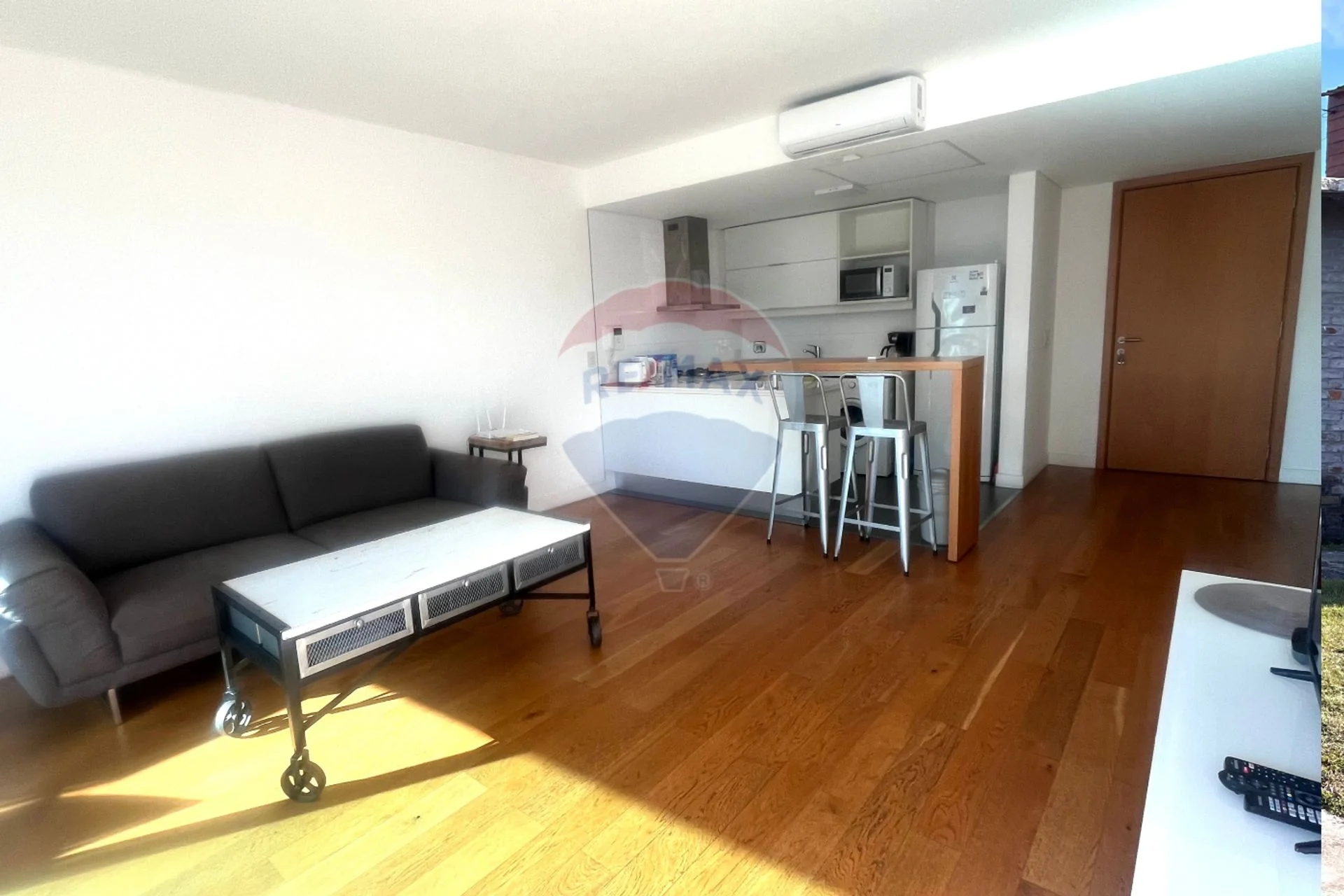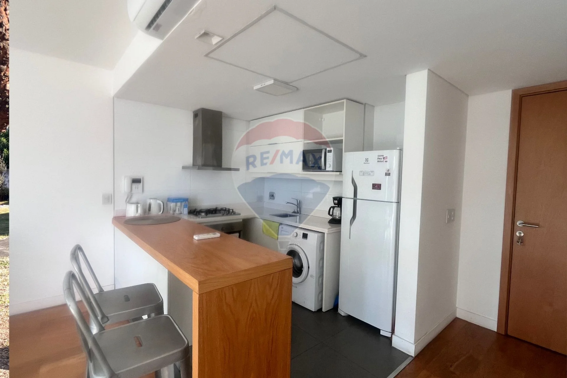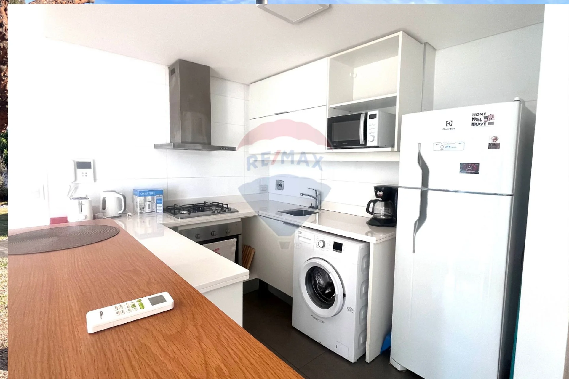 Cocina equipada con horno, anafe y campana extractora y con cómodos y modernos placares. La misma integrada al Living por una barra.