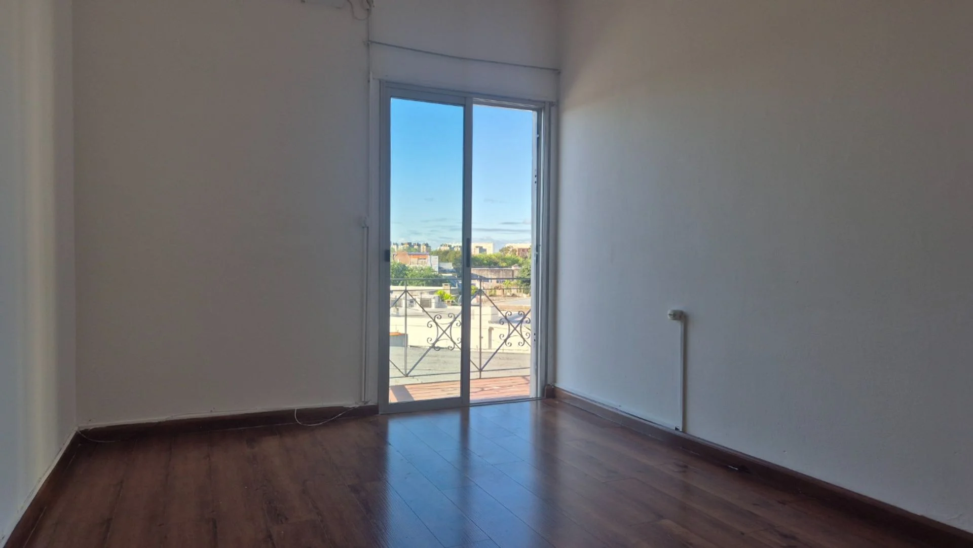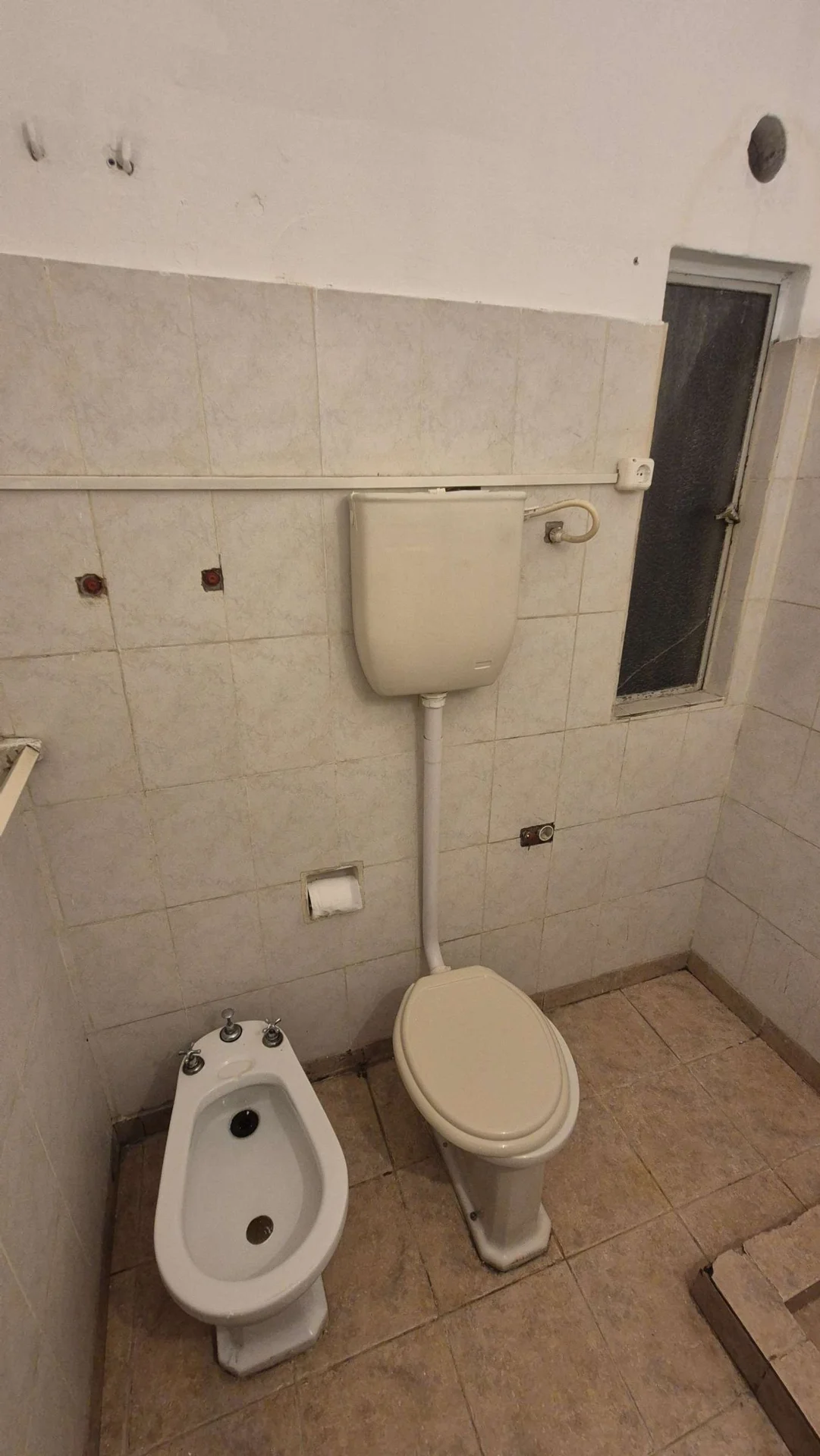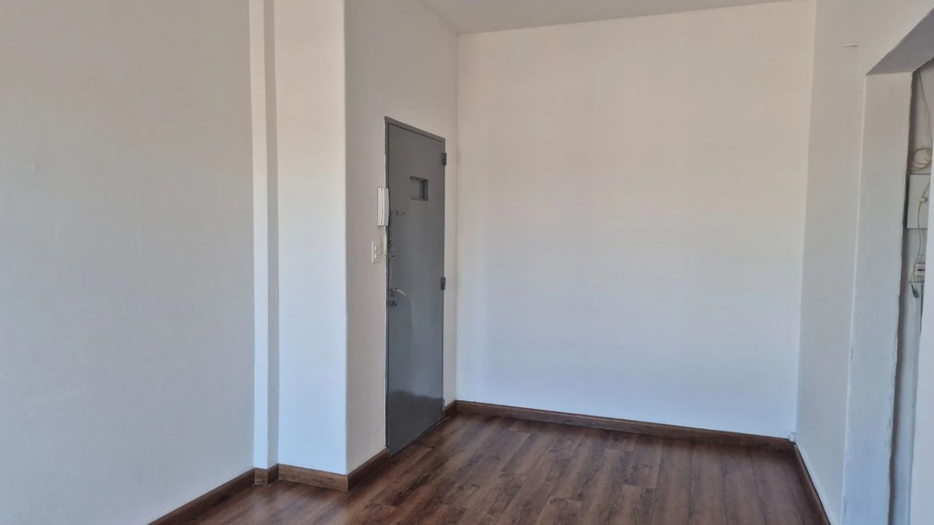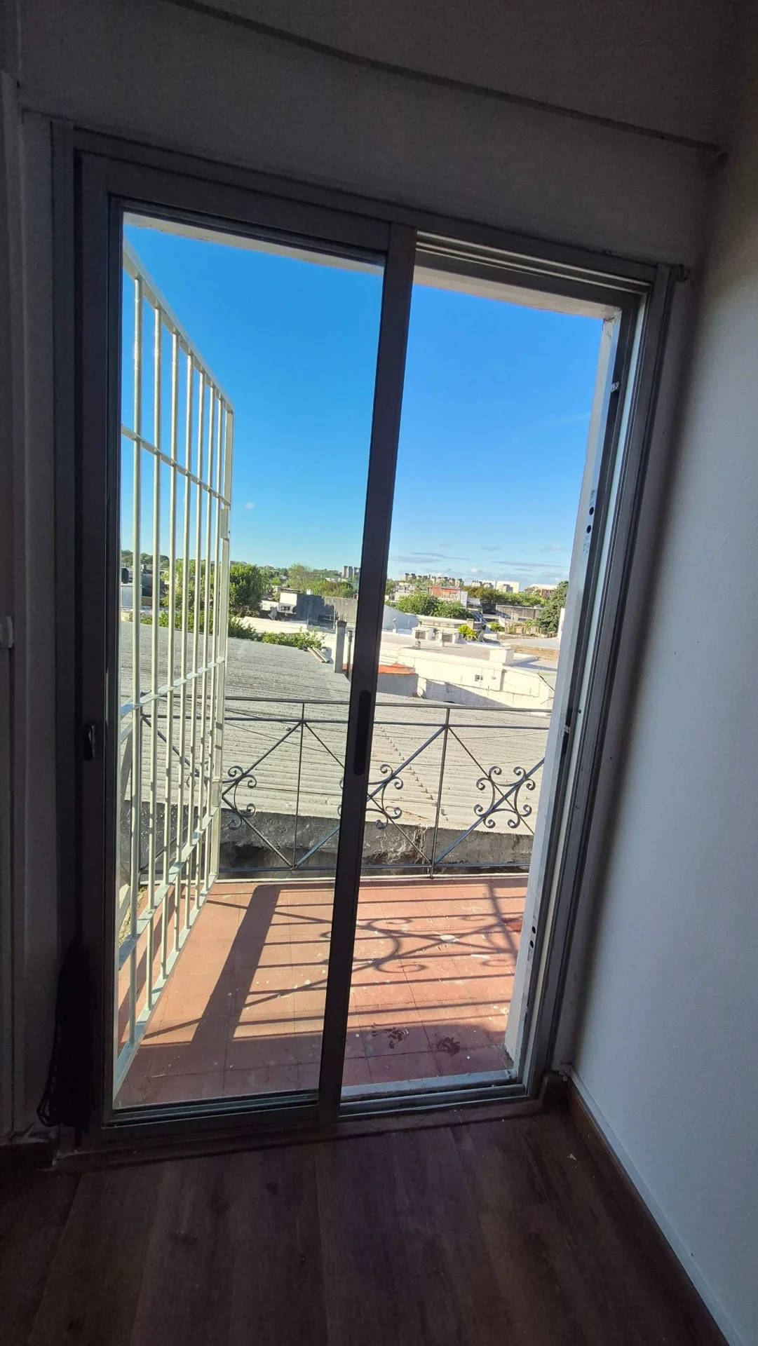 Un dormitorio con pisos de parque y ventana a contrafrente. Azotea con lugar para tendido de ropa.