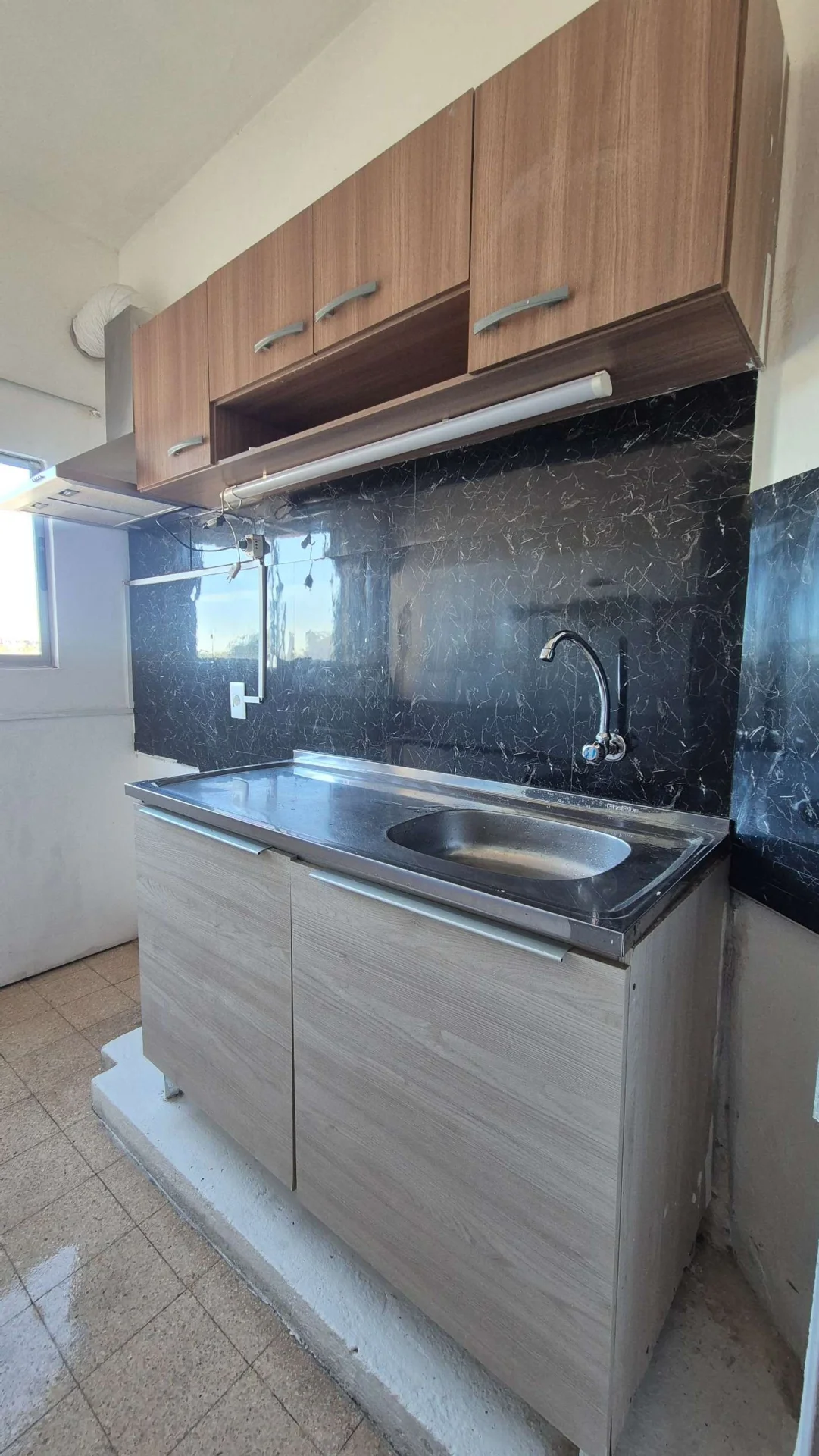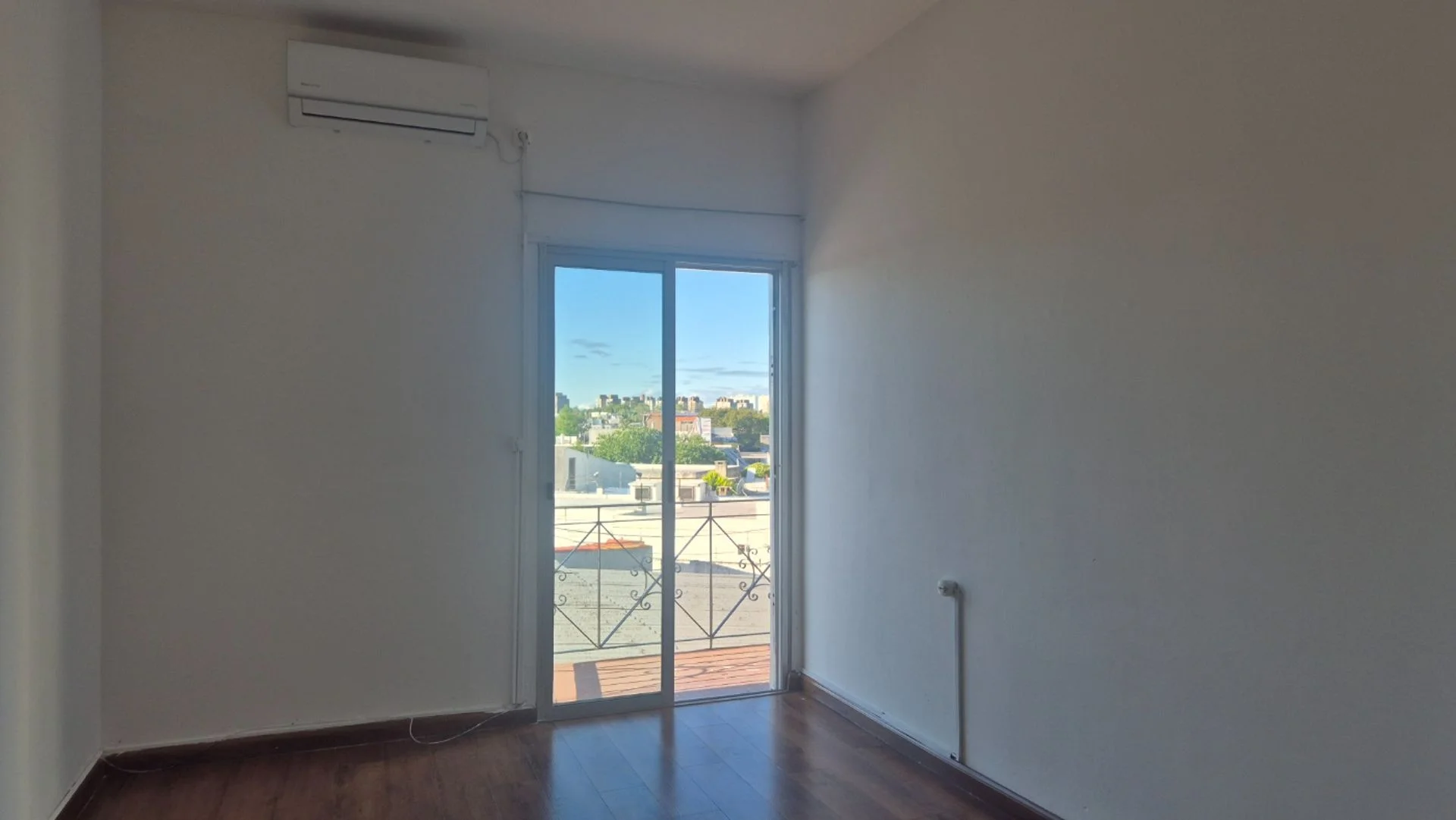 El apartamento cuenta con living comedor con aire acondicionado y salida al balcón, cocina definida con muebles sobre y bajo mesada y campana extractora.