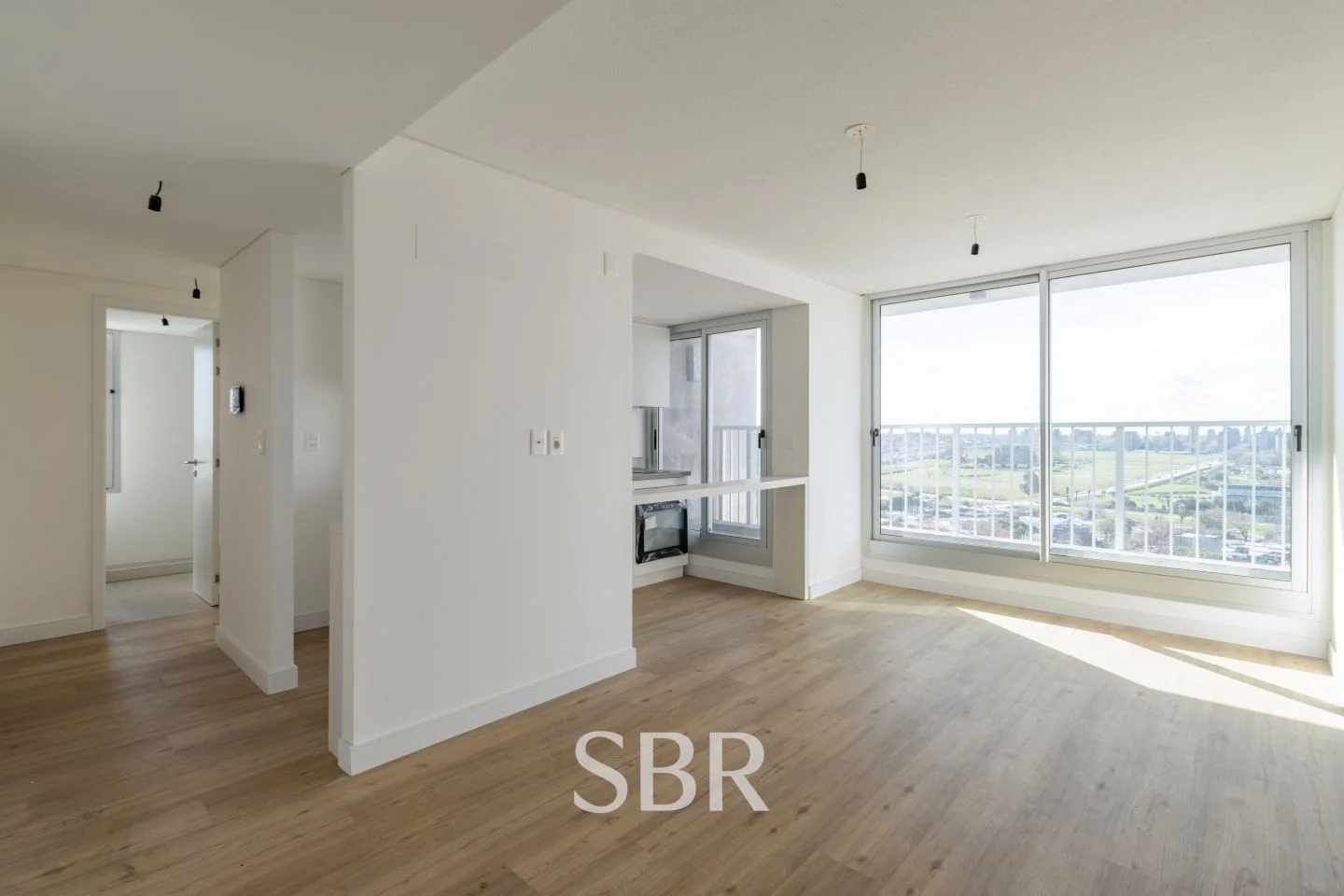 Living comedor con ventanales y salida al balcón