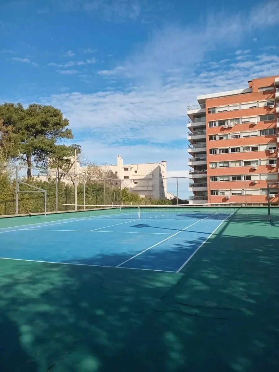El edificio ofrece excelentes amenities: piscina climatizada, gimnasio con equipamiento de última generación, barbacoa completamente equipada y cancha de tenis. Además, cuenta con portería 24 hs y sistema de cámaras de seguridad.
