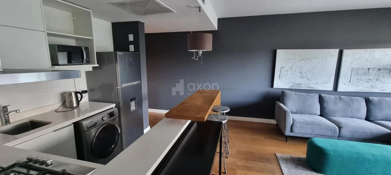 Living al frente con amplia terraza , cocina integrada, baño, dormitorio al frente con terraza. Aire acondicionado y calefacción. Garage para un auto ( puede alqularse sin garaje en USD 1200).