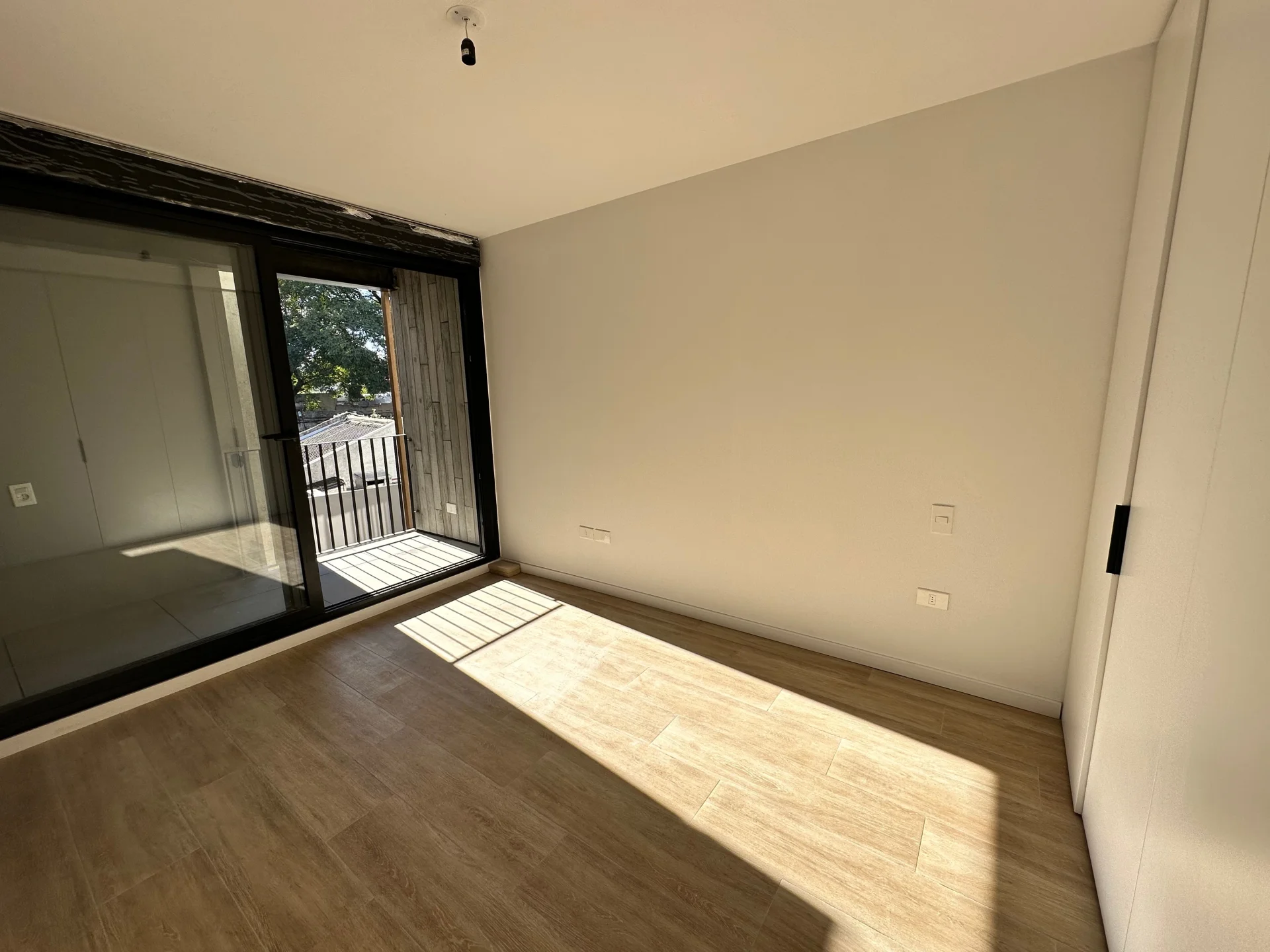 Dormitorio con placard, aire acondicionado y salida aterraza. Un baño completo.