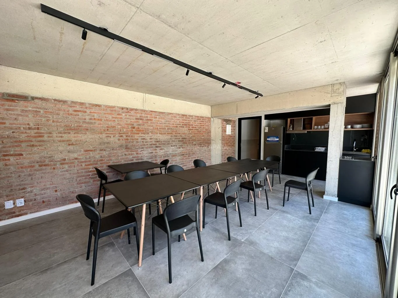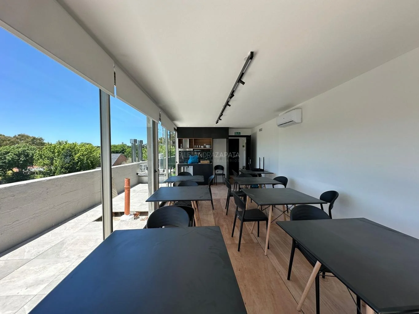 Los ventanales son todos con DVH y tiene toldos verticales que corren sobre lingas de hierro.