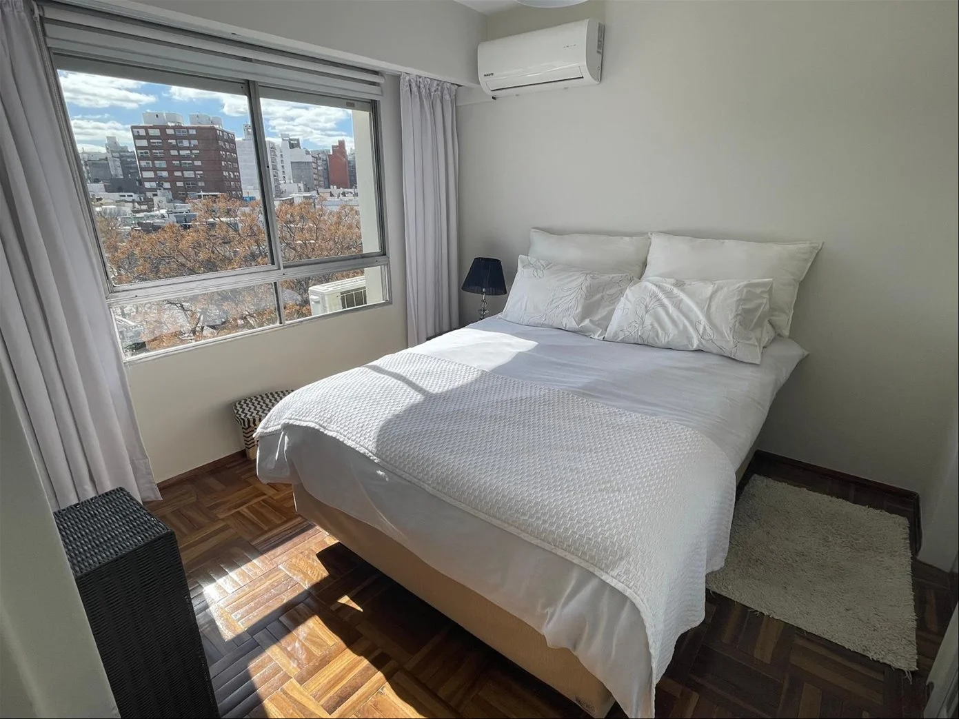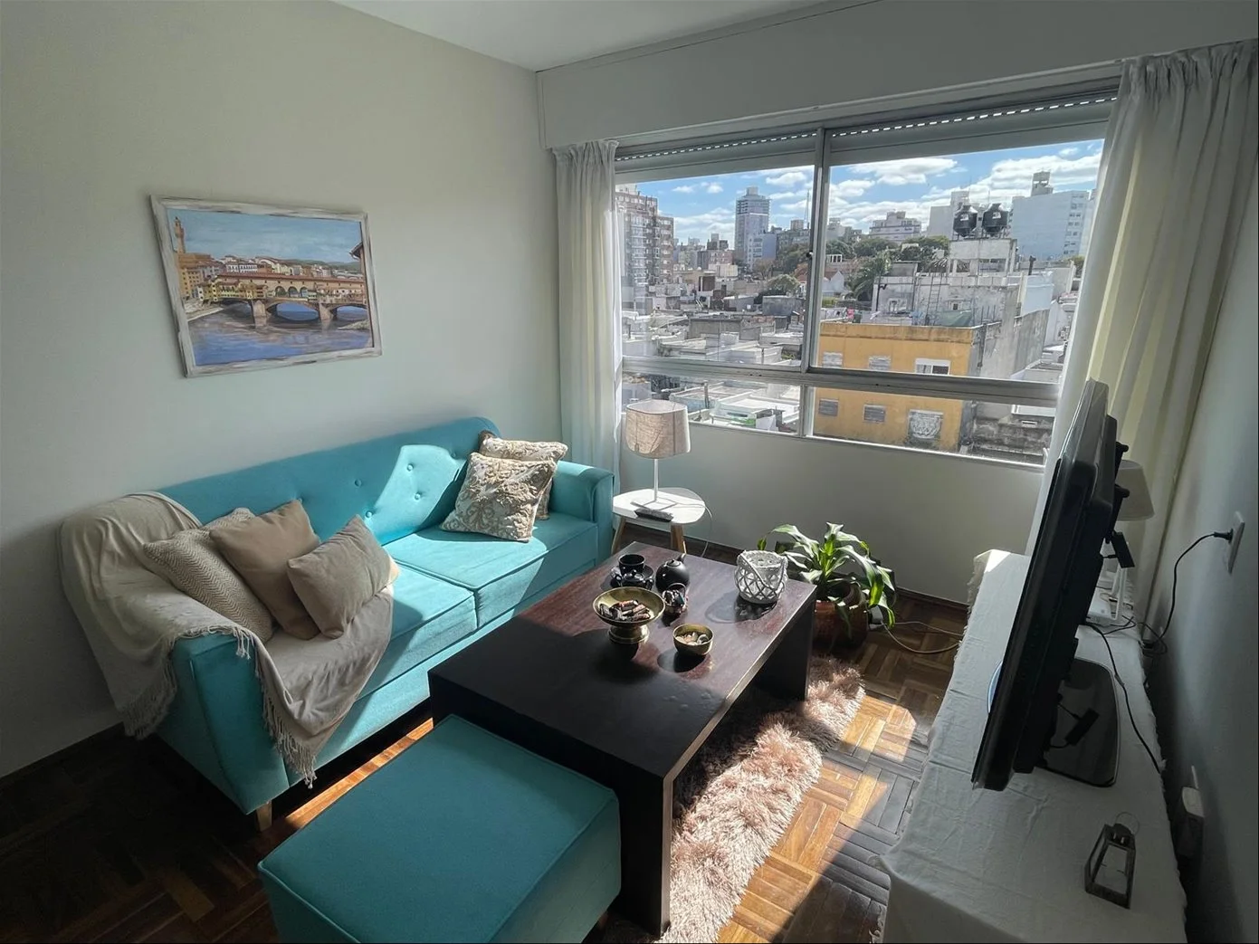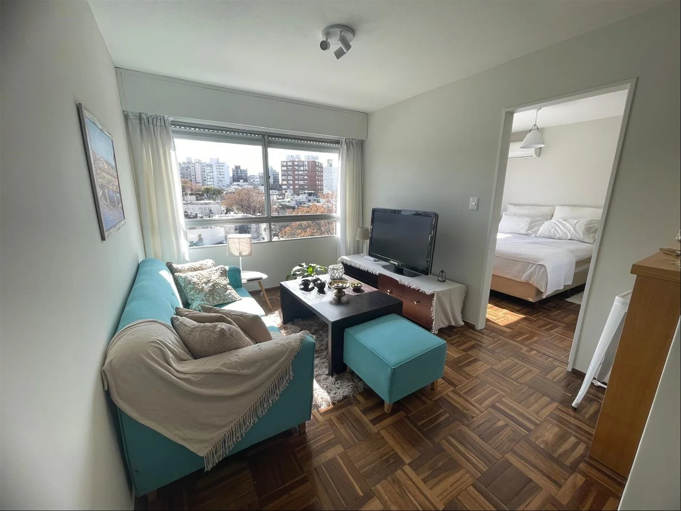 Precioso departamento completamente amueblado, ideal para quienes buscan comodidad inmediata. La unidad cuenta con living-comedor muy luminoso, cocina equipada, dormitorio con cama matrimonial y aire acondicionado; baño completo en suite. Tanto el living como el dormitorio tienen orientación norte lo que hace que haya sol todo el dia. Está decorado con buen gusto y mantiene excelente estado general. Pisos de madera cuidados, TV en el estar.