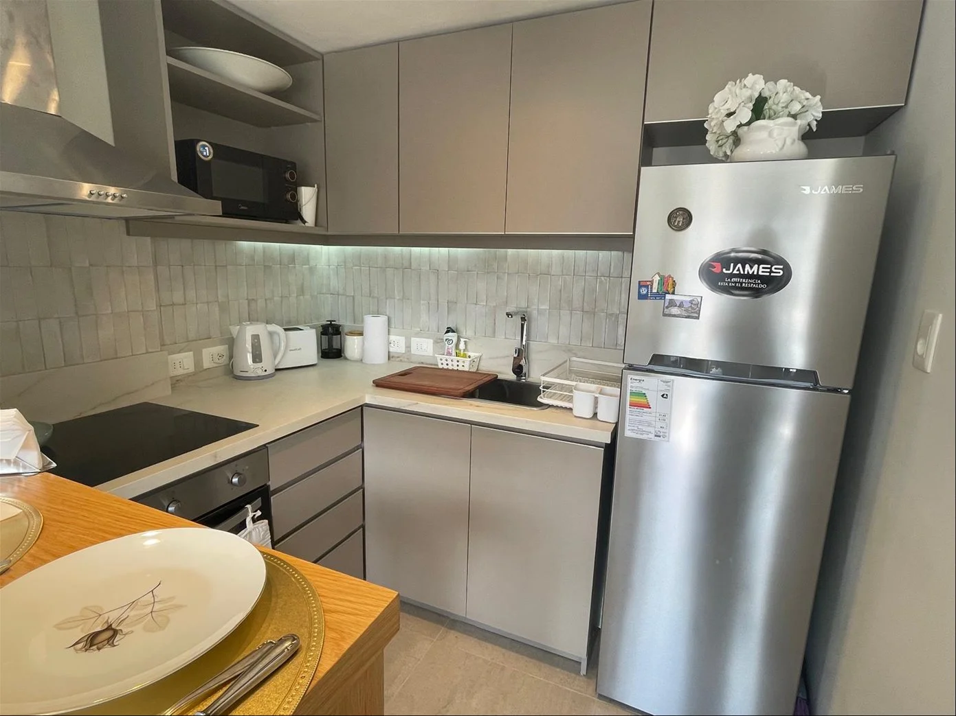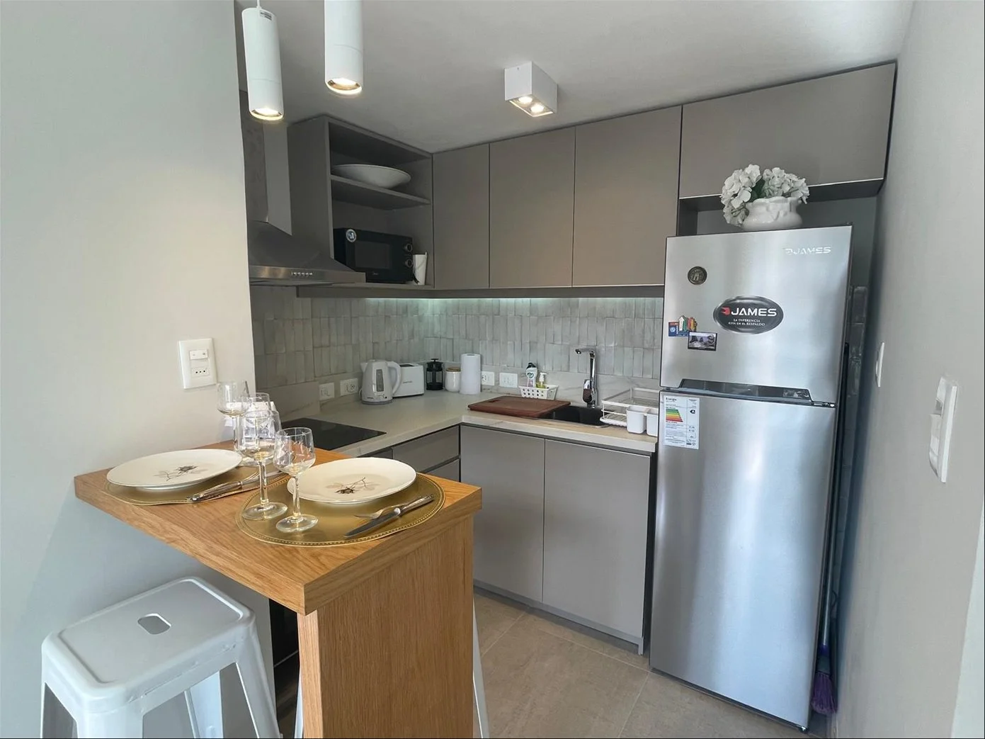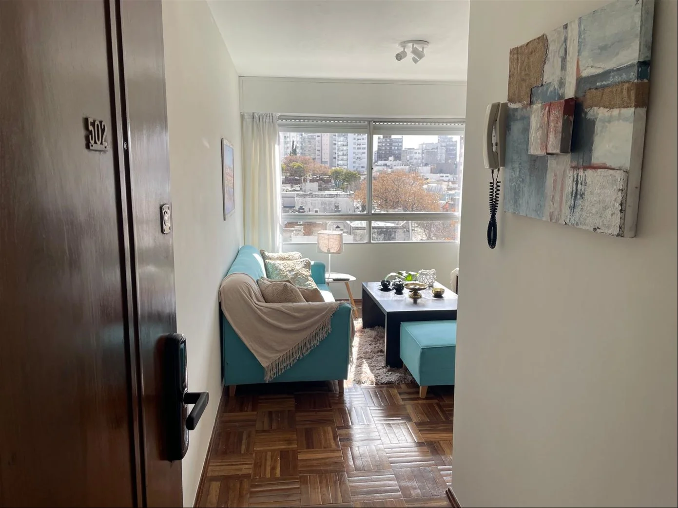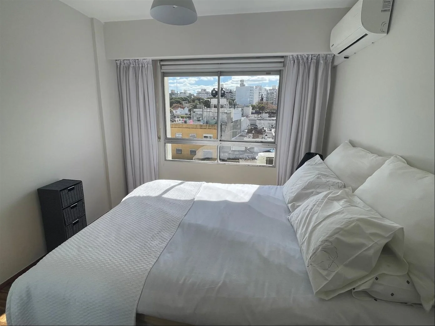 Precioso departamento completamente amueblado, ideal para quienes buscan comodidad inmediata. La unidad cuenta con living-comedor muy luminoso, cocina equipada, dormitorio con cama matrimonial y aire acondicionado; baño completo en suite. Tanto el living como el dormitorio tienen orientación norte lo que hace que haya sol todo el dia. Está decorado con buen gusto y mantiene excelente estado general. Pisos de madera cuidados, TV en el estar.