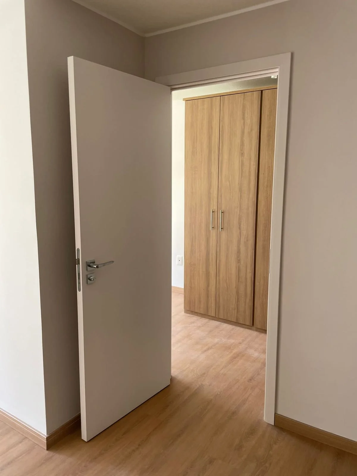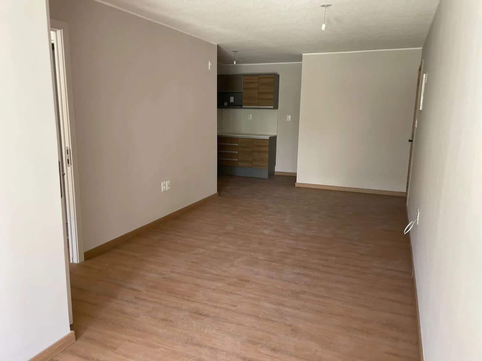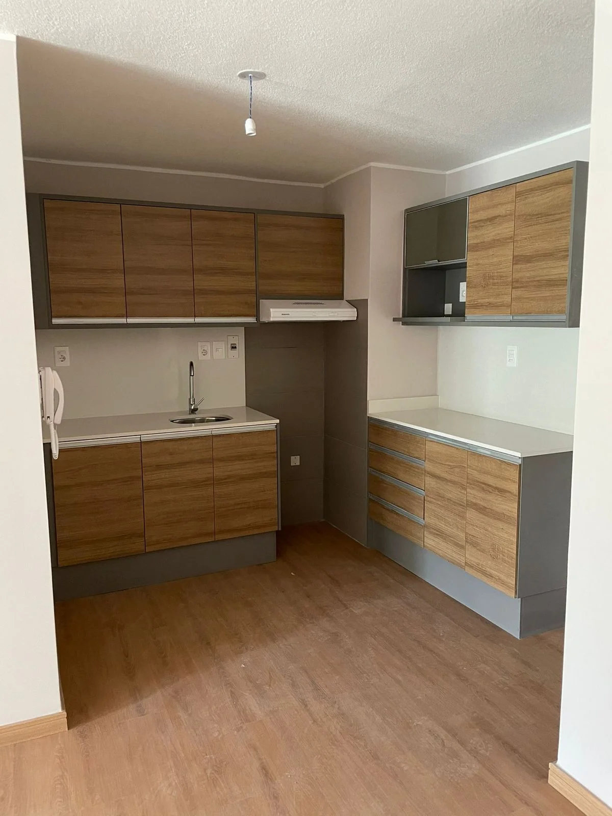 Cocina integrada con muebles aéreos y bajo mesada. Living con salida a un pequeño balcón.