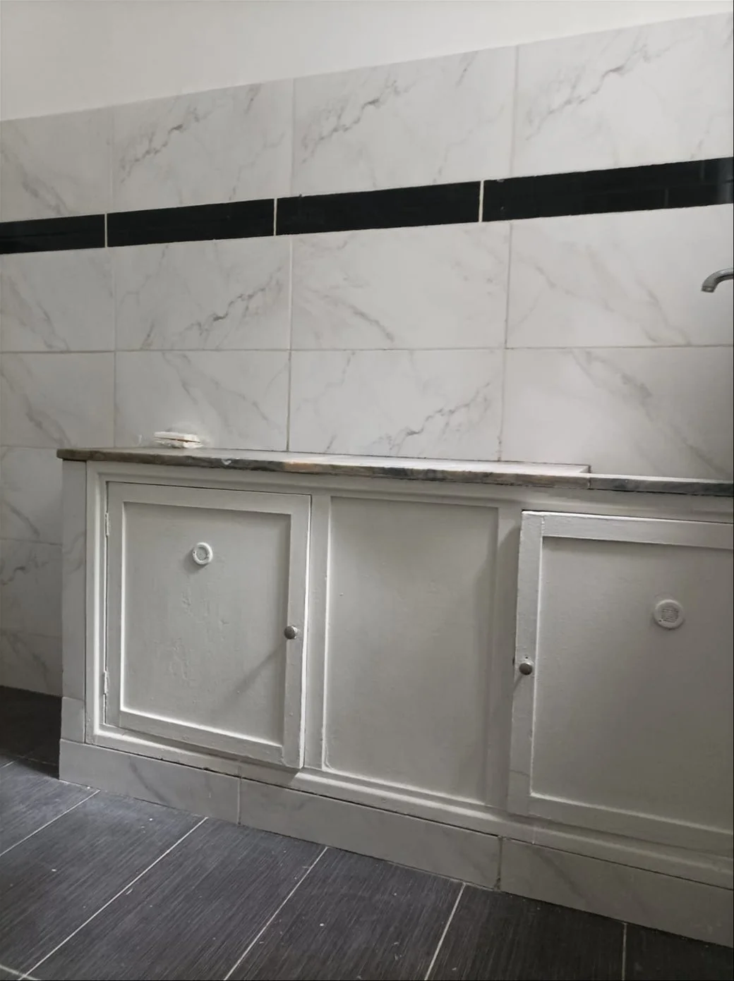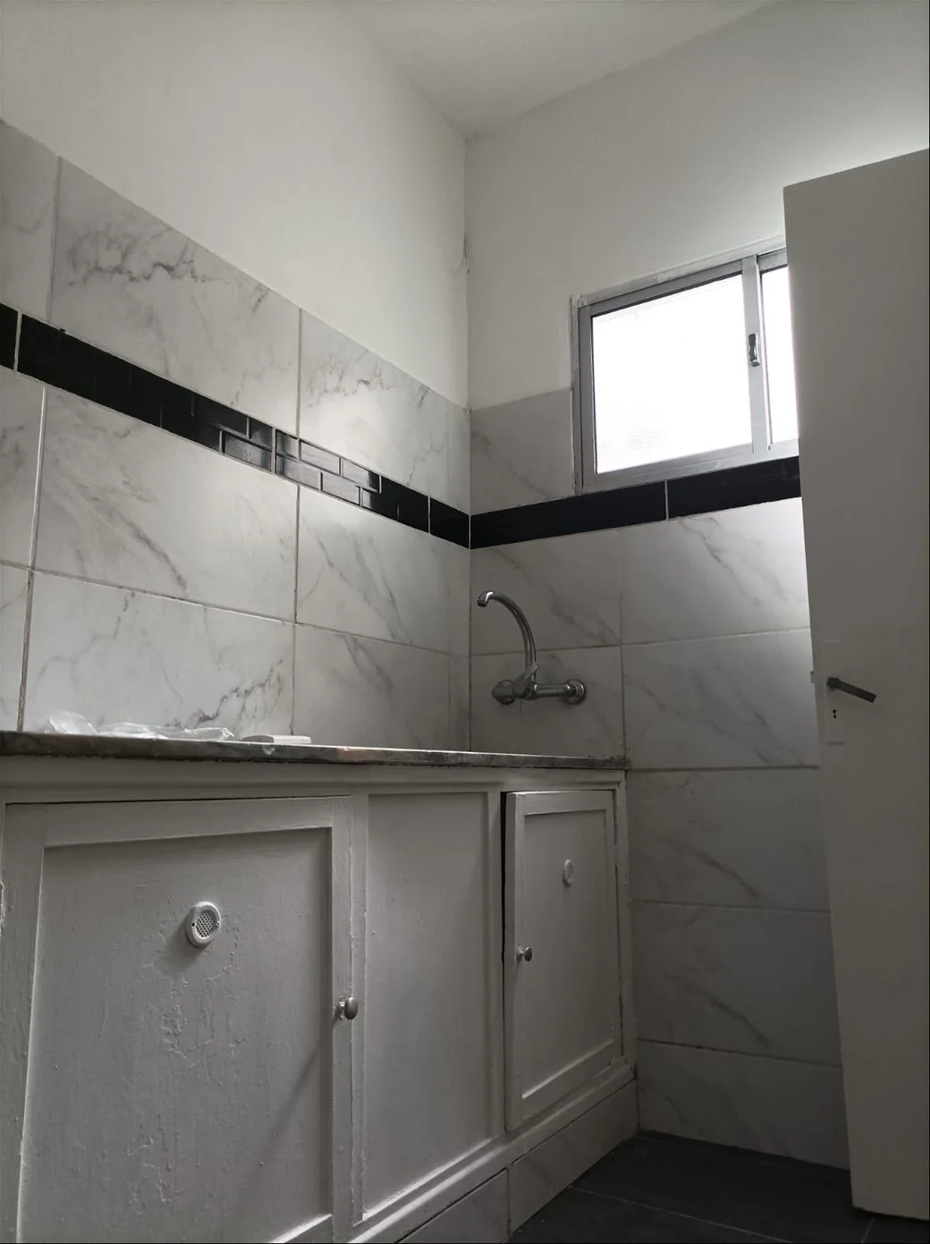 Cocina definida con aéreos y bajo mesada, salida a patio