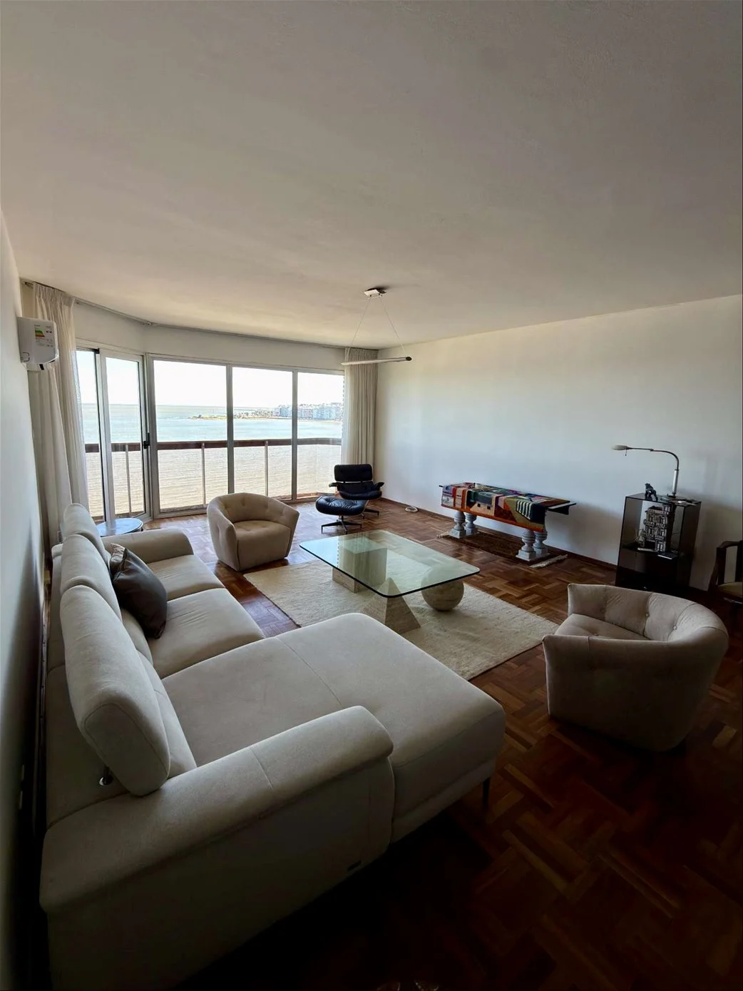Amplio Living-comedor definidos con salida a linda y amplia terraza al frente con vista a la playa de Pocitos