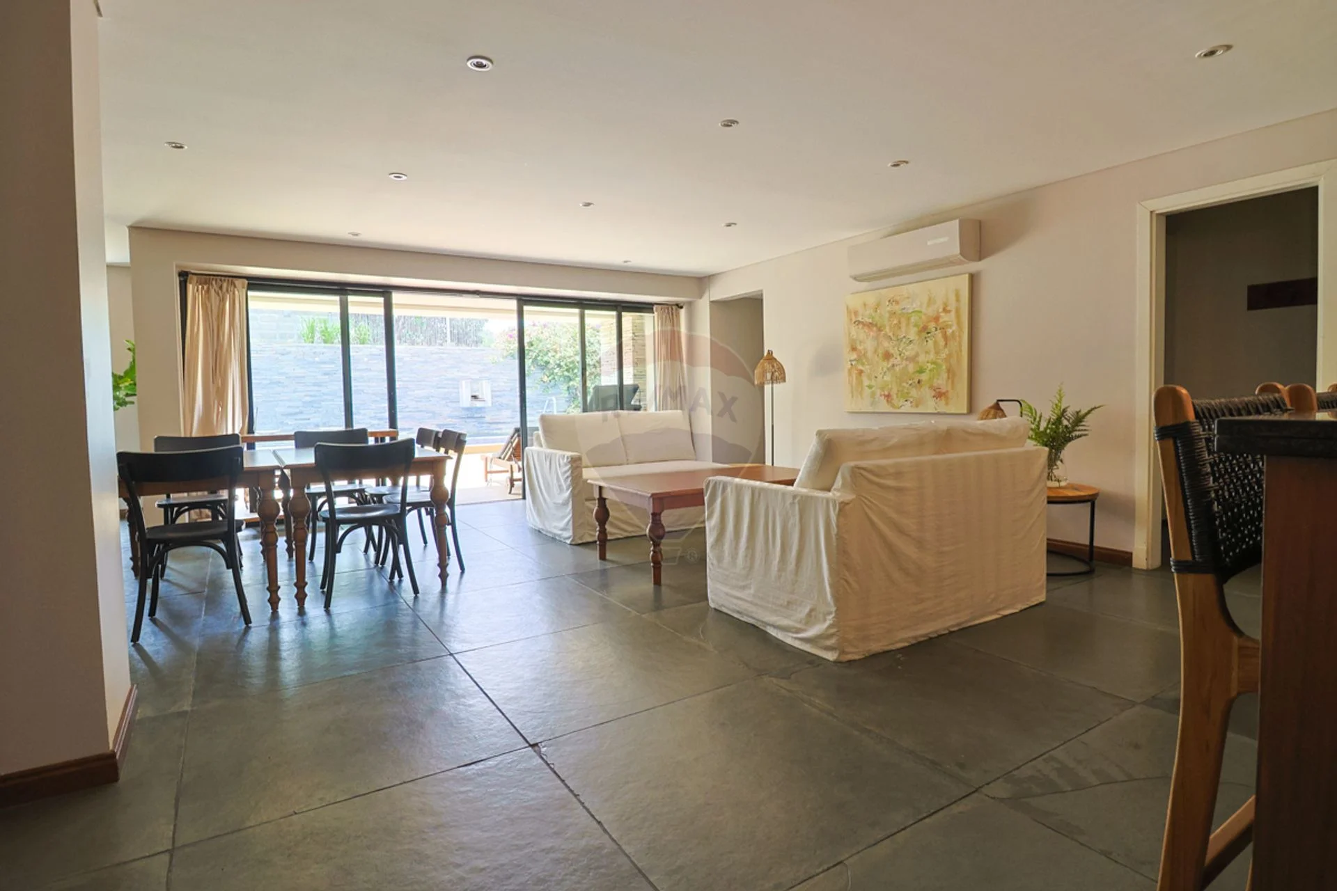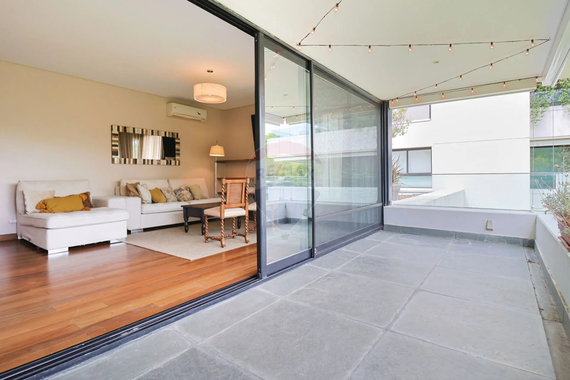 El departamento se desarrolla en una amplia planta, living comedor con estufa de leña, pisos de lapacho, amplios ventanales con salida a la terraza con vistas al jardin.