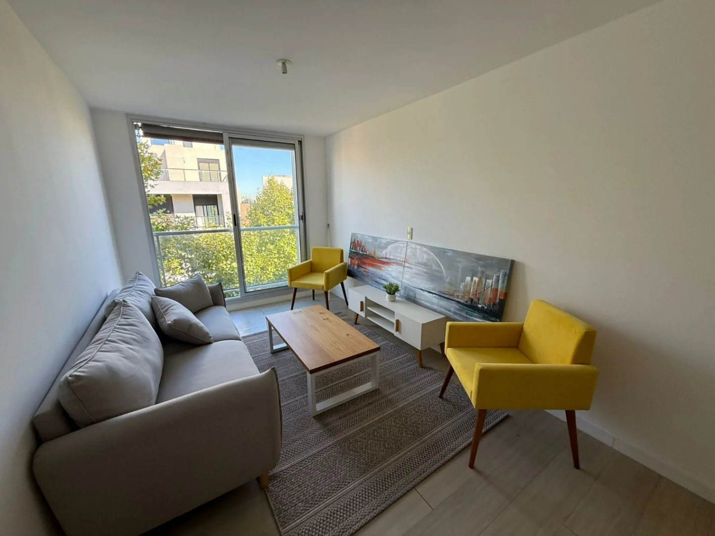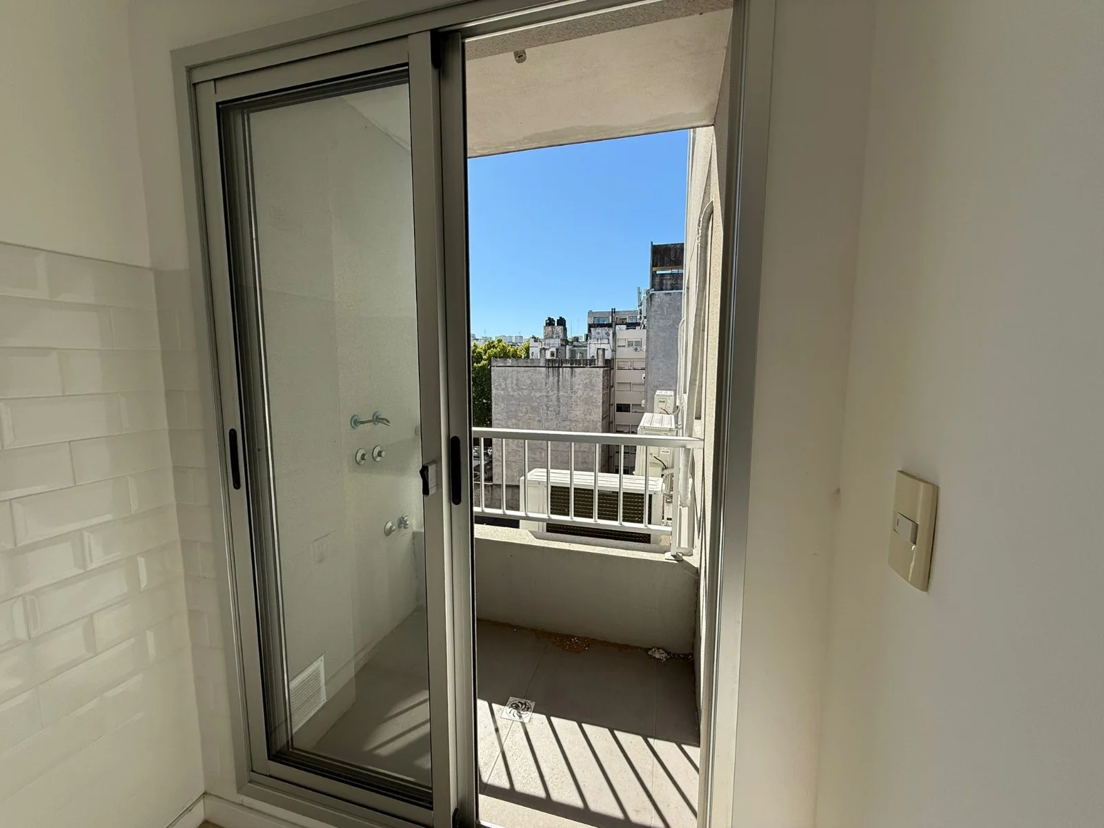 Orientado al Oeste y dispuesto al frente recibe sol en la tarde, con ventanal de piso a techo con vidrios DVH. Equipo de aire acondicionado instalado.