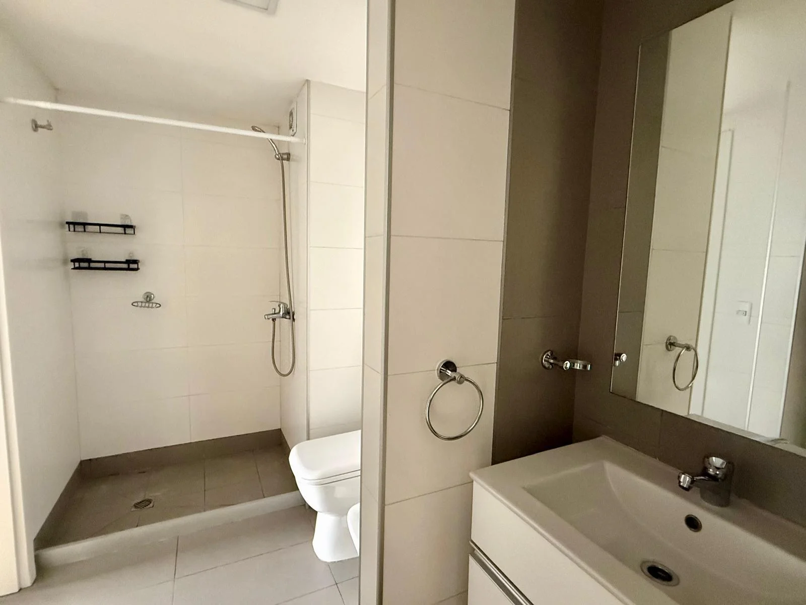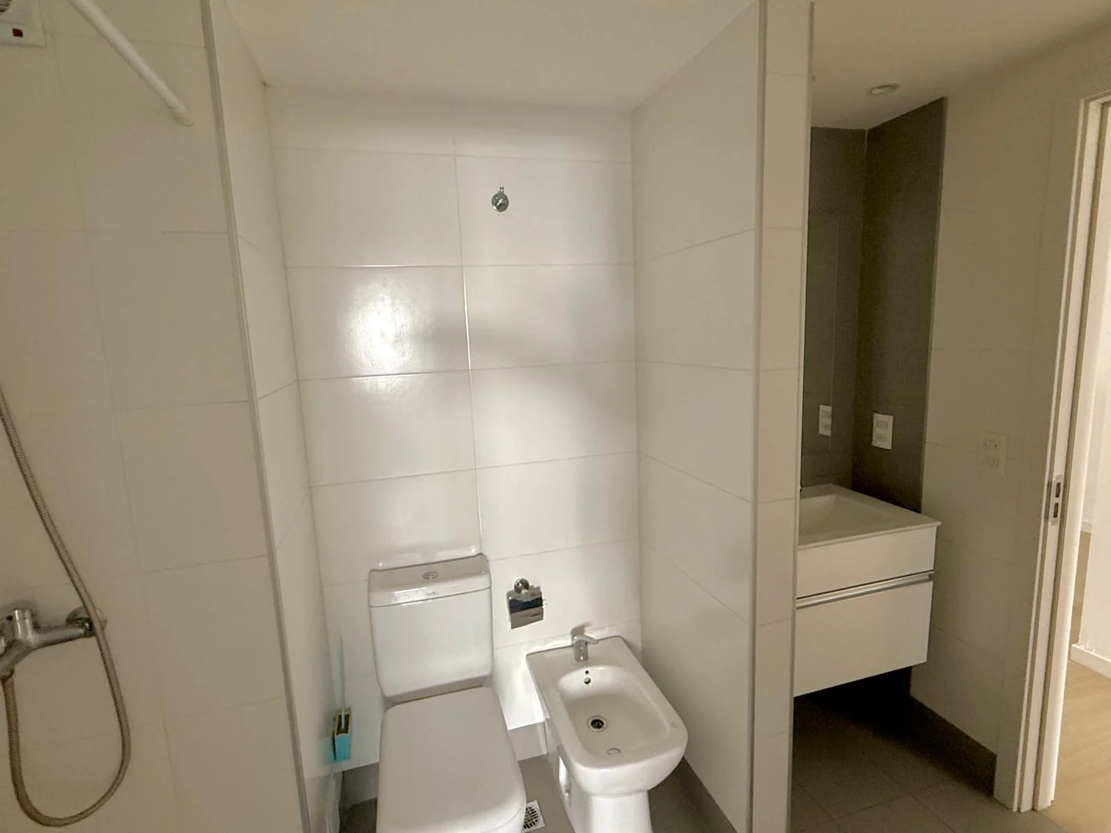 Baño completo de calidad, espacioso, con acceso desde living y desde el dormitorio principal. Equipado con luminarias, espejo y un práctico placar bajo la pileta.