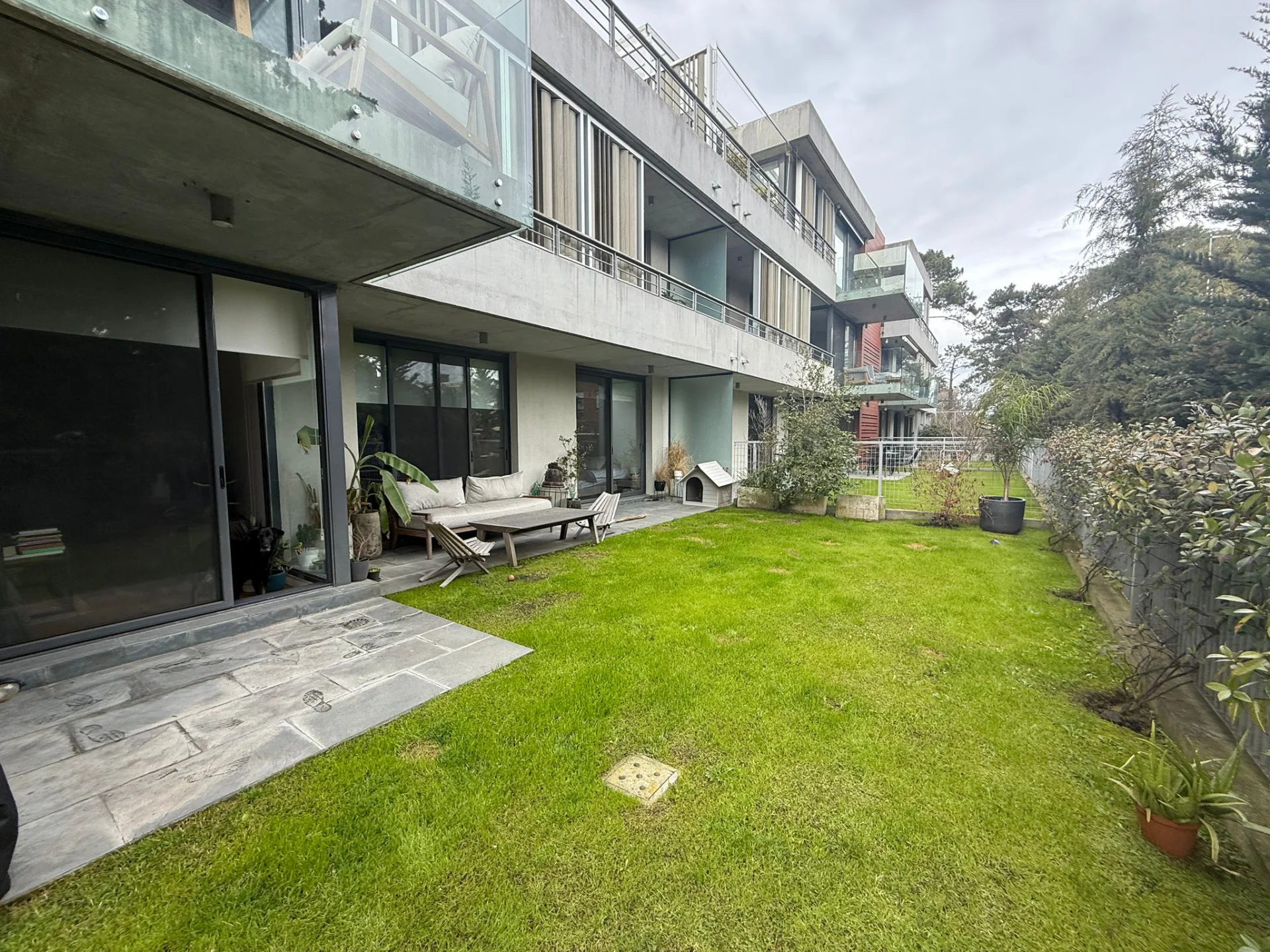 Espectacular apartamento de dos dormitorios con seguridad 24h en zona de colegios, a pocos metros de Jardines de Carrasco. Ubicado en el edificio Araucaria, por estar en planta baja, tiene la ventaja de tener jardín propio.